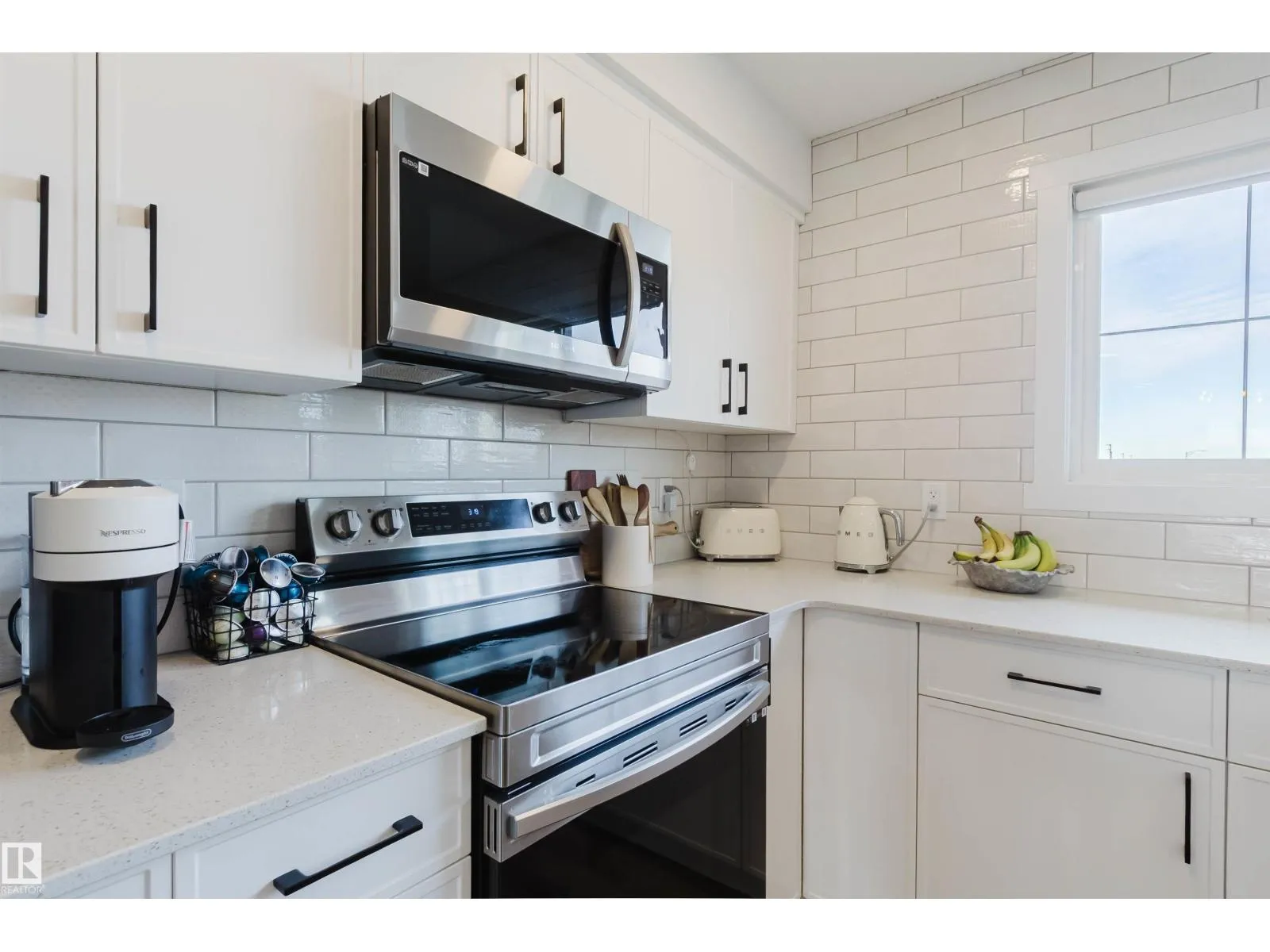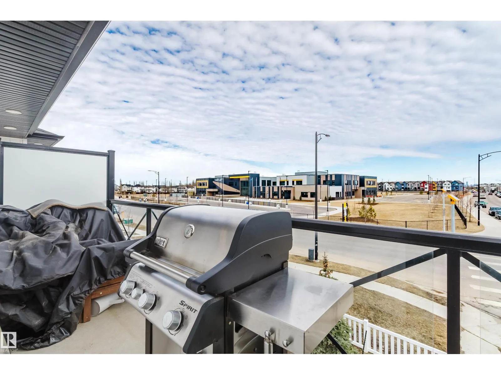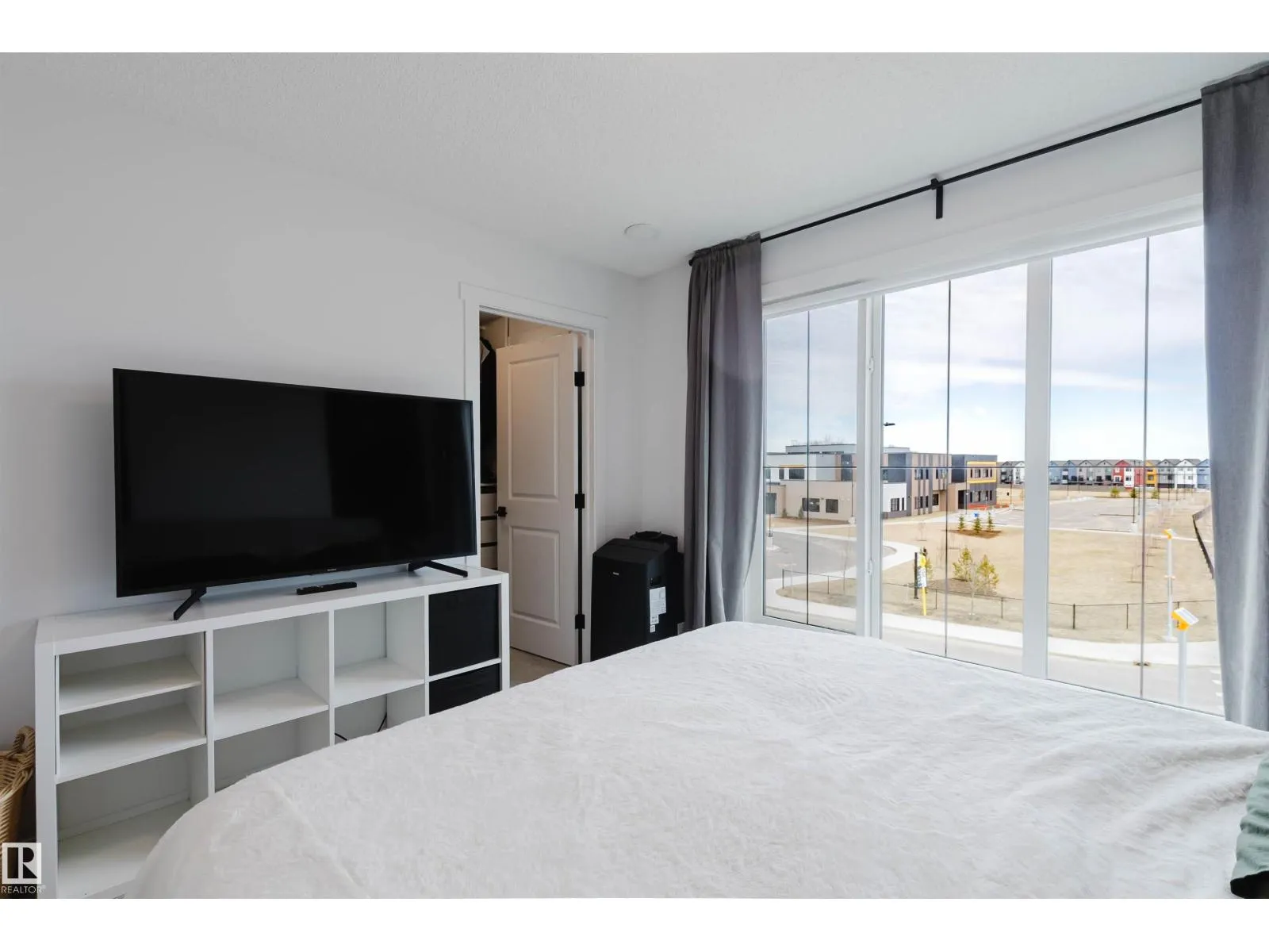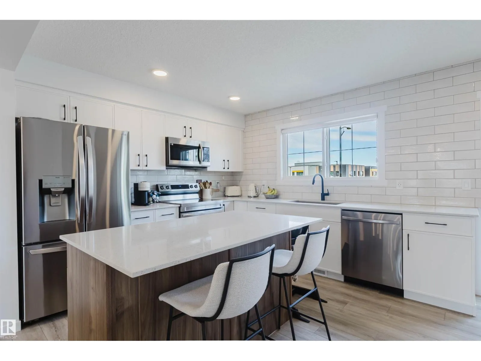 END UNIT! Experience the joy of city living with NO condo fees. This brightly lit 3-bedroom townhome was a previous show home with many upgrades including increased cabinet heights, solid surface counter tops and luxury vinyl flooring. The ground floor includes a standard bedroom and a nearby 1/2 bathroom, perfect for guests or home office. On the main level, a spacious, modern kitchen flows smoothly from the dining area to an open concept living room complete with a cozy electric fireplace. Upstairs features 2spacious bedrooms, each with its OWN ensuite bathroom and generous walk-in closet. Double attached garage and fully landscaped. Walking distance to the Lewis Farms Rec centre, convenient shopping nearby and located across the street from St. Josephine Bakhita K-9 school! Welcome Home! (id:27476)