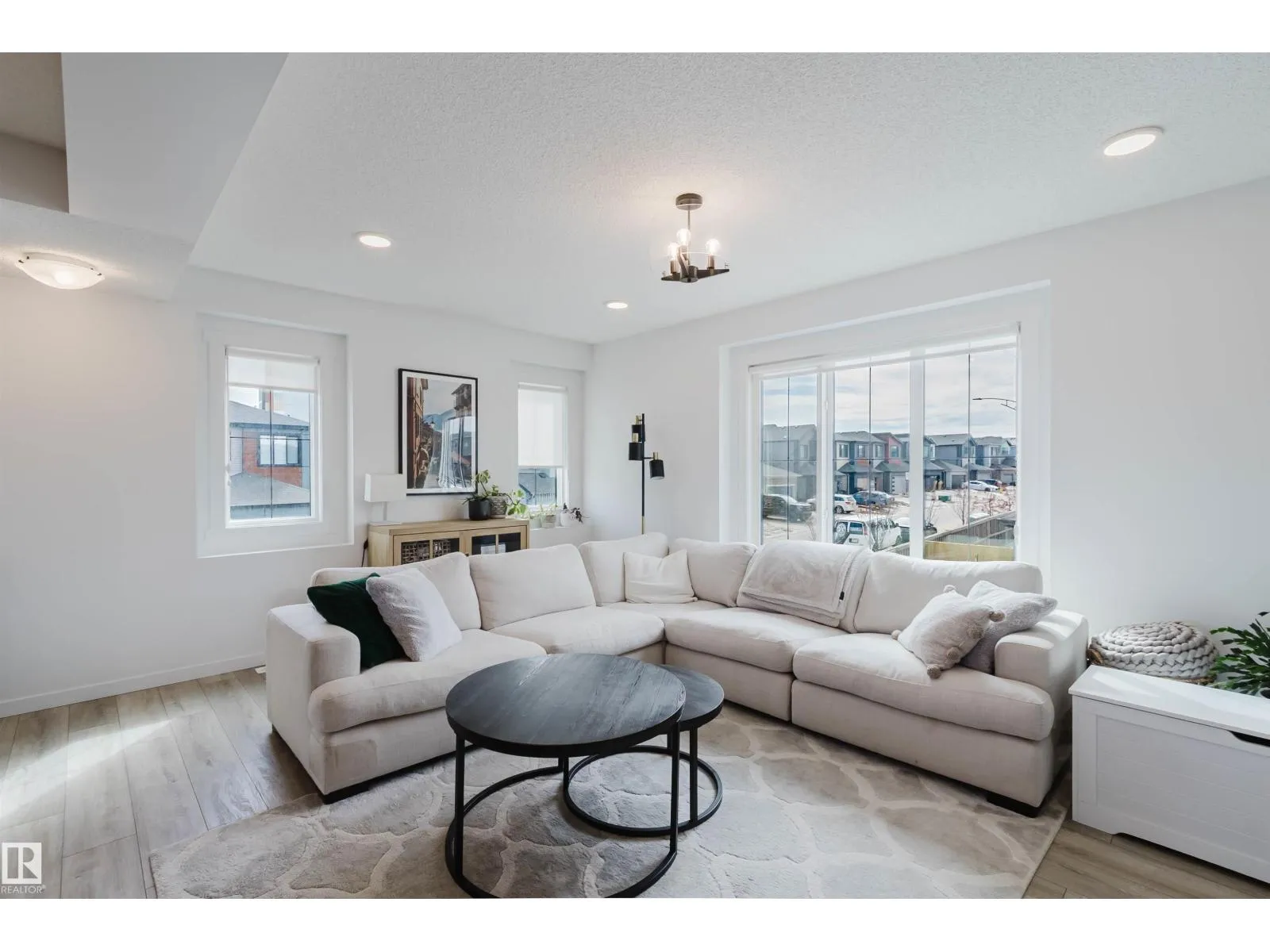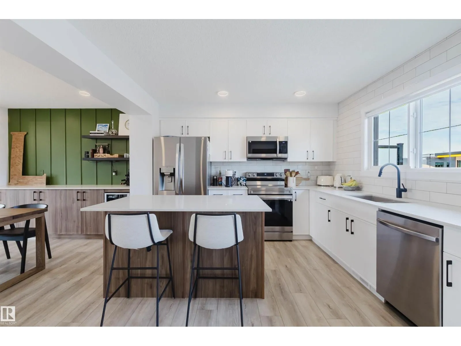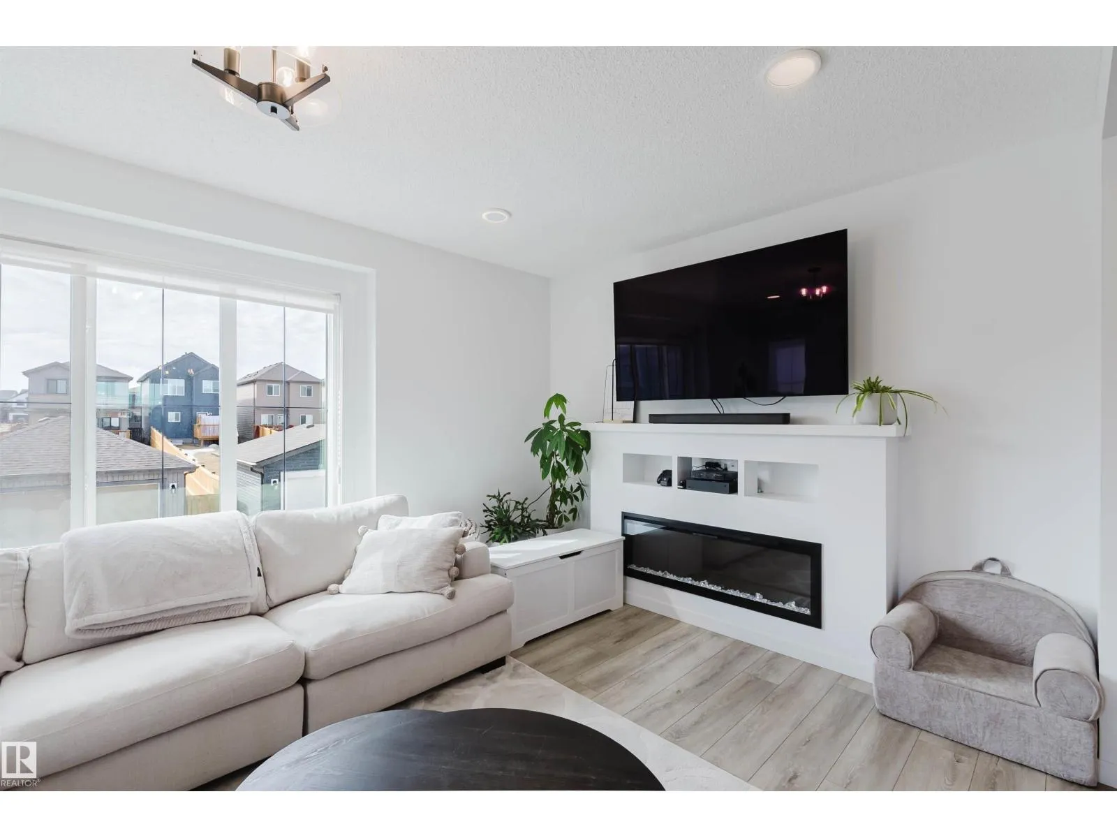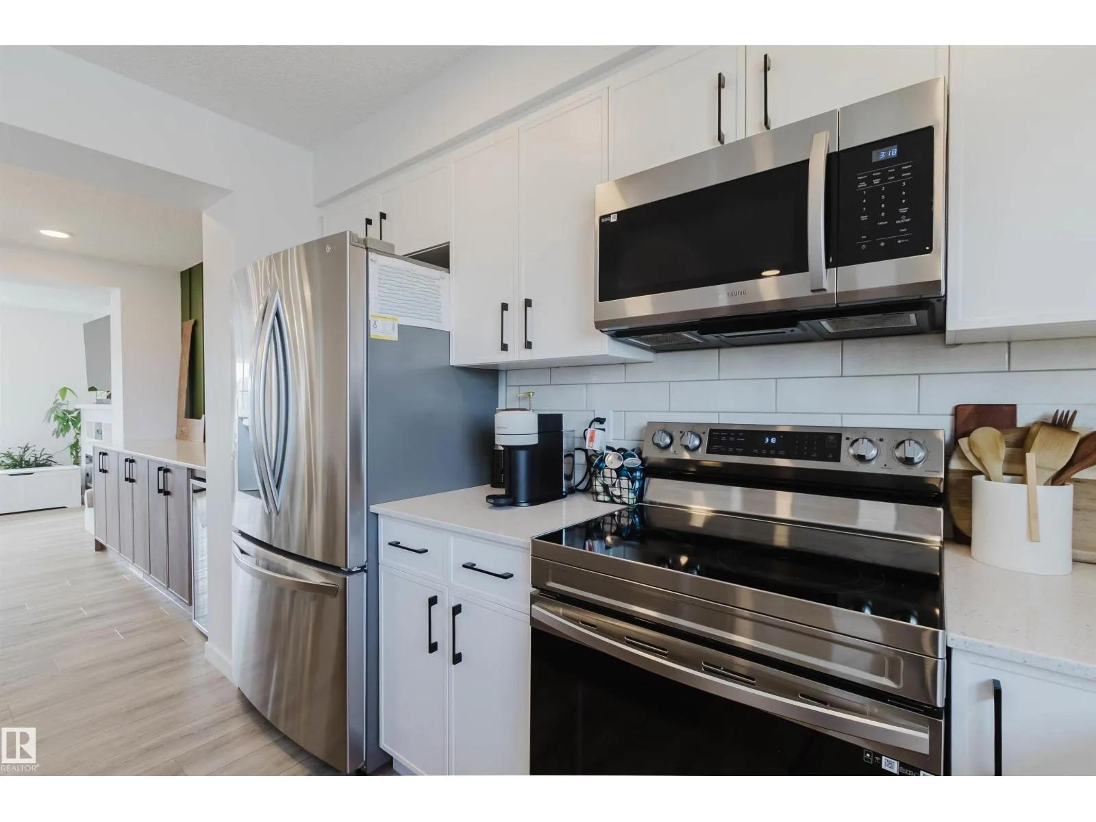 END UNIT! Experience the joy of city living with NO condo fees. This brightly lit 3-bedroom townhome was a previous show home with many upgrades including increased cabinet heights, solid surface counter tops and luxury vinyl flooring. The ground floor includes a standard bedroom and a nearby 1/2 bathroom, perfect for guests or home office. On the main level, a spacious, modern kitchen flows smoothly from the dining area to an open concept living room complete with a cozy electric fireplace. Upstairs features 2spacious bedrooms, each with its OWN ensuite bathroom and generous walk-in closet. Double attached garage and fully landscaped. Walking distance to the Lewis Farms Rec centre, convenient shopping nearby and located across the street from St. Josephine Bakhita K-9 school! Welcome Home! (id:27476)