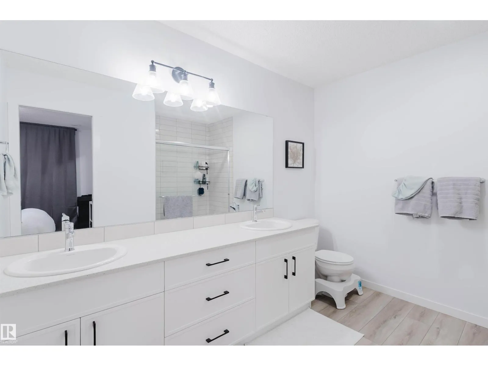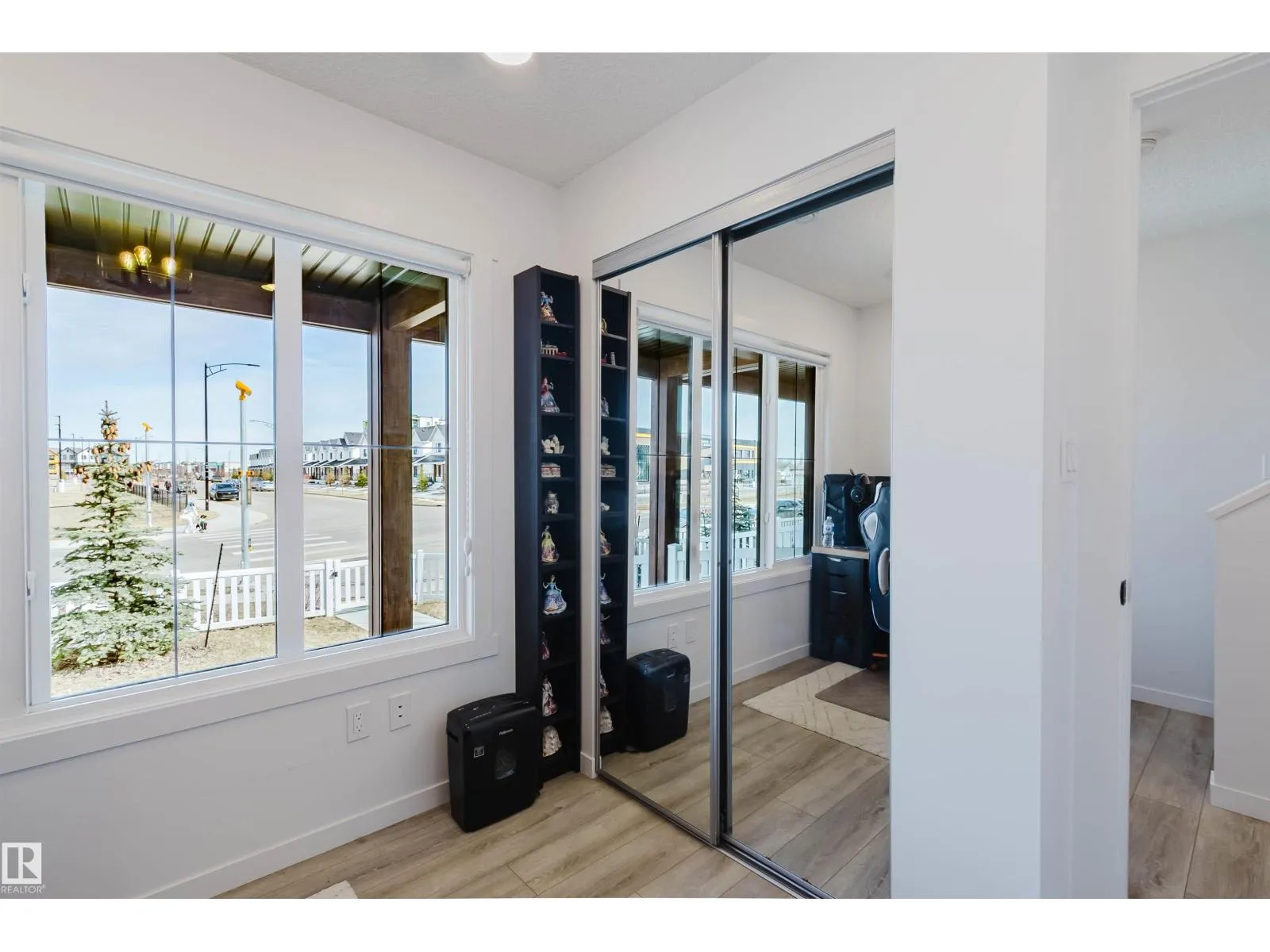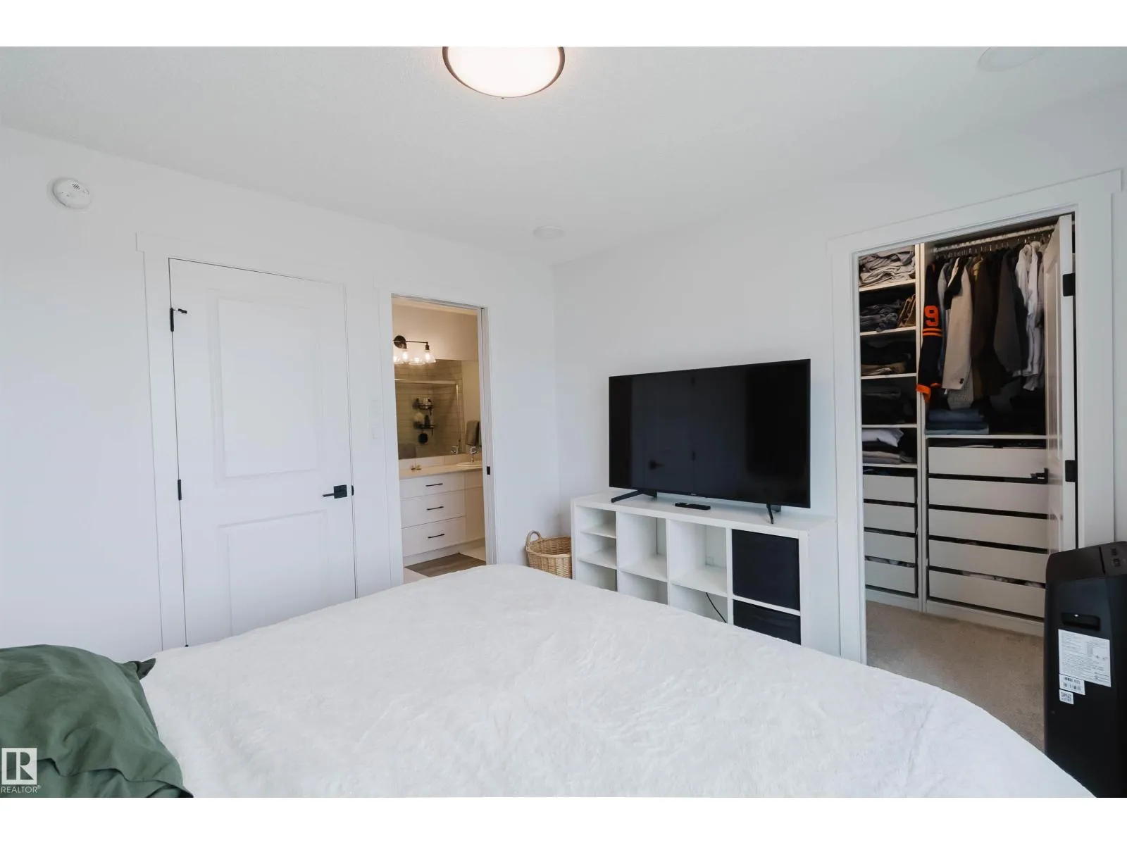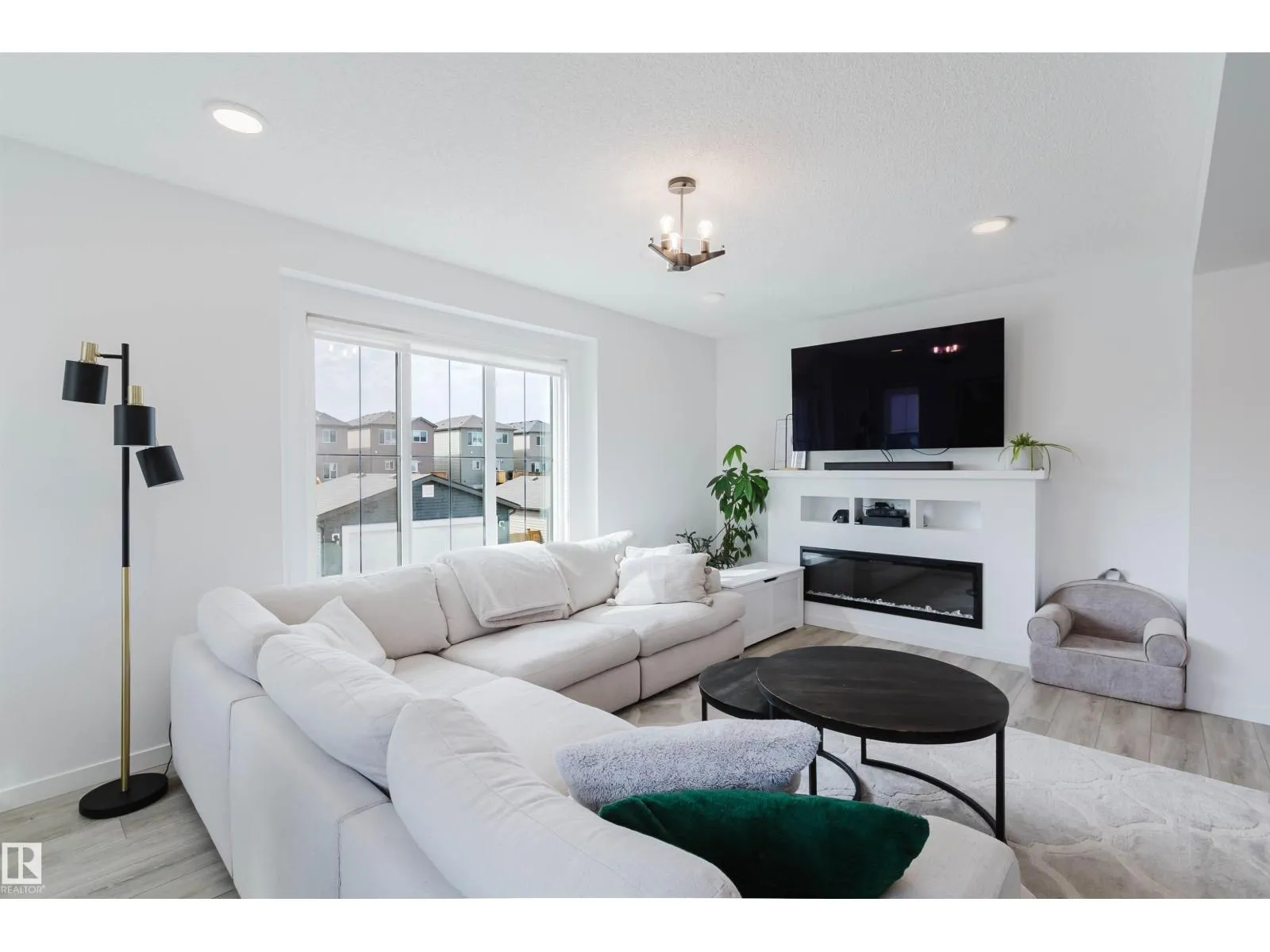 END UNIT! Experience the joy of city living with NO condo fees. This brightly lit 3-bedroom townhome was a previous show home with many upgrades including increased cabinet heights, solid surface counter tops and luxury vinyl flooring. The ground floor includes a standard bedroom and a nearby 1/2 bathroom, perfect for guests or home office. On the main level, a spacious, modern kitchen flows smoothly from the dining area to an open concept living room complete with a cozy electric fireplace. Upstairs features 2spacious bedrooms, each with its OWN ensuite bathroom and generous walk-in closet. Double attached garage and fully landscaped. Walking distance to the Lewis Farms Rec centre, convenient shopping nearby and located across the street from St. Josephine Bakhita K-9 school! Welcome Home! (id:27476)