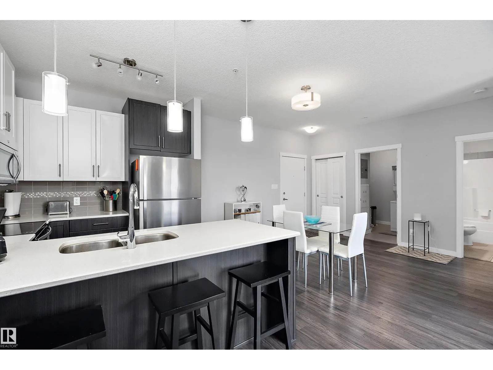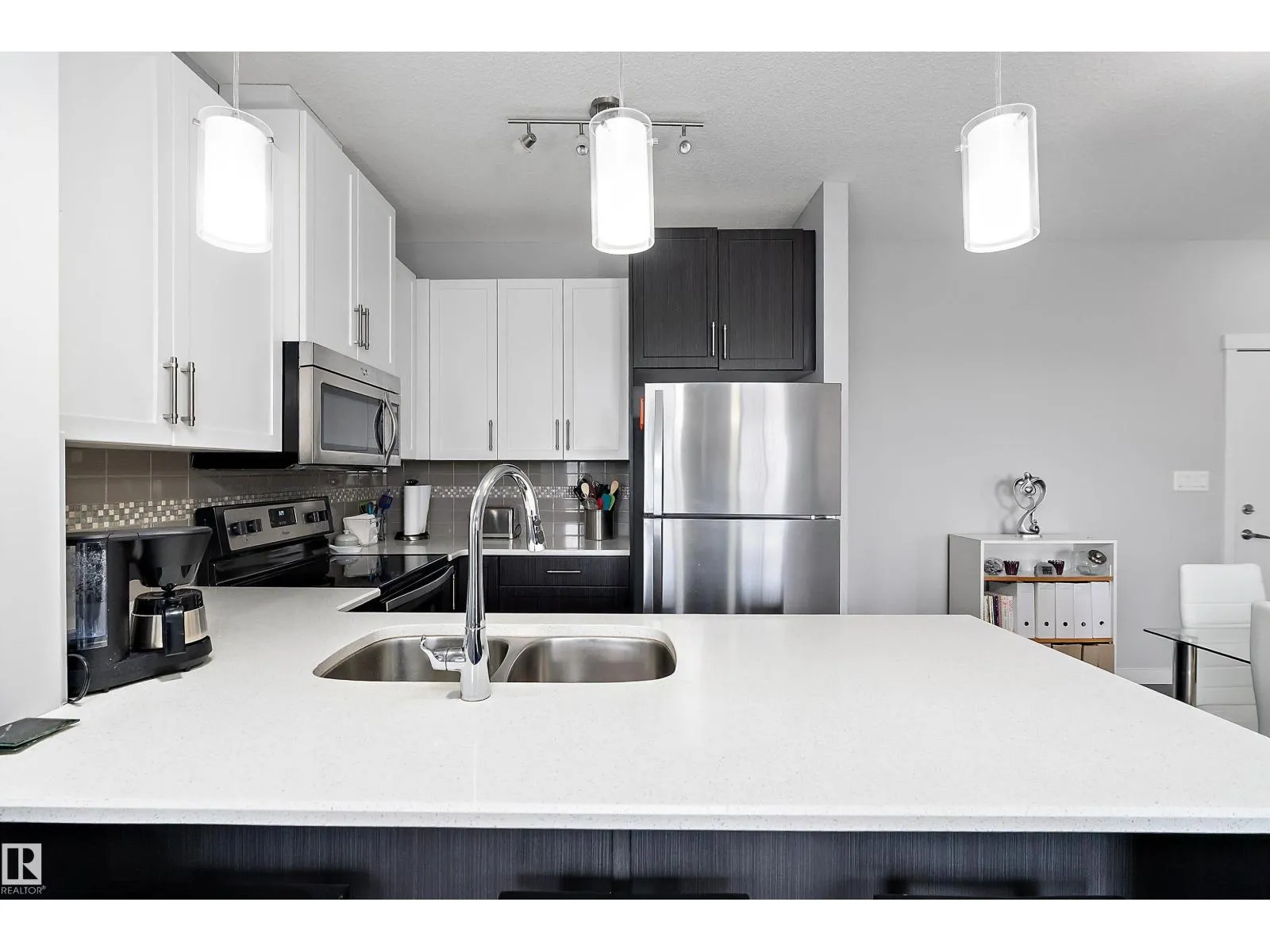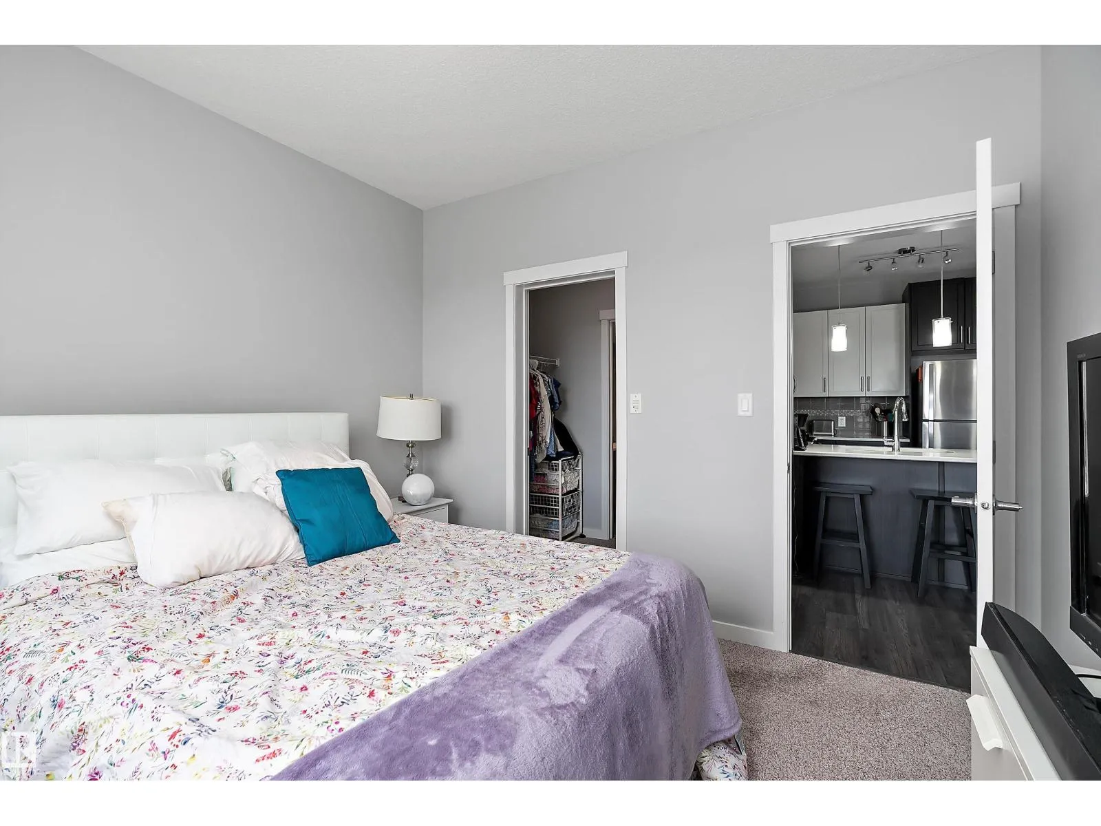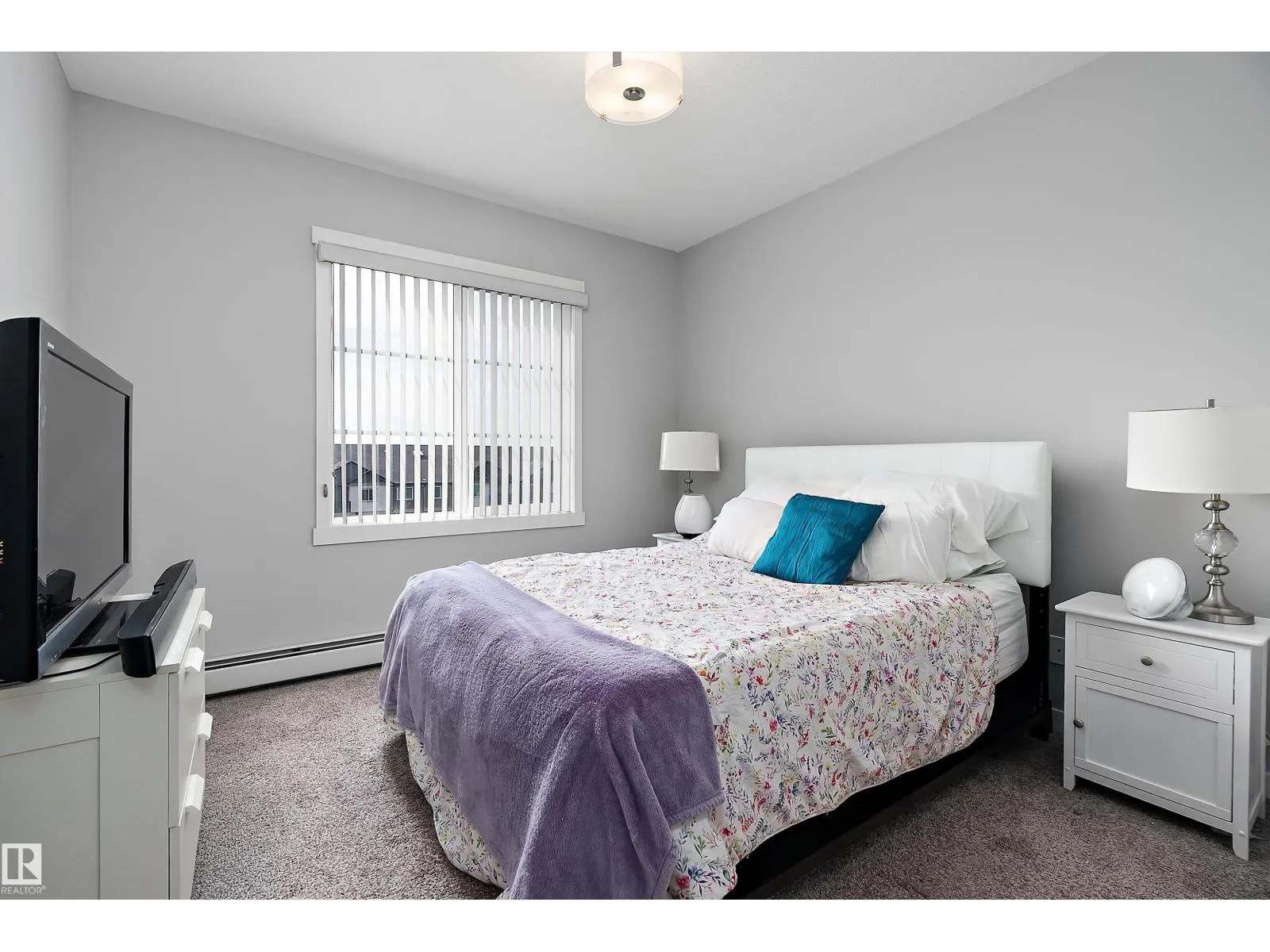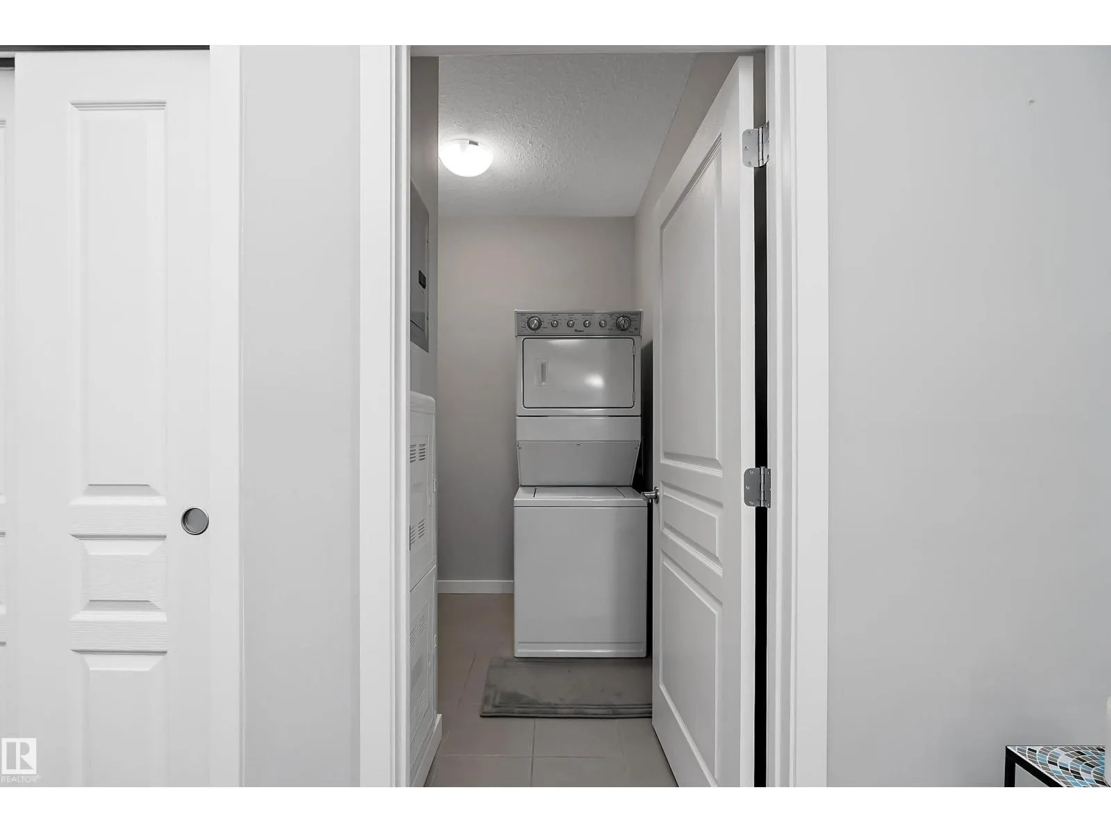 WEST FACING, TOP FLOOR unit with 2 brs and 2 bathrooms. Condo fees include utilities. This 881 sq.ft. home has soaring 9' ceilings providing a more spacious feeling. Upgrades include: AC, cabinetry and drawers are all SOFT CLOSE , QUARTZ kitchen countertop with breakfast bar and subway tile backsplash, tile floors in bathrooms and laundry room, Kohler faucets, QUARTZ counters and backsplash in both bathrooms. Things the owner likes about their home: being on the TOP FLOOR with high ceilings, layout, flooring ,the colors of the walls and cabinets, the UPGRADES paid for when they bought from the builder, insuite laundry and storage, AC, appliances, the AMAZING SUNSET VIEWS, a pots and pans drawer, and that it's a GREAT KITCHEN FOR BAKING. What they like about the neighborhood: it's a great location close to schools, shopping, services, lakes and various WALKING PATHS, great access to Ellerslie Road, The Henday, other main arteries, and the airport. The TITLED UNDERGROUND stall is in a great spot. (id:27476)