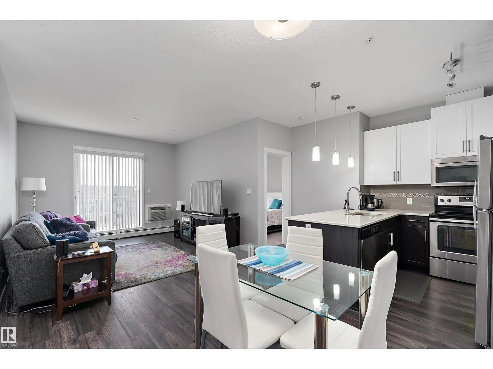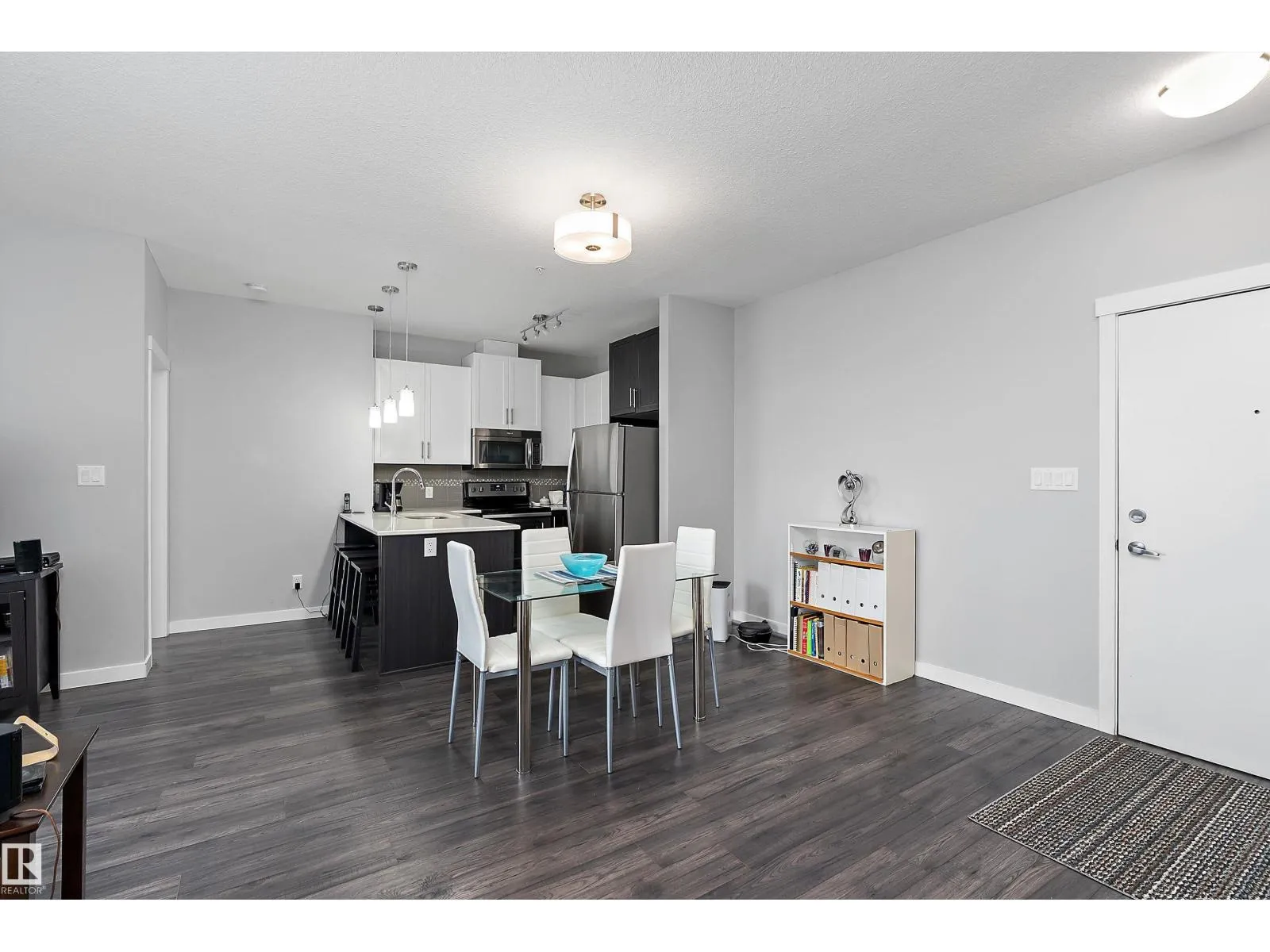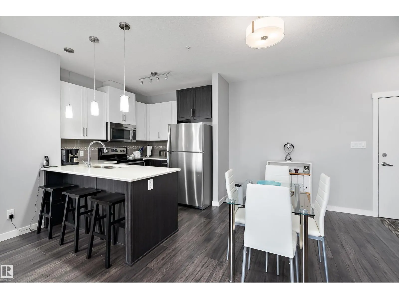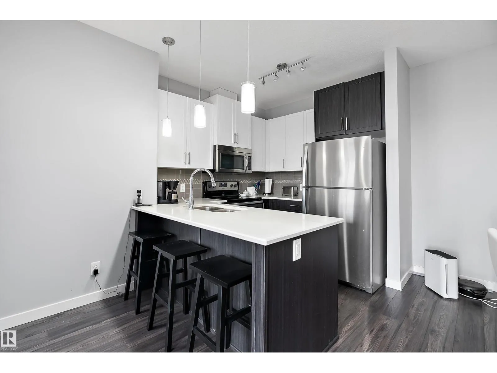 WEST FACING, TOP FLOOR unit with 2 brs and 2 bathrooms. Condo fees include utilities. This 881 sq.ft. home has soaring 9' ceilings providing a more spacious feeling. Upgrades include: AC, cabinetry and drawers are all SOFT CLOSE , QUARTZ kitchen countertop with breakfast bar and subway tile backsplash, tile floors in bathrooms and laundry room, Kohler faucets, QUARTZ counters and backsplash in both bathrooms. Things the owner likes about their home: being on the TOP FLOOR with high ceilings, layout, flooring ,the colors of the walls and cabinets, the UPGRADES paid for when they bought from the builder, insuite laundry and storage, AC, appliances, the AMAZING SUNSET VIEWS, a pots and pans drawer, and that it's a GREAT KITCHEN FOR BAKING. What they like about the neighborhood: it's a great location close to schools, shopping, services, lakes and various WALKING PATHS, great access to Ellerslie Road, The Henday, other main arteries, and the airport. The TITLED UNDERGROUND stall is in a great spot. (id:27476)