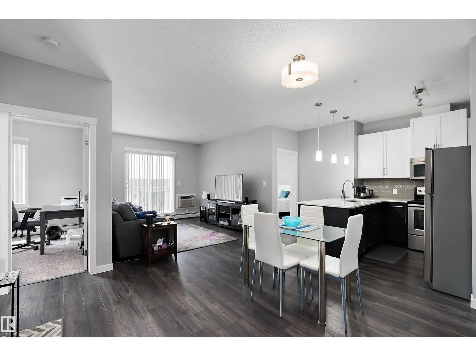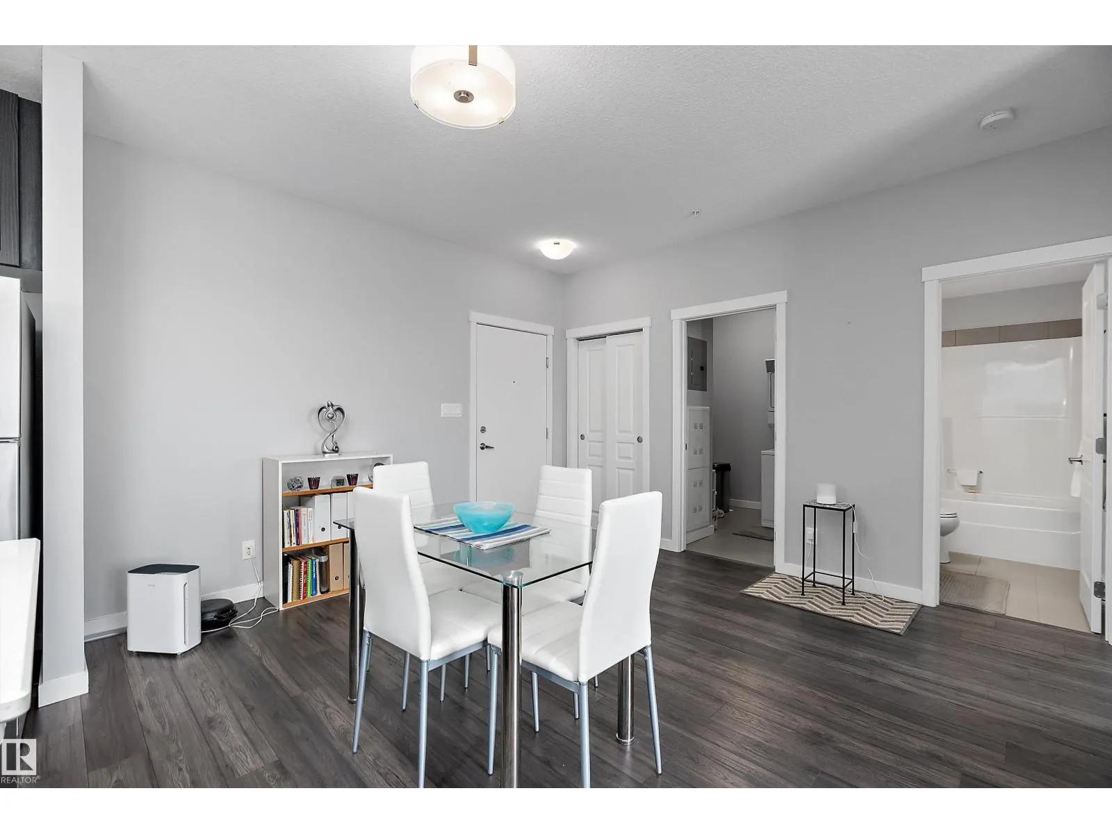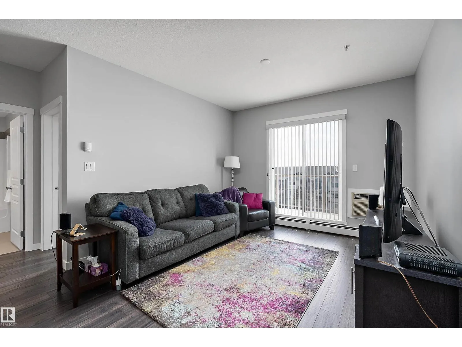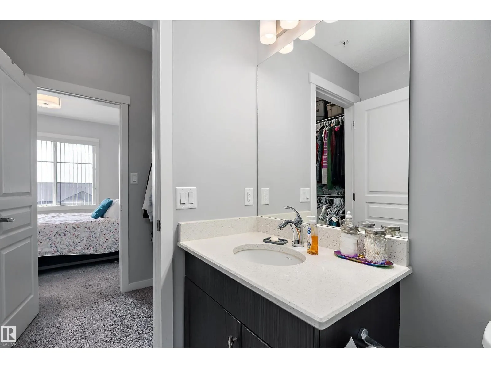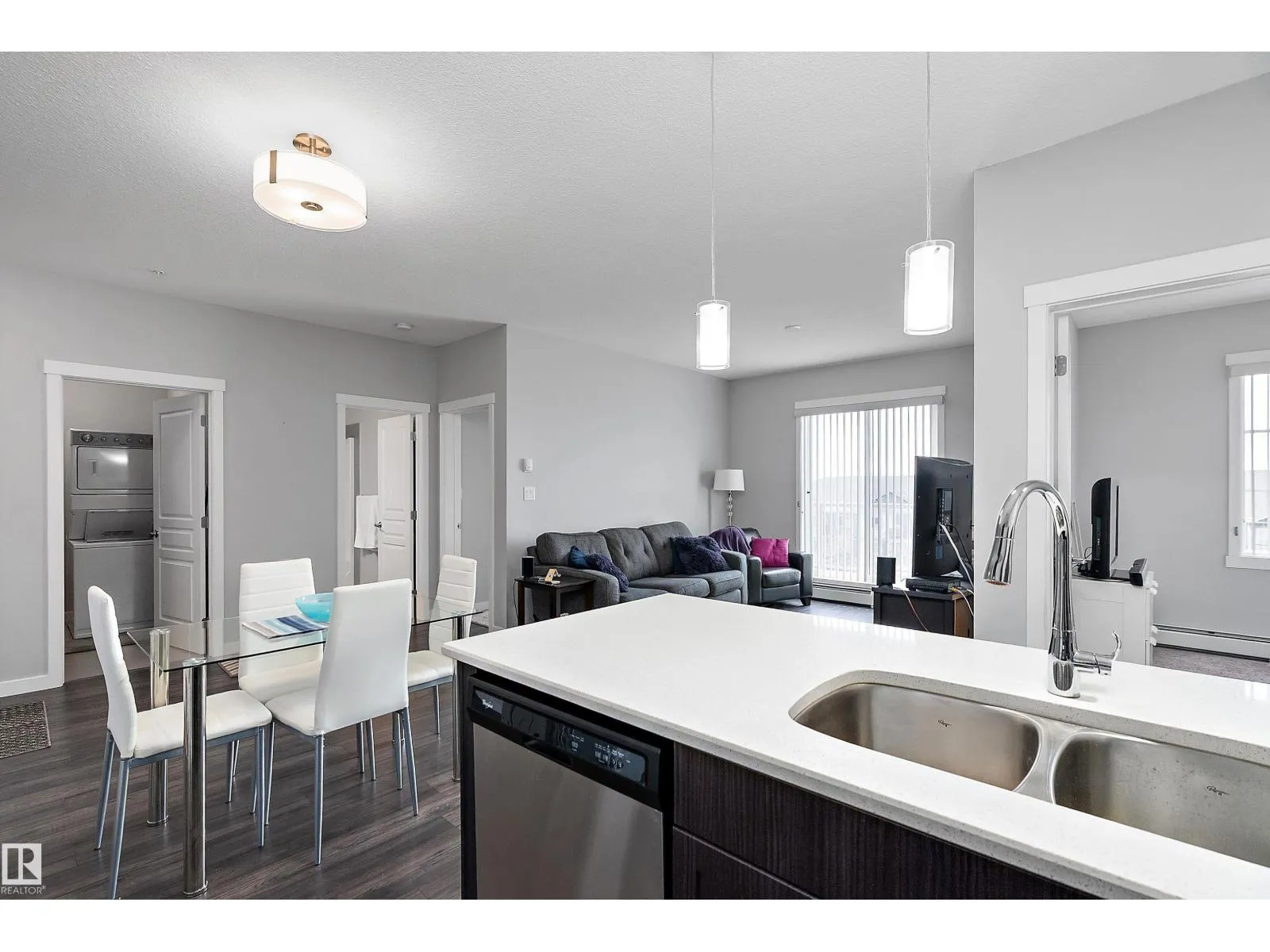 WEST FACING, TOP FLOOR unit with 2 brs and 2 bathrooms. Condo fees include utilities. This 881 sq.ft. home has soaring 9' ceilings providing a more spacious feeling. Upgrades include: AC, cabinetry and drawers are all SOFT CLOSE , QUARTZ kitchen countertop with breakfast bar and subway tile backsplash, tile floors in bathrooms and laundry room, Kohler faucets, QUARTZ counters and backsplash in both bathrooms. Things the owner likes about their home: being on the TOP FLOOR with high ceilings, layout, flooring ,the colors of the walls and cabinets, the UPGRADES paid for when they bought from the builder, insuite laundry and storage, AC, appliances, the AMAZING SUNSET VIEWS, a pots and pans drawer, and that it's a GREAT KITCHEN FOR BAKING. What they like about the neighborhood: it's a great location close to schools, shopping, services, lakes and various WALKING PATHS, great access to Ellerslie Road, The Henday, other main arteries, and the airport. The TITLED UNDERGROUND stall is in a great spot. (id:27476)