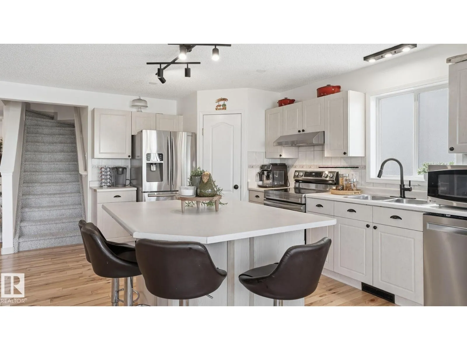 Nearly 2,000 sq ft plus a fully finished basement on a quiet cul-de-sac in Blackmud Creek, offering 6 bedrooms and plenty of space for a growing family. The main floor features an open kitchen and living room with corner gas fireplace, a breakfast nook, dining room and a den/office/ flex space off the garage that is perfect for extra storage, a home office, or busy family life. The living area looks out to the private backyard and large deck, with a hot tub added in 2023. Upstairs you will find 4 bedrooms, a full bathroom, and a spacious primary suite with a large walk-in closet and 5-piece ensuite. The finished basement adds 2 more bedrooms, another full bathroom, and a large family room ideal for movie nights, games, or teenagers wanting their own space. Recent updates include central A/C, hardwood, carpet, and kitchen light fixtures in 2022, new stove in 2024, dishwasher and bathroom flooring in 2025, plus new basement laminate and vanities. (id:27476)
