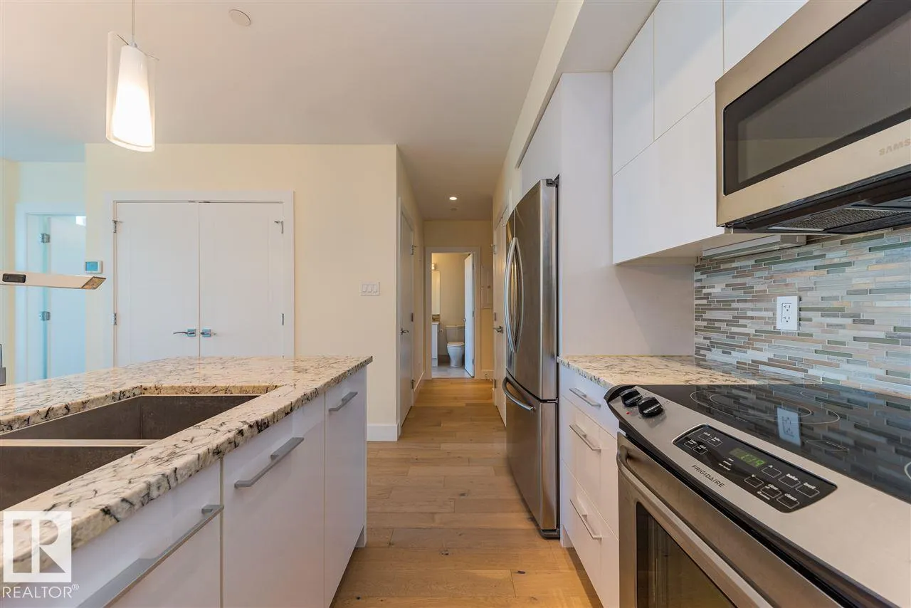 Immaculate 1 Bedroom Executive Condo in the Magnificent Pearl Tower. Features Floor to Ceiling Windows, New White Oak Engineered Flooring, Open Floor Plan, Lovely Kitchen with Granite Counters and Stainless Steel Appliances, Spacious Living Room with Glass Door Access to the Balcony, Four Piece Bathroom with Soaker Tub/Shower Surround and Cheater Door to the Master Bedroom. Insuite Laundry, Hidden Roller Blinds, In-Ceiling Speakers, Heat Pump Heating/Central Air Conditioning, Programable Thermostat. Also, Includes a Titled Underground Parking Stall (#352) with Storage Cage. Complex Amenities Include On Site Concierge Service, Fitness Room, Social Rooms with Kitchen and Patio Area. Exceptional Location Near Restaurants, Shopping, Transportation, the River Valley and All Amenities. (id:27476)