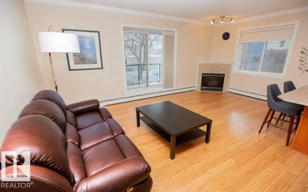 High Level Crossing - Concrete & Steel construction - Unit features 2 heated underground parking stalls (attached storage cage), 2 bedrooms, 2 bathrooms (ensuite), in-suite laundry, balcony with SE facing park view, BBQ hookup, corner gas fireplace & crown mouldings. Kitchen features SS appliances, undermount sink, spacious pantry & quartz countertops. Living room/dining area is bright with open concept. Steps away to the University of Alberta, Downtown, the River Valley & walking/biking trails. Close to everything that Garneau offers. (id:27476)