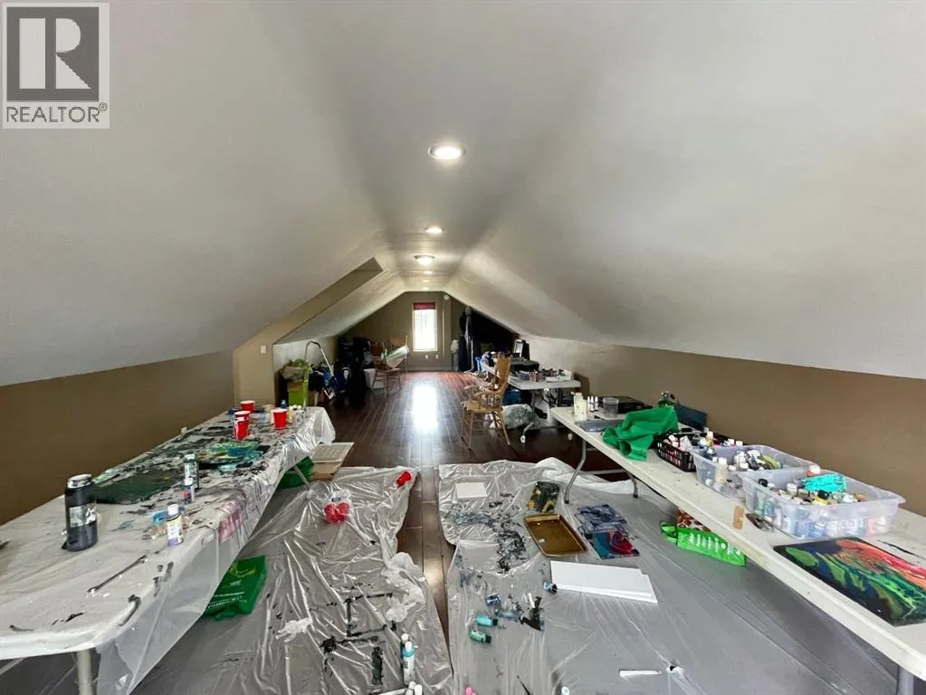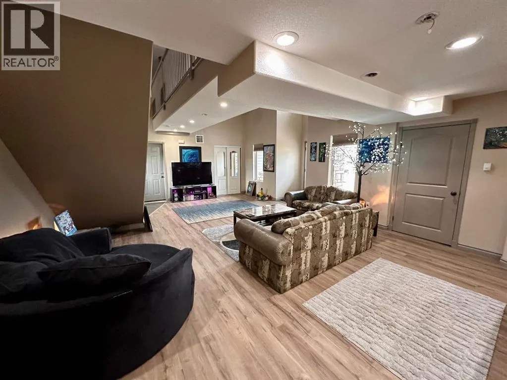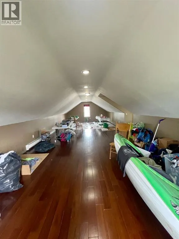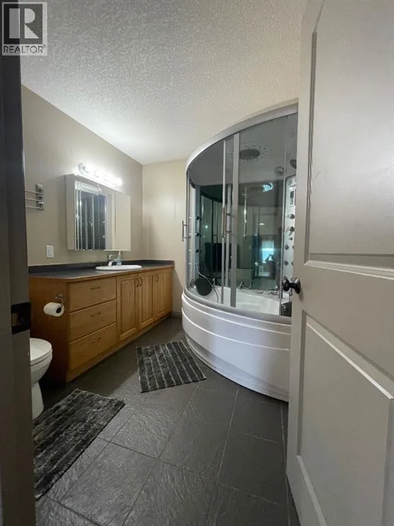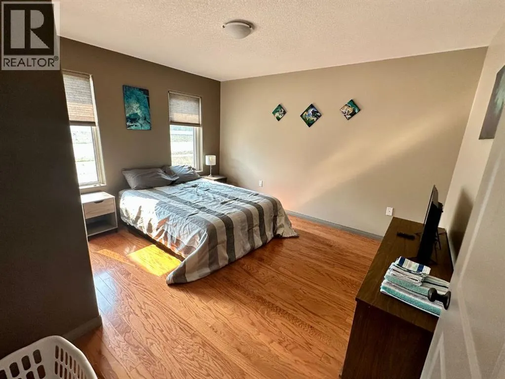Spacious custom built 5 bedroom, 3 bathroom home located near schools, playgrounds, walking trails, and the new hospital! Home boasts an open concept kitchen and dining area with oak cabinets by Theo and breakfast nook, in-floor heating, triple glazed windows, ceramic tile and engineered hardwood flooring and California knockdown ceilings. Large primary bedroom on main level that features a huge walk in closet and a beautiful ensuite with controlled jetted tub with small tv, lights, and a separate shower with side jets and a waterfall. Upstairs you're greeted by a gigantic living room with French Doors leading to the balcony, bedroom, 4 piece bathroom, and walkway over the main level taking you to the enormous bonus room/bedroom over the garage. 30' x 26' attached heated garage and tonnes of parking. Don't miss your chance to own this one of a kind custom built home located in our family oriented Hillendale Subdivision! (id:27476)