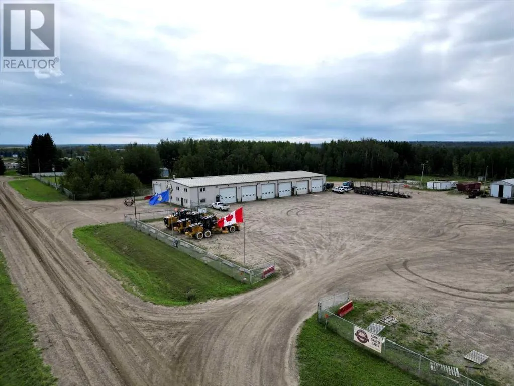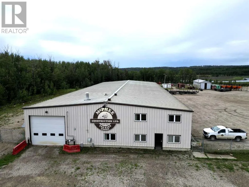 14,000+- sq/ft Commercial/Industrial Building on 26 acres located on the West side of the Town of Edson, 2 klms from Downtown with great exposure bordering Hwy 16 East. The property includes a 12,000 sq foot shop space consisting of 6 - 24x50 BAYS w/ 14ft doors, 16ft ceiling height at the doors and 19 in the center, plus an additional 19x168 drive through back bay. In addition to the shop, there are 4 offices, a front reception area, lunchroom, 3 bathrooms and a large open boardroom area on the 2nd level with a separate office and mezzanine area! This property is securely fenced with plenty of parking, power outlets along the back of the building, used oil containment available, overhead radiant heat and has a 26 acre well packed gravel yard space to accommodate heavy trucks and equipment. This property also houses a 1994 3-bedroom, 2-bathroom mobile home set up to accommodate surveillance for the maintenance, security and safety of the primary establishment. (id:27476)