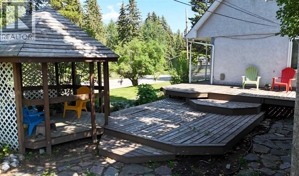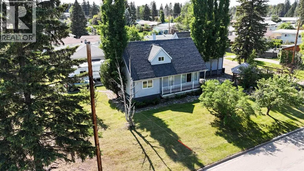 Step into timeless charm and modern functionality with this lovingly maintained character home, ideally located in the sought-after East End of Edson. Filled with natural light, the main floor features a spacious primary bedroom with two bright windows, and original coved ceilings that bring warmth and elegance to the dining and living rooms.Upstairs, two generously sized bedrooms share a convenient 2-piece bath â perfect for family or guests. The fully developed basement is ideal for cozy evenings in the large family room, complete with a wood-burning stove. Thereâs also ample space for games, a home gym, or hobbies, along with a large bedroom, 3-piece bath, laundry area, and excellent storage.Over the years, the home has seen thoughtful upgrades, including new windows, while maintaining its original charm and character.Outside, the beautifully landscaped yard offers privacy with mature trees and partial fencing. Enjoy the serene setting from the welcoming front veranda or the multi-level deck in the backyard â ideal for relaxing or entertaining.A standout feature is the impressive two-storey garage â a true âman denâ or hobbyistâs dream â fully wired with 220 power, plumbed for in-floor heat, includes a forced air furnace, water, automatic garage door opener, and a full kitchen in the upper loft. Whether you're entertaining, tackling a project, or watching the big game, this space is ready for it all.A unique blend of classic character, comfort, and modern function â this one-of-a-kind property is a rare find! (id:27476)