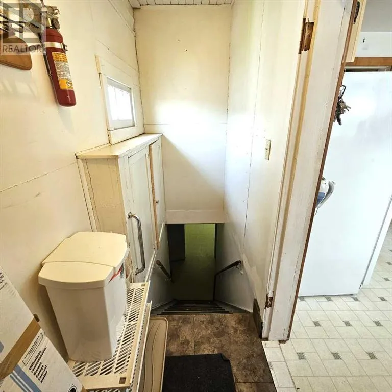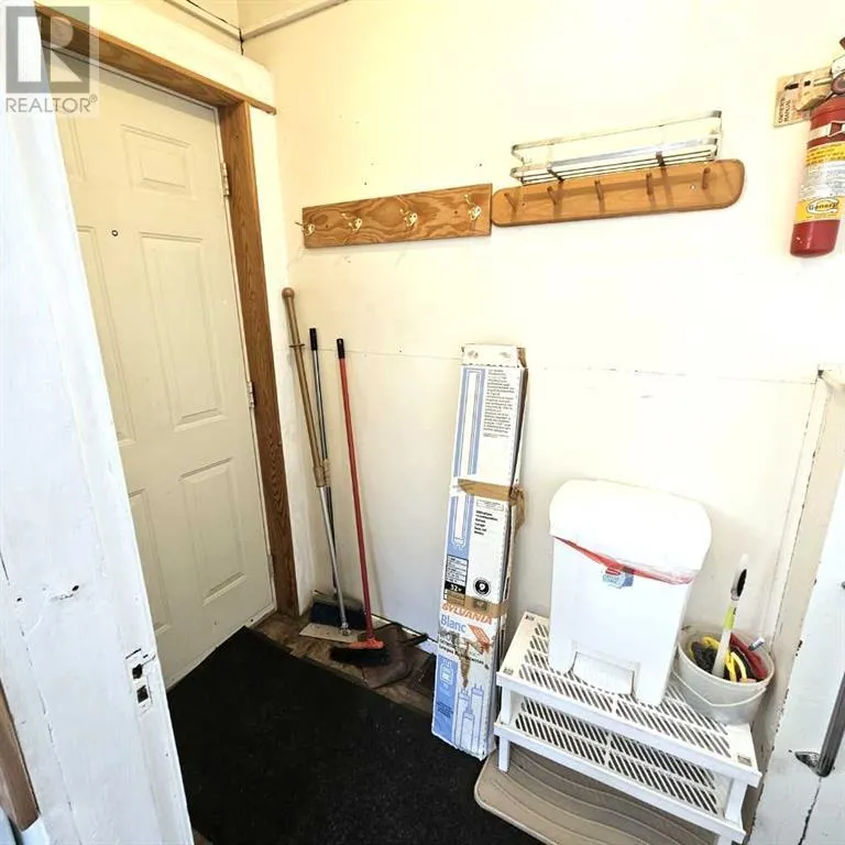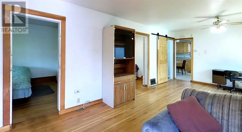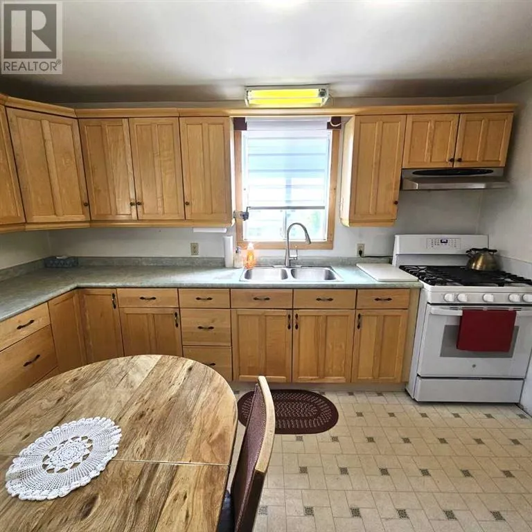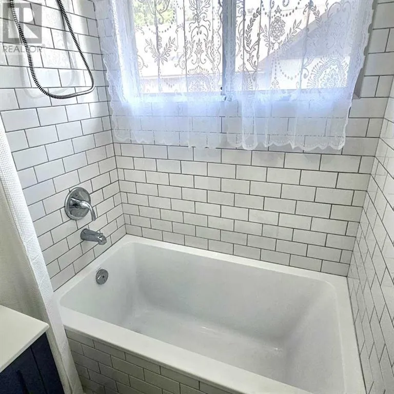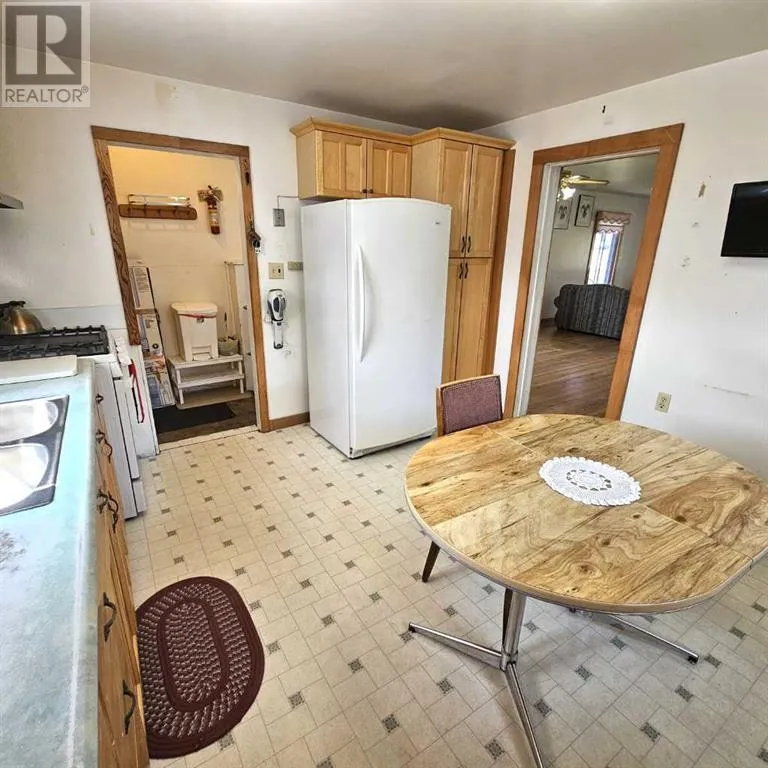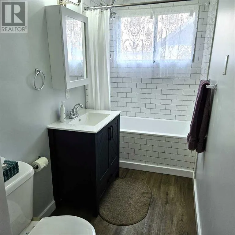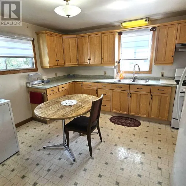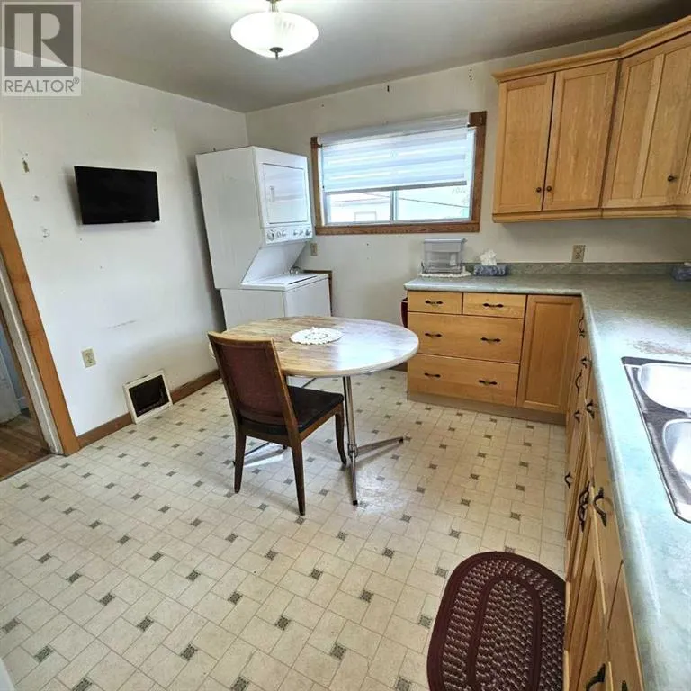 This well-appointed bungalow, originally constructed in 1923, seamlessly blends classic character with contemporary enhancements. Significant renovations have been completed, including a structural elevation in 1992 for installation of a full concrete basement. Subsequent upgrades in 1996 brought the home to a 1955 age standard as recognized by the Town assessment. The main floor offers an expansive, open-concept living area comprising both living and dining rooms suitable for hosting family gatherings. The kitchen, situated at the rear of the home, benefits from ample cabinetry and counter space, a pantry cupboard, accommodation for a small dining set, and a stackable washer/dryer which establishes a self-contained space on the main level. Two bedrooms and a brand new four-piece bathroom complete this floor. The rear entrance provides access to both the main and lower levels, complemented by a dedicated side entrance to the basement. The basement offers a workshop/storage/laundry room at the back and additional living quarters at the front, featuring a living area with kitchen and dining space, a generously sized bedroom, and a four-piece bathroom. Numerous updates have been undertaken, including new electrical wiring and panel, upgraded furnace and water heater, installation of a backflow valve and sump pump, enhanced insulationâsuch as blown-in attic insulation, refreshed kitchen cabinetry, and a durable metal roof. The covered front veranda has been recently redone, providing a comfortable outdoor retreat and sheltered entryway. The mature yard is ideal for gardening enthusiasts, featuring a variety of fruit trees and bushesâapple, chokecherry, crab apple, saskatoon, and raspberryâalong with a spacious garden area and numerous perennial flower beds surrounding the home. A large shed ensures adequate storage for equipment, while off-street parking is available via the back alley. The convenient location of this home allows for walking to all amenities including t he medical centre, banks, shopping, restaurants, schools, parks and playgrounds. A great property for first time buyers or investors! Sellers are motivated and will consider all reasonable offers. (id:27476)