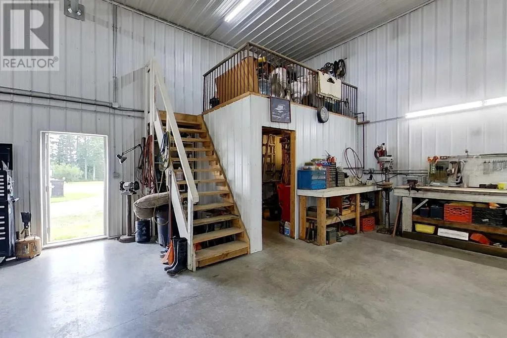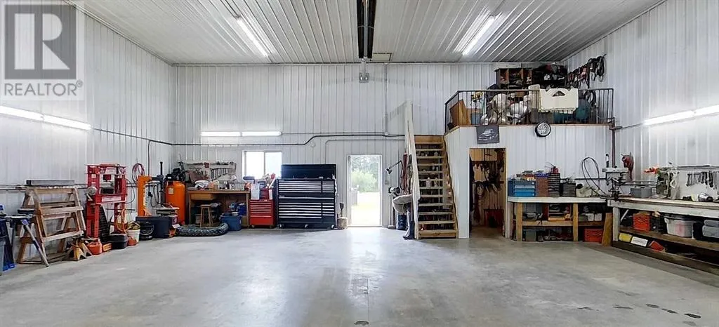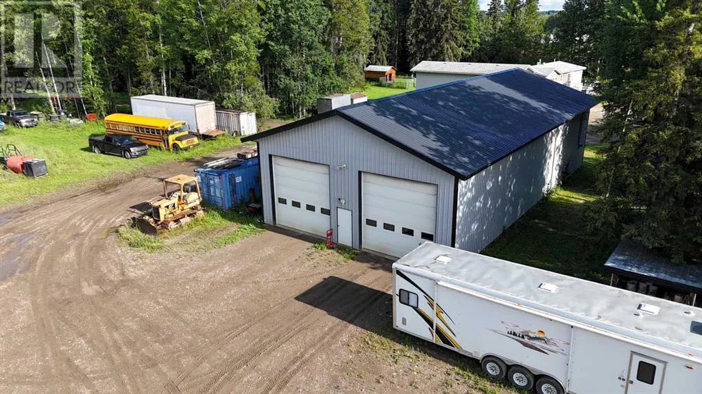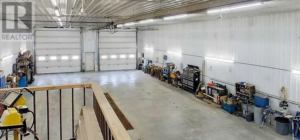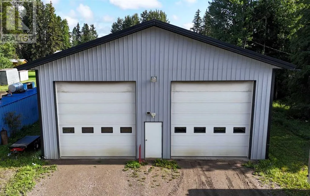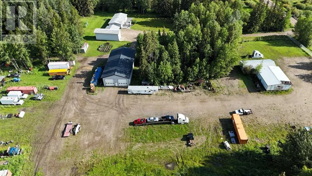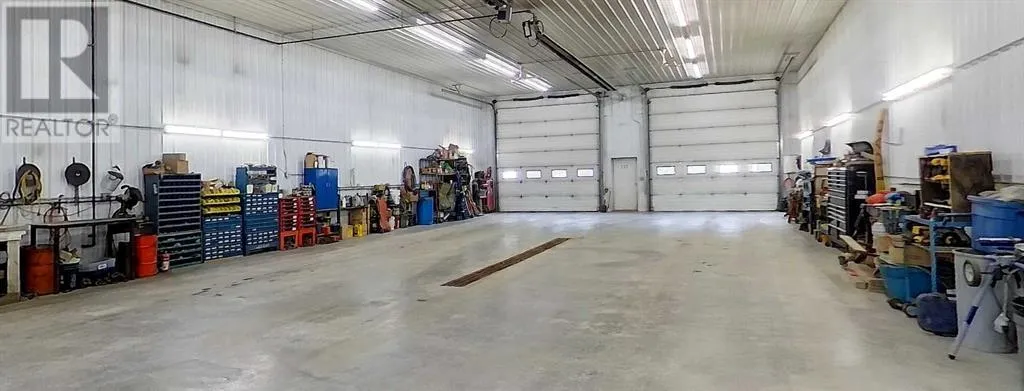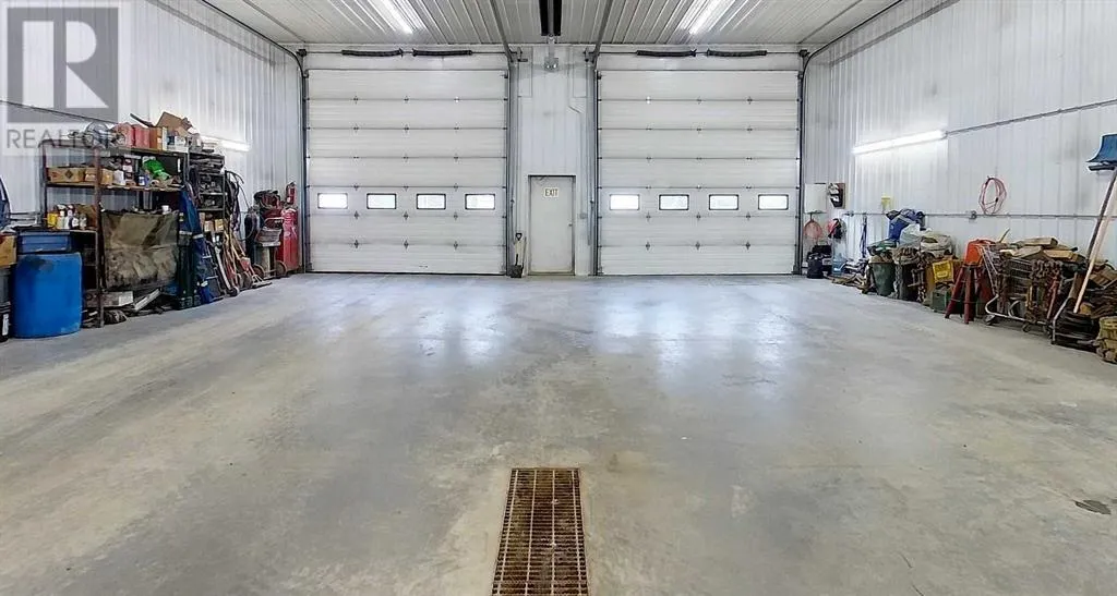 Prime opportunity to own a fully serviced Business Industrial (BI) zoned property offering a wide range of permitted uses including bulk fuel and chemical storage, manufacturing, salvage/recycling, storage facilities, major industry, and office space. The property features a commercial-grade 40' x 80' shop built in 2014 that features 16 ft ceilings and two - 14 ft overhead doors, radiant heat, roughed-in plumbing for a future bathroom, and a mezzanine officeâperfect for a variety of industrial or storage operations. Additional improvements include a 25' x 24' heated double detached garage built in 2016 (furnace replaced 3 years ago) and a 16' x 48' RV bay with a 14 ft roll-up overhead door (unheated). The yard is partially perimeter fenced with newly replaced 30 ft and 20 ft rolling gates for secure access. Property has a septic system with open discharge, a 160 ft well, weeping tile drainage (separate tank) and two cold storage buildings with power. Also included is a 1993 - 1,450 sq ft modular office/surveillance suite on a concrete basement with 200-amp serviceâideal for modern office use or temporary employee accommodations. Features include in-floor heating in the basement, forced air on the main floor, hot water tank (replaced 6 years ago), and shingles (8â10 years old). Shop and office are on separate utility services. Extras: RV plug, ample yard space, and Business Industrial zoning make this a highly functional and flexible property for expanding businesses. Don't miss this rare industrial/commercial opportunity on 40.04 acres within town limits. (id:27476)