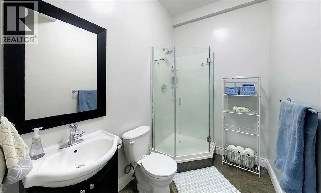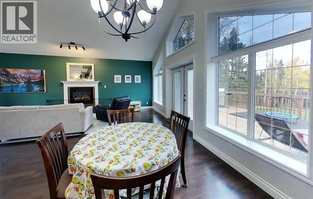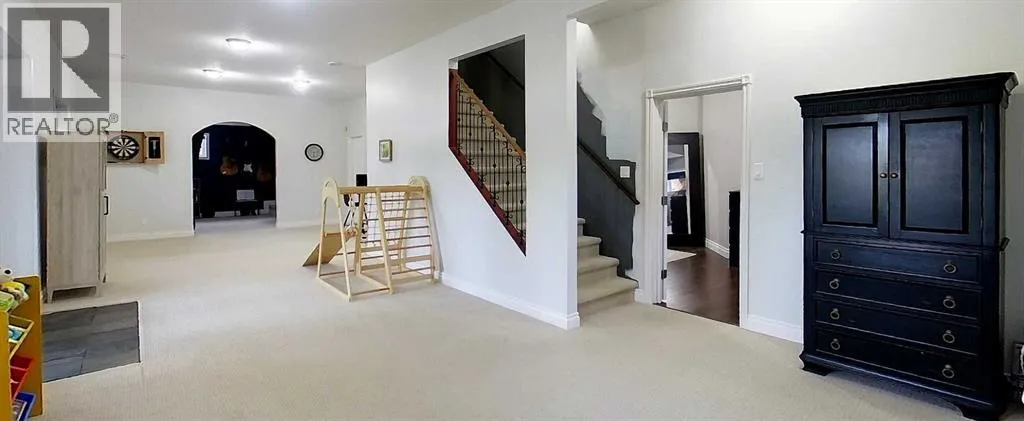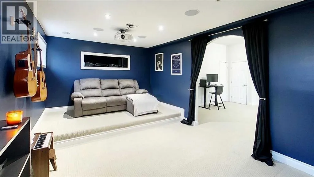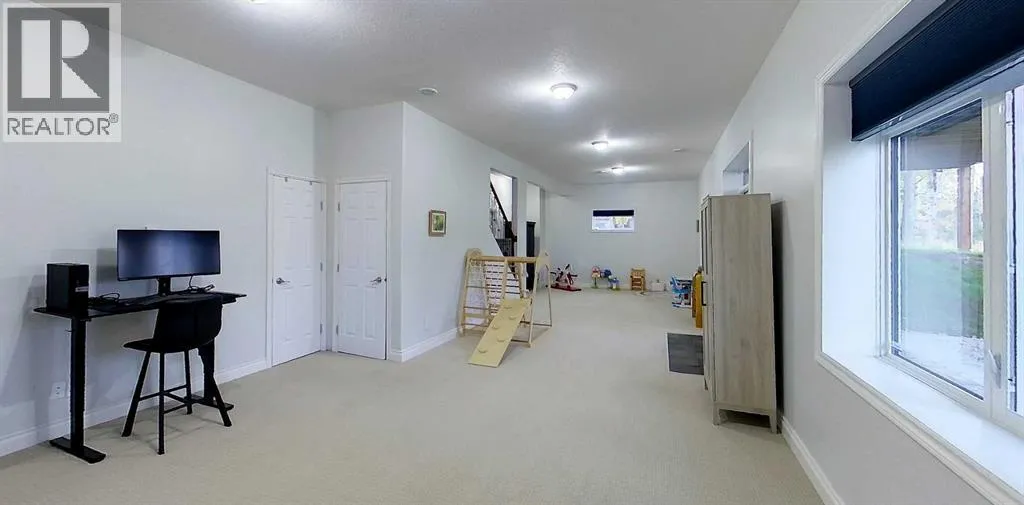 Welcome to Bench Creek Estates â where mountain views and modern comfort unite. This custom two-storey home on 4.05 acres offers breathtaking southwest views of the Rocky Mountains, combining refined country living with the convenience of being in town. The open-concept design features a striking staircase, bright and spacious living areas, and a gourmet kitchen with abundant cabinetry, a center island, stainless steel appliances, and a new induction stove â ideal for both daily living and entertaining.The master suite includes two private balconies â one overlooking the lower level and the other framing majestic mountain views â and a spa-inspired 5-piece ensuite with a large air-jet soaker tub, walk-in shower, and dual vanity, complemented by a spacious walk-in closet with convenient washer and dryer. Two additional bedrooms and 4 pc bathroom complete the upper level.The fully developed walkout basement offers comfort and entertainment, featuring in-floor heating, a theatre room with projector and sound system, a large family room, a 3-piece bathroom, and a spacious fourth bedroom. The triple attached heated garage provides ample parking and includes a bonus room, perfect for a home office, gym, or ultimate man cave.Recent upgrades and features include new electronic window blinds, fresh interior paint, central air conditioning (2025), and a large new deck â perfect for entertaining or enjoying the spectacular views. Additional highlights include in-floor heating in the basement and garage, hot water on demand, and three new garage door openers with video capabilities, combining comfort, convenience, and modern technology throughout.This property is one of 11 in a âbare land condominiumâ, where you own your lot and have access to 30 acres of fenced and cross-fenced common land, with Bench Creek running along the edge â offering the perfect balance of privacy, community, and natural beauty. (id:27476)