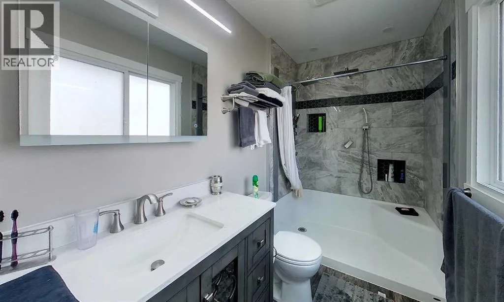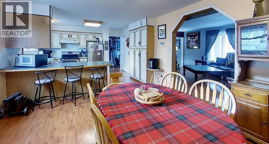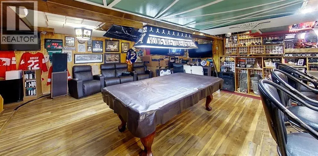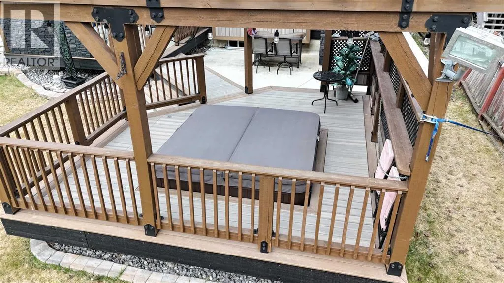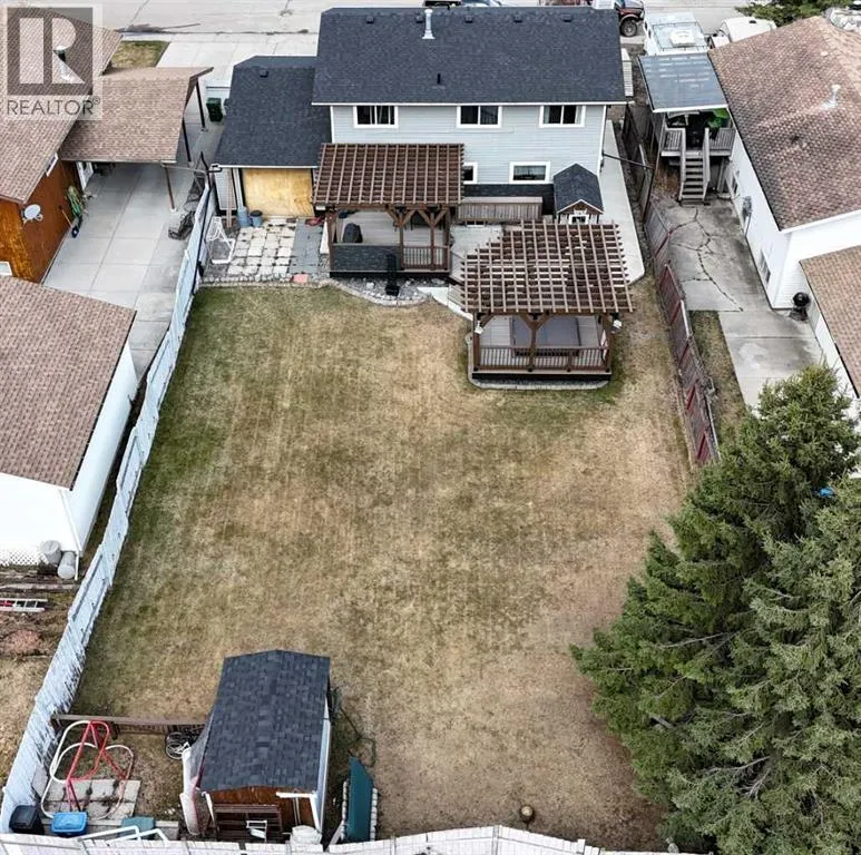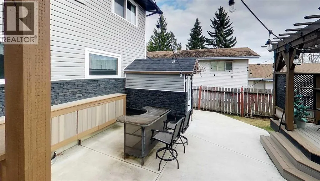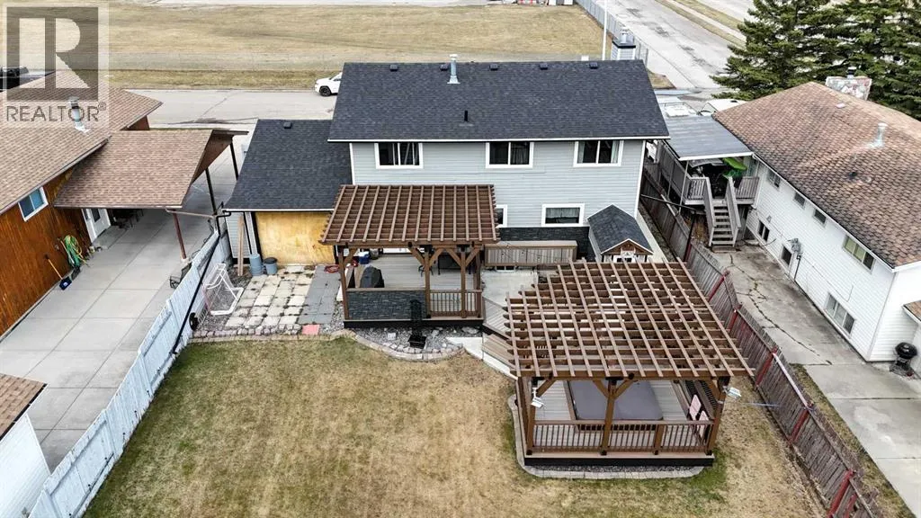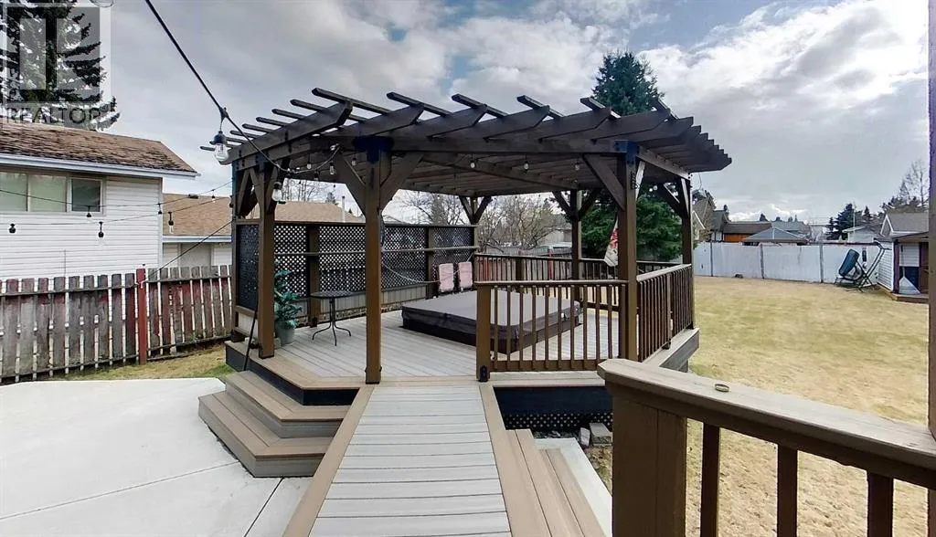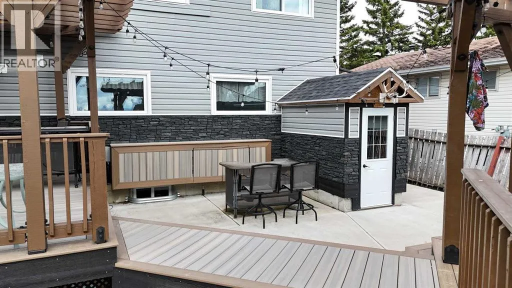 This 2 storey home sits on a massive 9000 sq.ft. lot, perfectly located close to schools, hockey arena, swimming pool, walking trails and just a short walk to downtown. The upper level features 5 spacious bedrooms and a 4 piece bathroom and 3 piece ensuite (bathrooms have been upgraded). In 2019 all new vinyl widows were instlled, adding to the homes energy efficiency and curb appeal along with new exterior finishing. The main floor offers a bright and inviting layout with a large kitchen and dining area, a formal dining room, a cozy living room with wood burning fireplace and a convenient 2 piece bathroom. The basement is an absolute showstopper - a man cave like no other. With a separate entrance, the fully finished basement includes a bar with a it up counter, fridges, a dishwasher, and a pool table which stays! You will also find a den, a 3 piece bathroom and a laundry area with two sets of washers and dryers. Step outside to enjoy two beautiful decks, both built in 2019. The first is a 16 x 16 featuring a bbq, bar area under a stylish pergola. A bridge leads to the second deck, also covered by a pergola which houses a relaxing hot tub. This second deck is engineered for durability supported by 13 piled foundations. This is a rare opportunity to owm a home with incredible indoor an outdoor entertainment spaces, perfect for family living and hosting friends. (id:27476)