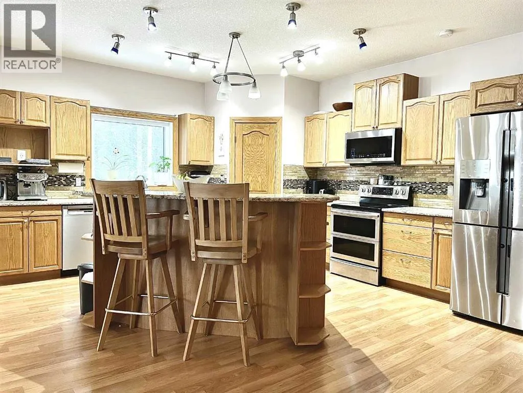 Step into 4228 8th Avenue, a beautifully maintained family home located in a quiet cul-de-sac in Edsonâs desirable East End. This impressive 3234.9 sq. ft. property sits on a generous 0.31-acre lot, backing onto a greenbelt and walking trails for exceptional privacyâwith no neighbours directly behind you.Featuring excellent parking options, this home offers an attached garage, plus 8-ft. wide gates providing easy access for an RV, boat, or additional toys. The charming front porch includes low-maintenance composite decking, while the expansive backyard boasts two large decks, perfect for entertaining or relaxing outdoors.One of the entrances off the back deck leads into a space that can be used for your guests complete with its own kitchen, bathroom, bedroom, and living area. A second back entrance conveniently opens into the main dining room.Inside the front entrance, youâre welcomed by a striking two-storey foyer. This spacious home offers six oversized bedrooms and 3.5 bathrooms, including a fully finished basement that includes two of the oversized bedrooms, a full bathroom, and a flexible family/gym area.The gorgeous open-concept kitchen features granite countertops, oak cabinetry, and stainless steel appliances, seamlessly connecting to the dining and family rooms. The dining area is generously sizedâperfect for hosting large gatherings.Upstairs, the primary bedroom is a true retreat with a private balcony overlooking the backyard, a massive walk-in closet with additional stackable laundry, and a luxurious 4-piece bathroom with a jetted tub, stand-up shower, and double sinks. Two more exceptionally large bedrooms complete the upper level.With abundant space, thoughtful design, and a peaceful, private location, this home is perfect for families seeking comfort, functionality, room to grow and Walking distance to schools! (id:27476)