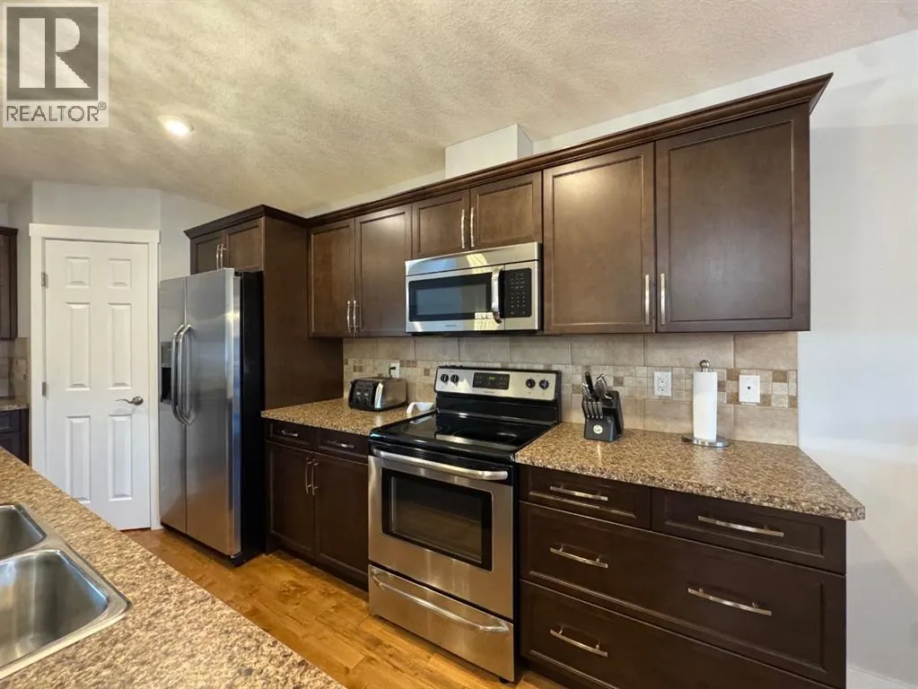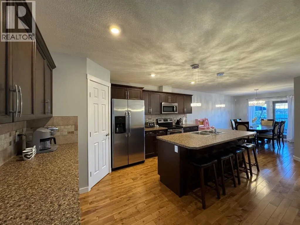 Welcome to this gorgeous, immaculate, and sunny NEWER duplex with 2 beds, 2 baths, garage, and an unfinished basement with large windows and potential to create 2 more bedrooms, family/rec room, and is roughed in for a 3rd full bath. Enjoy the sunny front deck with southern exposure to have your morning coffee! Entrance/mud room is large with 2 double closets and access to the single attached garage. Living room is bright and has ample space to relax or entertain and opens to the stunning kitchen! This kitchen is a chefâs dream featuring: a large coffee bar, huge island with a double sink and seating for 4, gorgeous espresso high quality Kitchen Craft soft close cabinets, stainless appliances, and a pantry for additional food/smaller appliance storage. The kitchen is open concept with the dining space creating the perfect space for a family dinner or hosting a gathering! Large back deck overlooks the backyard and peaceful back field with no neighbours behind. Primary bedroom is very spacious and features a walk in closet and 2pc ensuite, plus faces north and is very quiet! Beautiful upgrades over past 2 years: luxury high capacity smart washer / dryer stackables, professional modern paint on interior walls/doors/trims, stylish modern light fixtures. Great neighbourhood with playground, access to walking trails, ice skating rink, close to new hospital, nearby to schools, shopping, and other amenities. Easy lifestyle with little grass to mow! Great price for a beautiful and modern home that is move in ready! A must see! (id:27476)
