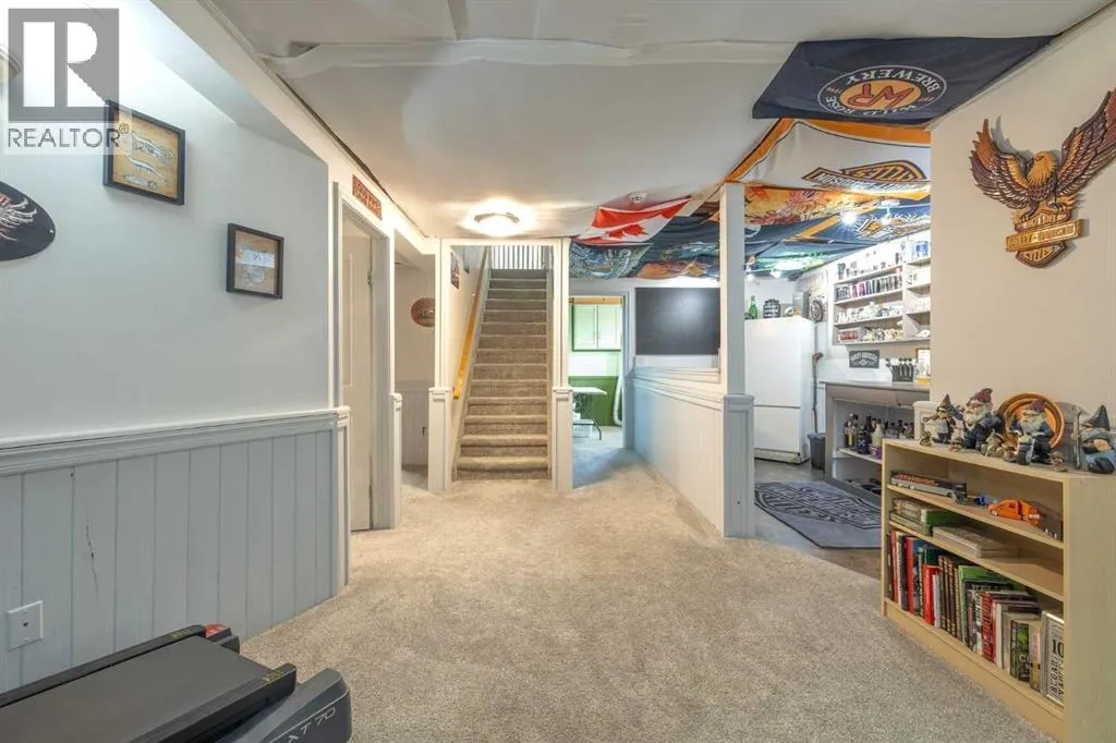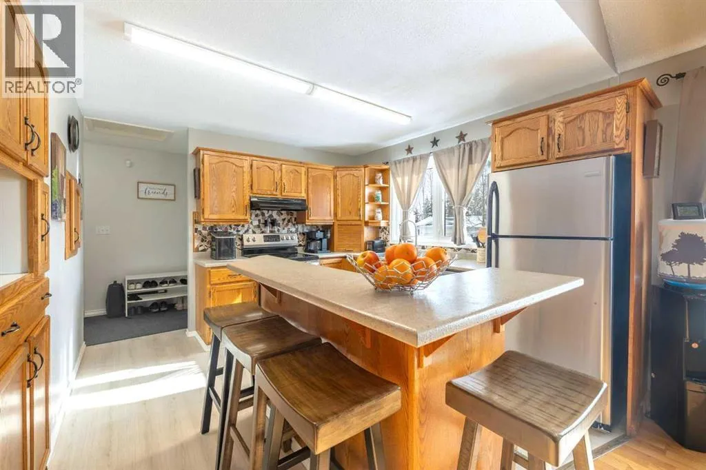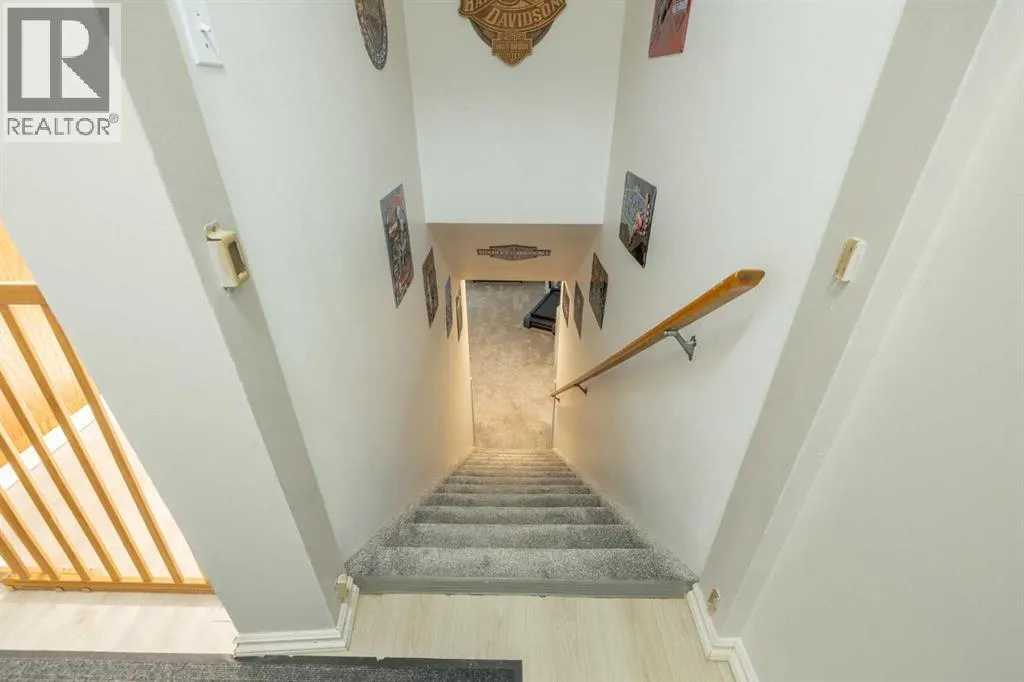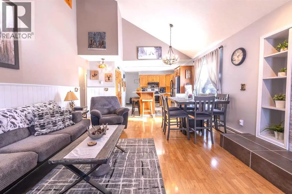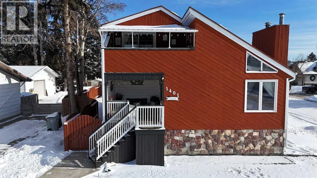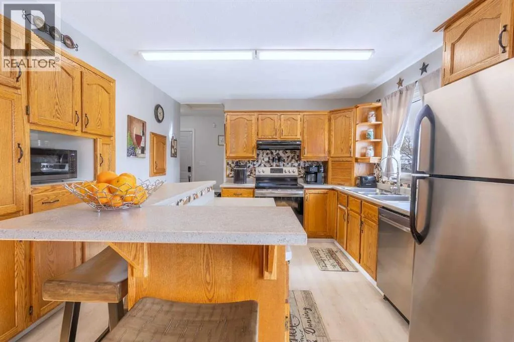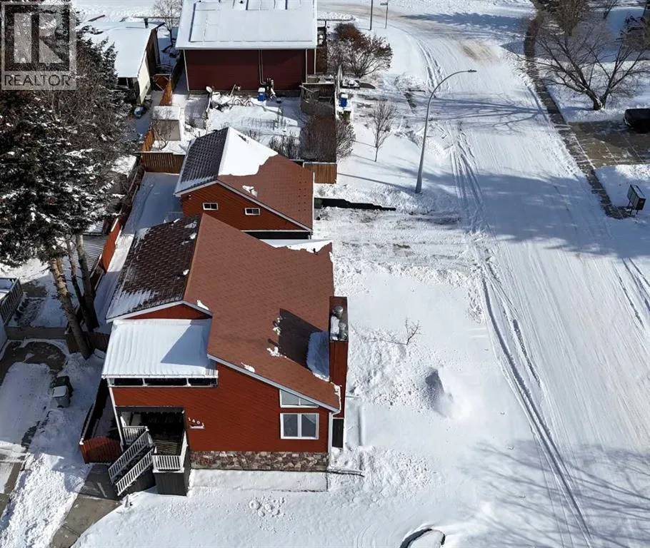 This uniquely designed home offers the perfect blend of comfort, character, and space for both everyday family living and effortless entertaining. From the moment you arrive, youâre welcomed by a charming covered front deck with a cozy seating area â an ideal spot to relax and enjoy the outdoors. Step inside to a spacious foyer that opens into the light-filled living room, where soaring vaulted ceilings create an airy, open feel. The adjoining dining area features a south-facing window overlooking the yard, allowing natural sunlight to pour into the heart of the home. The kitchen is thoughtfully laid out for both functionality and gathering, offering warm stained wood cabinetry, plenty of counter space, a powered island with breakfast bar and convenient pull-out drawers, plus a wall pantry for added storage.The main level also features two generously sized bedrooms, a 4-piece bathroom complete with a jetted tub, a 2-piece powder room, and a large rear mudroom â perfect for busy family life. Upstairs, the loft-style primary suite provides a private retreat with a walk-in closet and 3-piece ensuite. A true highlight is the covered balcony off the primary bedroom â the perfect place to enjoy your morning coffee or unwind at the end of the day while taking in the southwestern exposure, stunning sunsets, and mountain views in the distance. The developed basement adds even more living space with a comfortable family room featuring a dry bar, a fourth bedroom, laundry and utility rooms, and a large storage area. Outdoors, the landscaped and fenced backyard is designed for enjoyment, with a spacious patio ideal for hosting family and friends. The detached 21â x 25â garage includes a loft space â perfect for a workshop, crafting area, or creative studio. A double concrete driveway provides ample additional parking. Numerous upgrades have been completed over the years, including 100-year shingles with snow guards (approx. 2008), new windows (approx. 2008), upper-level balcon y cover, updated paint, light fixtures, flooring, trim, and basement carpet. Situated on a corner lot in the family-friendly Tiffin subdivision, youâll appreciate the welcoming atmosphere â from festive holiday decorating to friendly neighbours â all while being conveniently close to amenities, schools, the YCE Rec Plex, and the Townâs scenic trail system. Move-in ready and full of charm, this is a home you wonât want to miss. (id:27476)