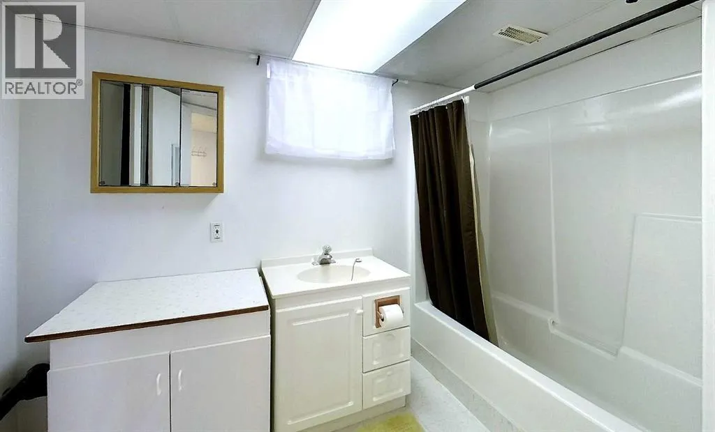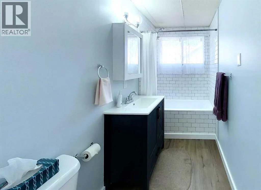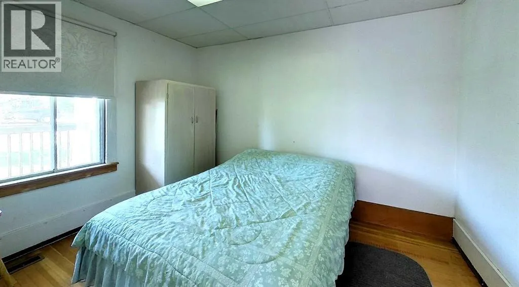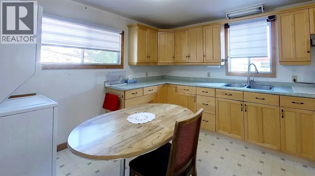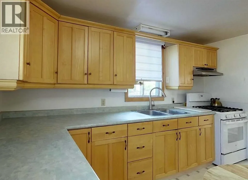 This well-appointed bungalow, originally constructed in 1923, seamlessly blends classic character with contemporary enhancements. Significant renovations have been completed, including a structural elevation in 1992 for installation of a full concrete basement. Subsequent upgrades in 1996 brought the home to a 1955 age standard as recognized by the Town assessment. The main floor offers an expansive, open-concept living area comprising both living and dining rooms suitable for hosting family gatherings. The kitchen, situated at the rear of the home, benefits from ample cabinetry and counter space, a pantry cupboard, accommodation for a small dining set, and a stackable washer/dryer which establishes a self-contained space on the main level. Two bedrooms and a brand new four-piece bathroom complete this floor. The rear entrance provides access to both the main and lower levels, complemented by a dedicated side entrance to the basement. The basement offers a workshop/storage/laundry room at the back and additional living quarters at the front, featuring a living area with kitchen and dining space, a generously sized bedroom, and a four-piece bathroom. Numerous updates have been undertaken, including new electrical wiring and panel, upgraded furnace and water heater, installation of a backflow valve and sump pump, enhanced insulationâsuch as blown-in attic insulation, refreshed kitchen cabinetry, and a durable metal roof. The covered front veranda has been recently redone, providing a comfortable outdoor retreat and sheltered entryway. The mature yard is ideal for gardening enthusiasts, featuring a variety of fruit trees and bushesâapple, chokecherry, crab apple, saskatoon, and raspberryâalong with a spacious garden area and numerous perennial flower beds surrounding the home. A large shed ensures adequate storage for equipment, while off-street parking is available via the back alley. The convenient location of this home allows for walking to all amenities including t he medical centre, banks, shopping, restaurants, schools, parks and playgrounds. A great property for first time buyers or investors! Sellers are motivated and will consider all reasonable offers. (id:27476)