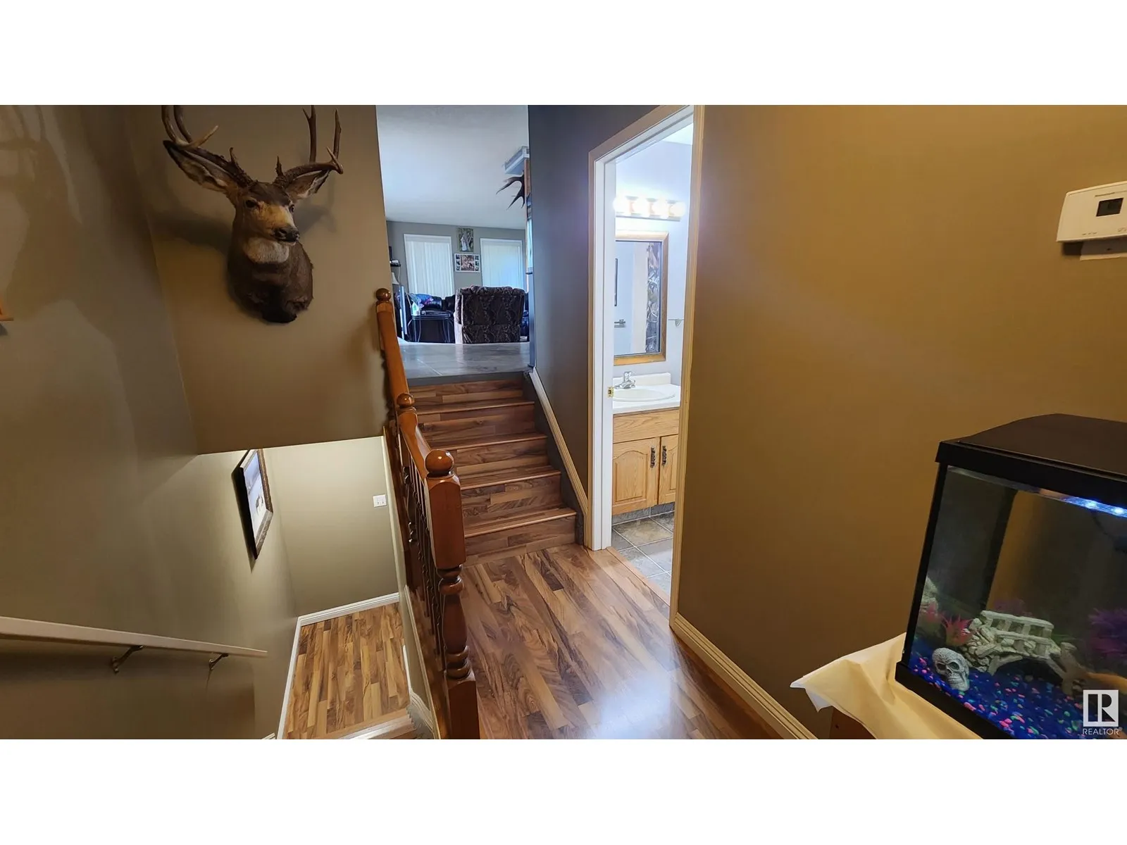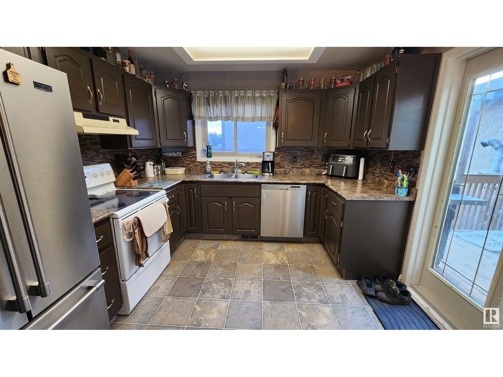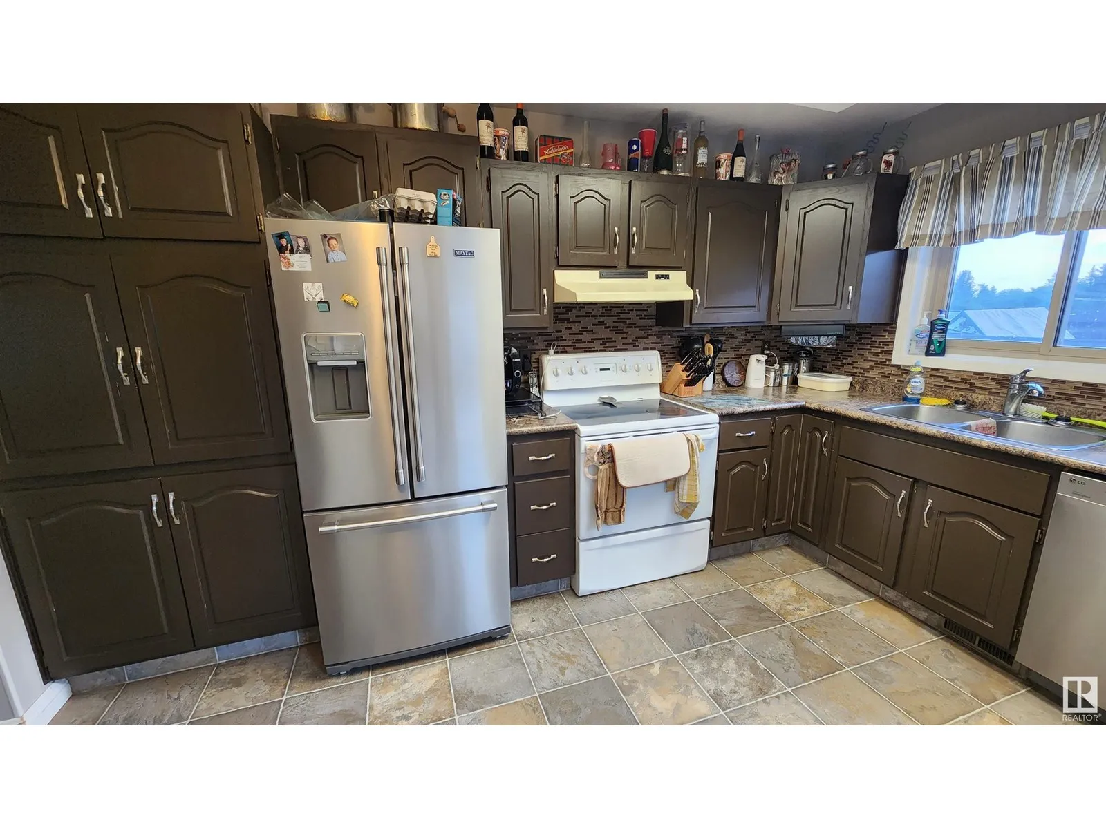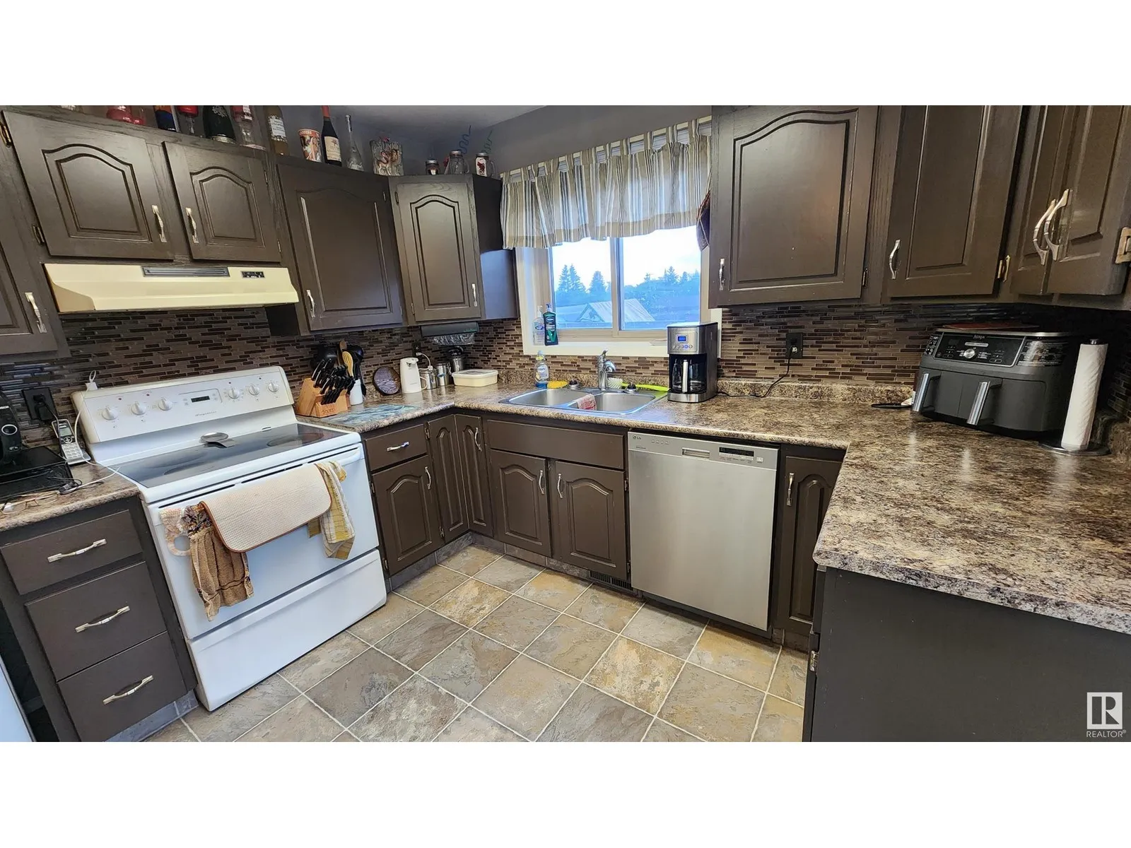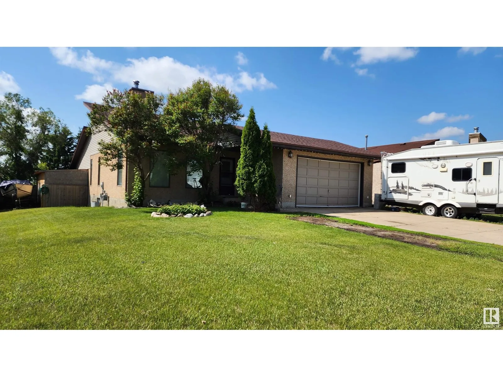 This spacious and modern 1432 sq.ft. home, built in 1985, is located on a large corner lot in a great family neighborhood within walking distance of schools and recreation facilities. With 3 large bedrooms and 2 full bathrooms, this home offers ample space throughout. The main living area has been renovated to create a beautiful large open-concept design featuring a large dining area and a sunken living room with a newer wood stove (WETT certified). The kitchen features glass tile back splash, newer fridge, pantry with pull-out drawers and garden doors to the very private back deck. The large master bedroom features a walk-in closet and 4 pc ensuite. Entertain your friends in the modern family room with bar and store all your items in the large cemented crawl space. Upgrades include shingles & fridge (2018), HWHeater (2023) & fresh paint on main (2023). To complete this package, you will find a double attached garage with secure entry to the home and a fenced back yard. Very AFFORDABLE FAMILY HOME! (id:27476)