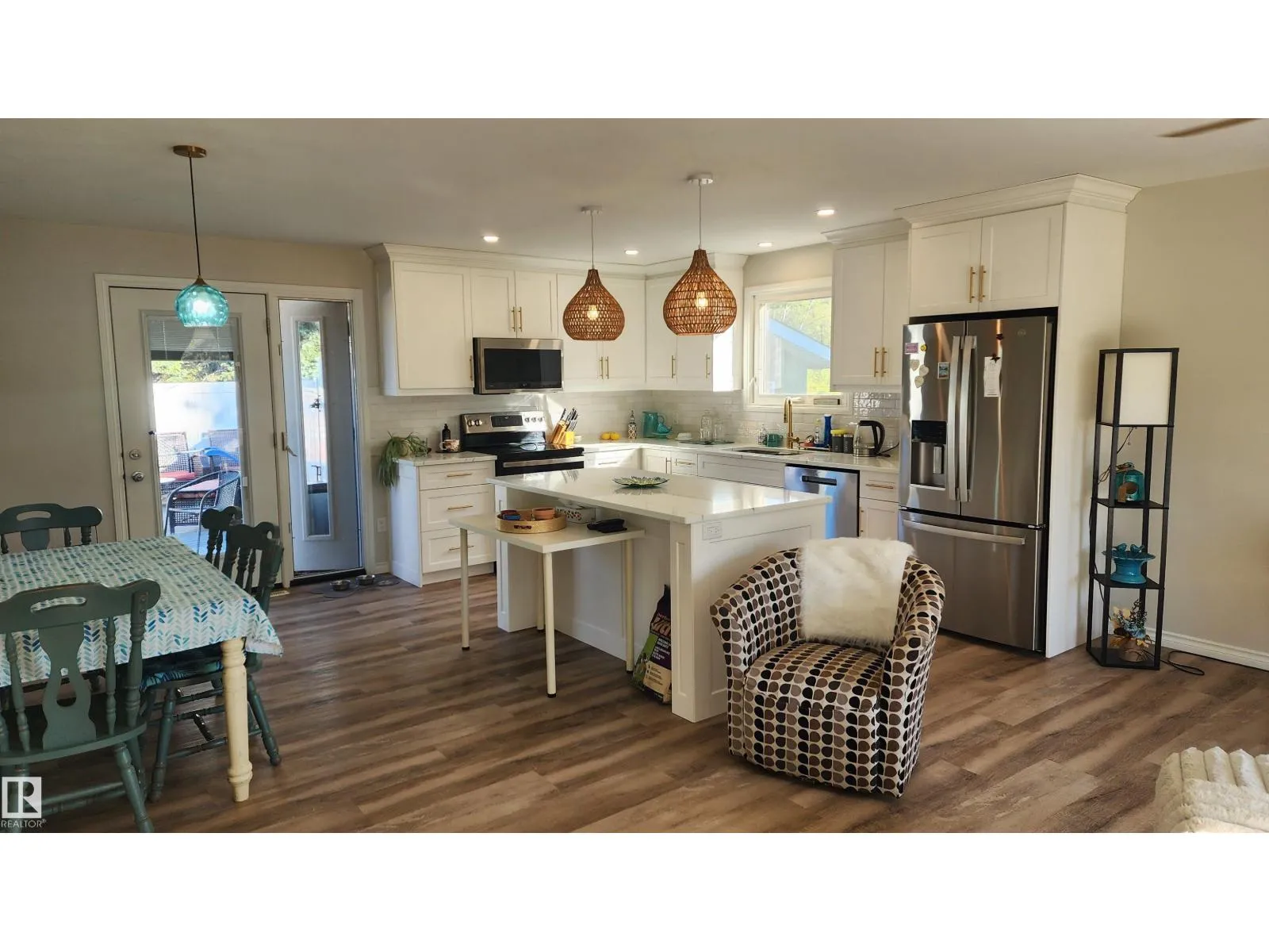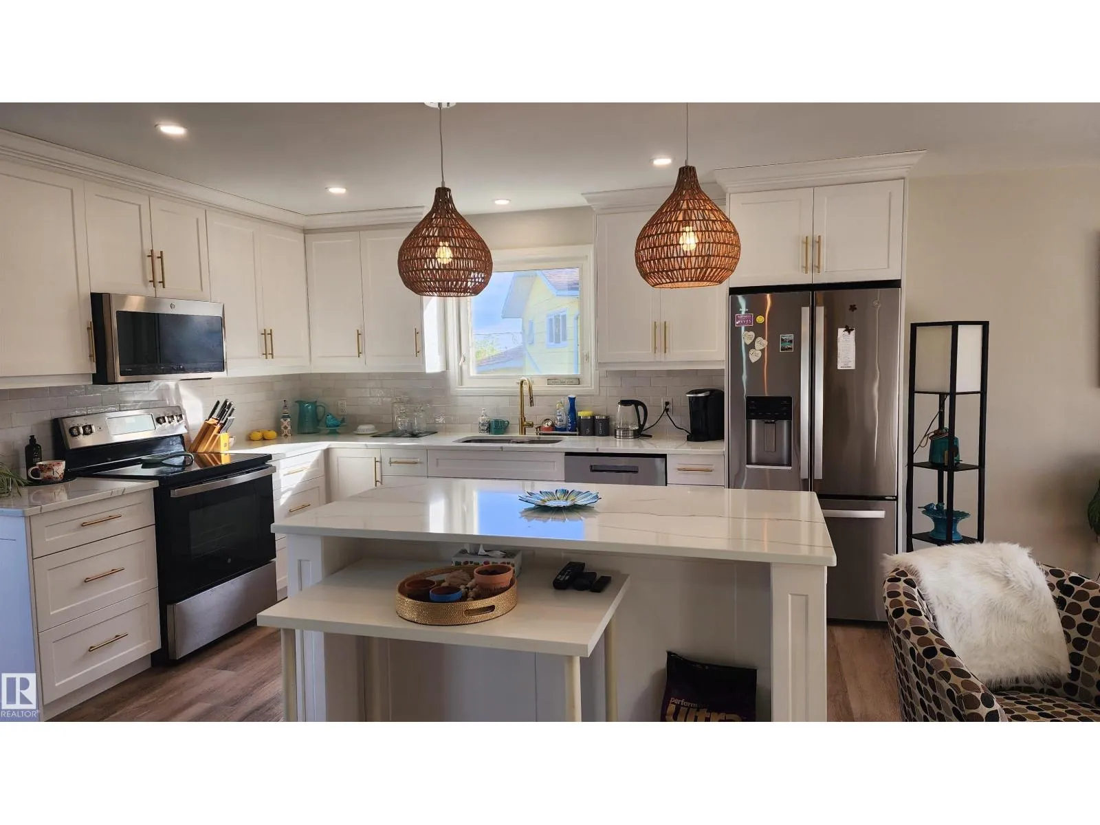 BEAUTIFULLY RENOVATED main floor living area which boasts a new OPEN CONCEPT DESIGN with custom Kitchen Cabinetry, Island, Newer Appliances including stove with built-in air fryer, vinyl plank flooring and new paint throughout! This 1975 bungalow features 1135 sq.ft with a total of 5 bedrooms and 2.5 baths, incl. 2 piece ensuite. The basement is finished with large family room (with piping for a potential wood stove), 2 bedrooms, 4 pc bath with jacuzzi & utility room incl. central vac. Main floor laundry is in 2nd bedroom for convenience, but can be moved downstairs. This home features newer vinyl windows, exterior doors, hardie board siding, shingles & private deck with vinyl railing-a great extension of the home to enjoy & keep pets and children safe. Included is a single heated garage which is a perfect man-cave. This home sits on a well-landscaped lot with mature trees & backs onto a green space-very prestige area. Close to schools & rec facilities. A perfect combination! 2025 Taxes: $3,207.73 (id:27476)