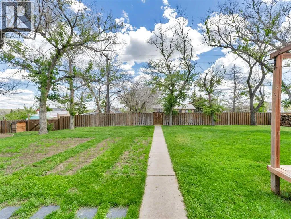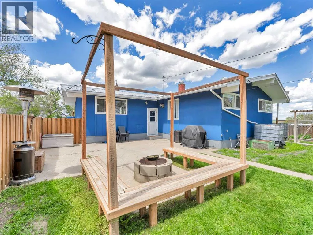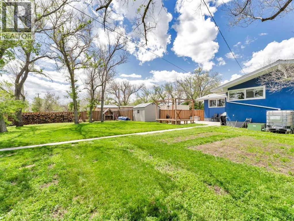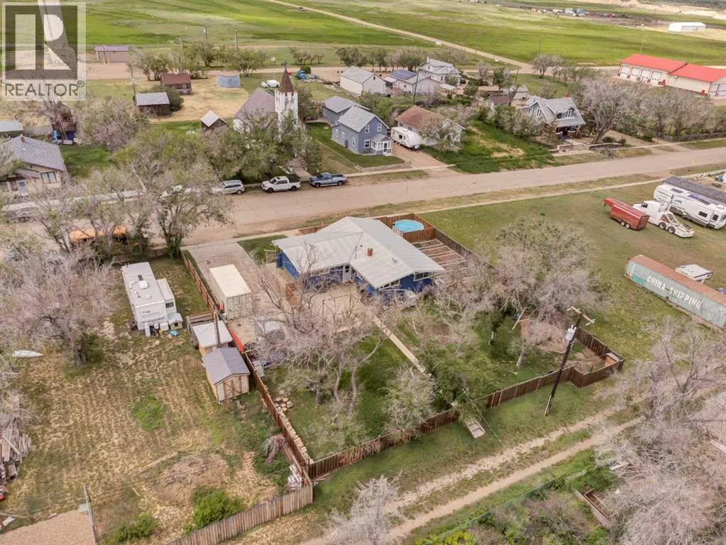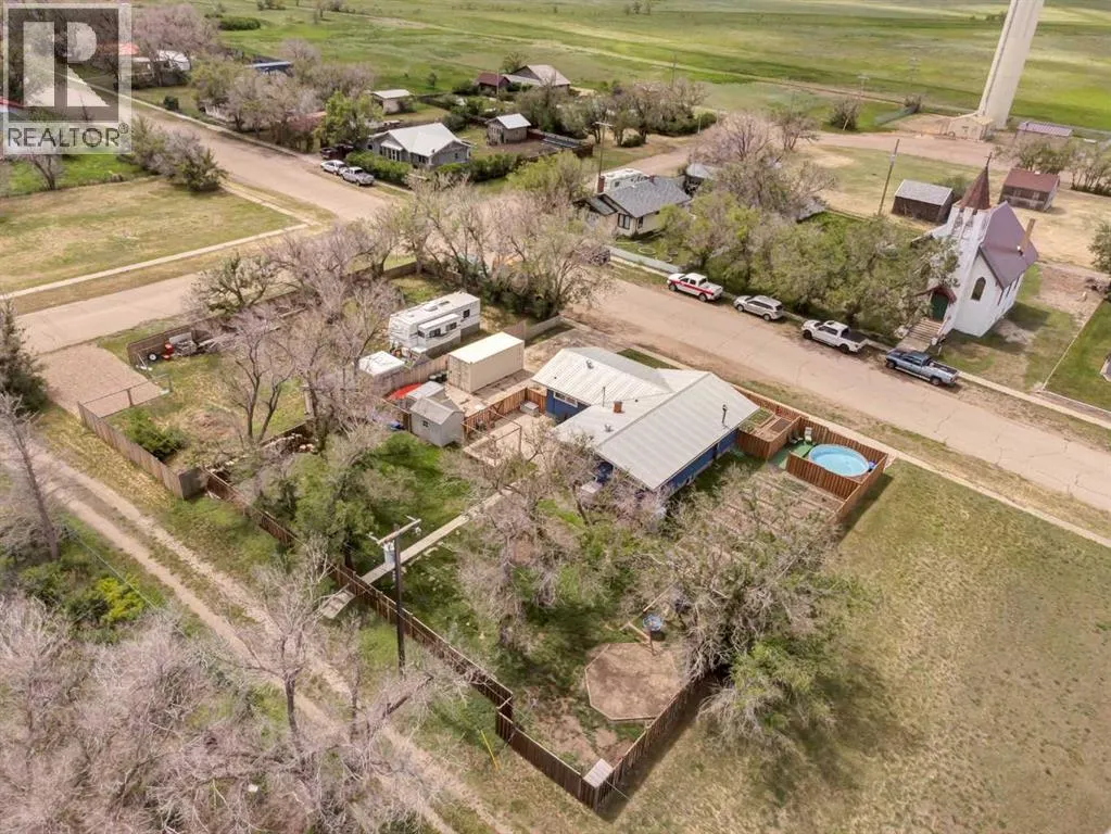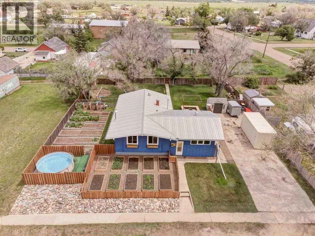 Welcome to 436 3 Street W in the adorable village of Empress, Alberta, situated just 40 minutes from Oyen. This well appointed bungalow, with a total of over 2000 sq ft living space, is situated on a massive lot which is already landscaped/treed and has a large gate accessed from the back alley. The yard is utilized for gardening and entertaining alike, with multi areas including a fire-pit with built in seating, cement pad with gas line for BBQ, play area with swings and protected pool area. You need room for parking? No sweat, the parking pad adjacent to the house can host a family of vehicles, bikes and even an RV. Let's talk about the inside of the house...5 bedrooms (3 on main floor), 3 baths, huge living room on the main floor with vaulted and beamed ceilings lending to that mid century modern feel. Adjacent to the living room is the large kitchen and dining area, both having large windows to keep things bright! Toward the back of the house you will find 2 bedrooms and a 4 pc bathroom and finally the master bedroom with its own 2 pc ensuite. Head downstairs to find a cozy family room with workout/study area that includes a wood stove to keep everyone cozy during the fall and winter. A very large storage room will accommodate all the extras, 2 well sized bedrooms with new vinyl windows, a 2 pc bath and large laundry area. This is a fabulous home for the growing family (with a Splash Park just steps away) or spacious home for the couple who wants a piece of land but desire the amenities of town life. Empress has a cute gift shop/groceteria, hairdresser, a mechanic, gas and towing services, a diner and homecare services as well as a driving range located 1 block from this home. For the days of greater need, Oyen is a 40 min drive and includes a hospital with emergency department, hardware supplies, and a high school. Acadia Valley is a mere 25 minutes away and is where you will send your kiddos K- grade 9. Don't miss this great opportunity to live in a welcom ing community...call your favourite agent to book a showing today! (id:27476)