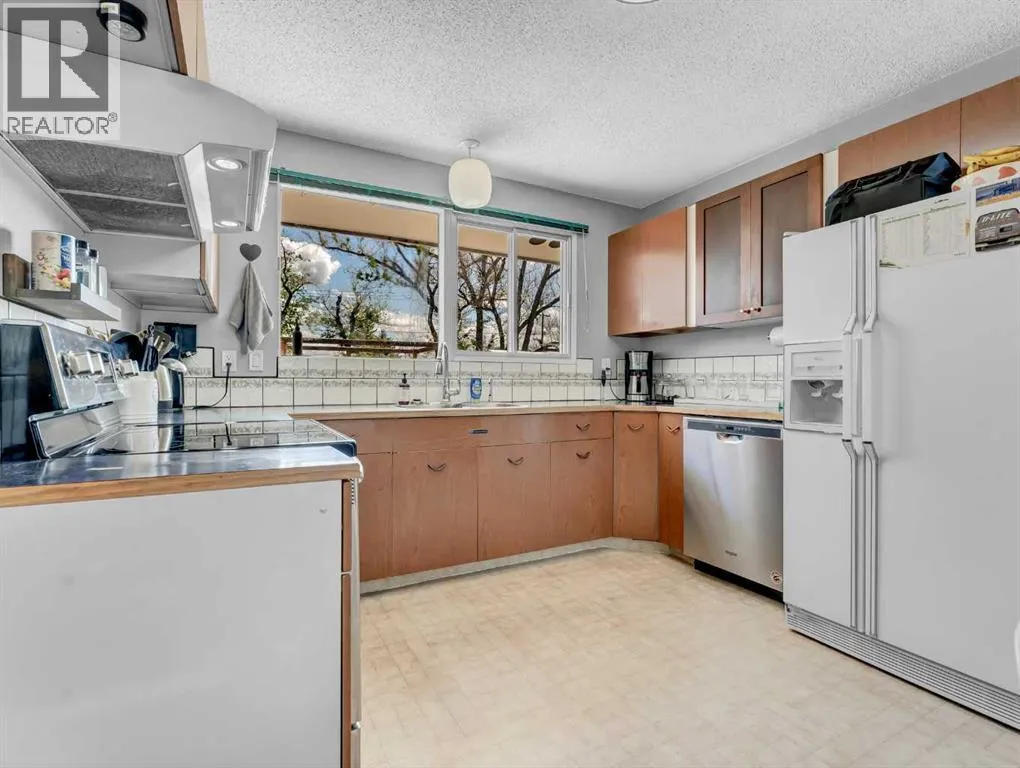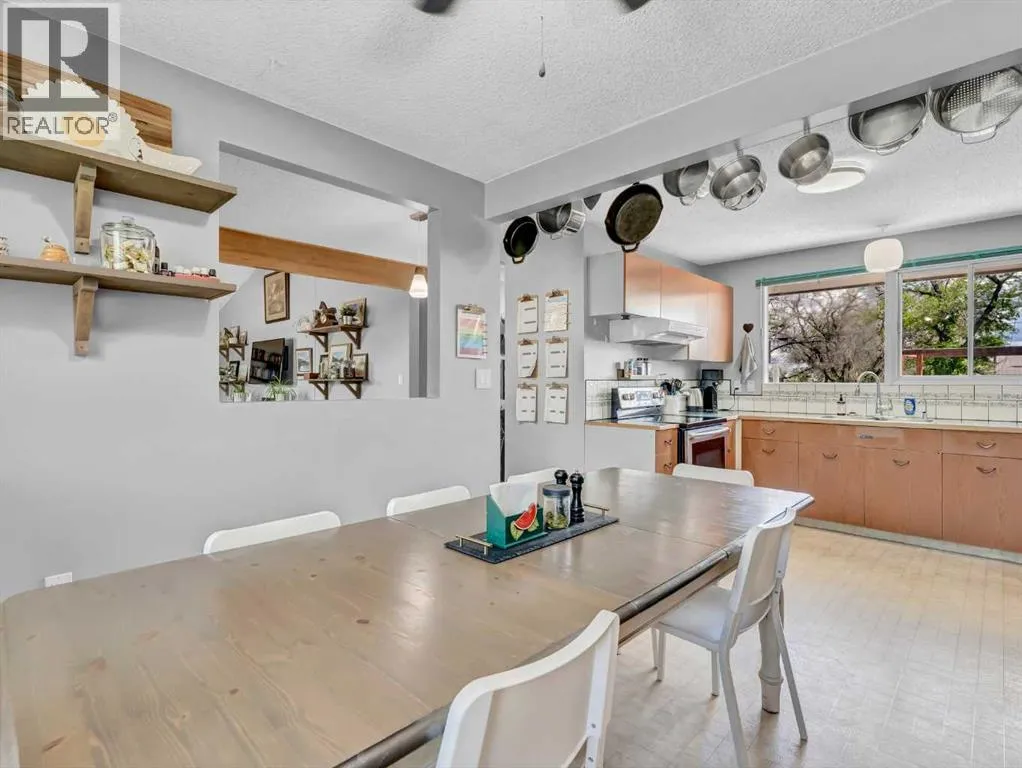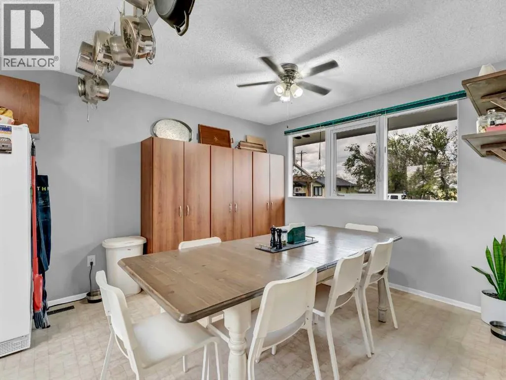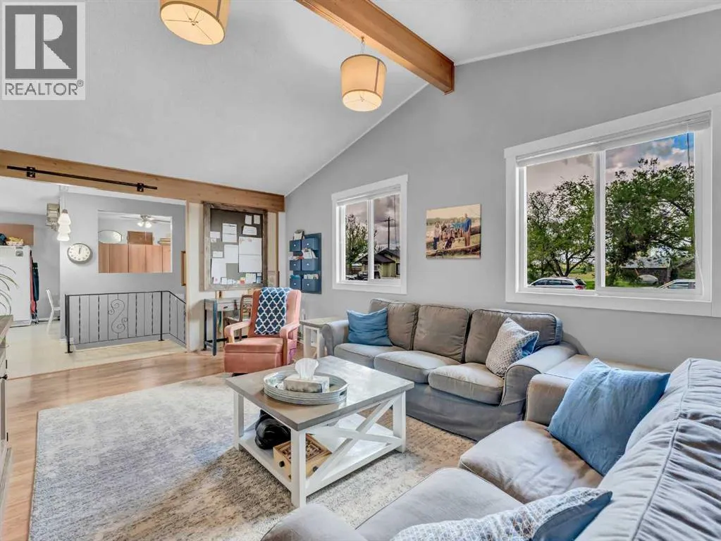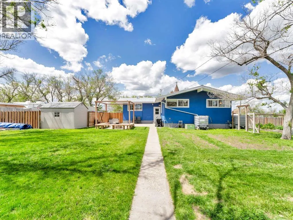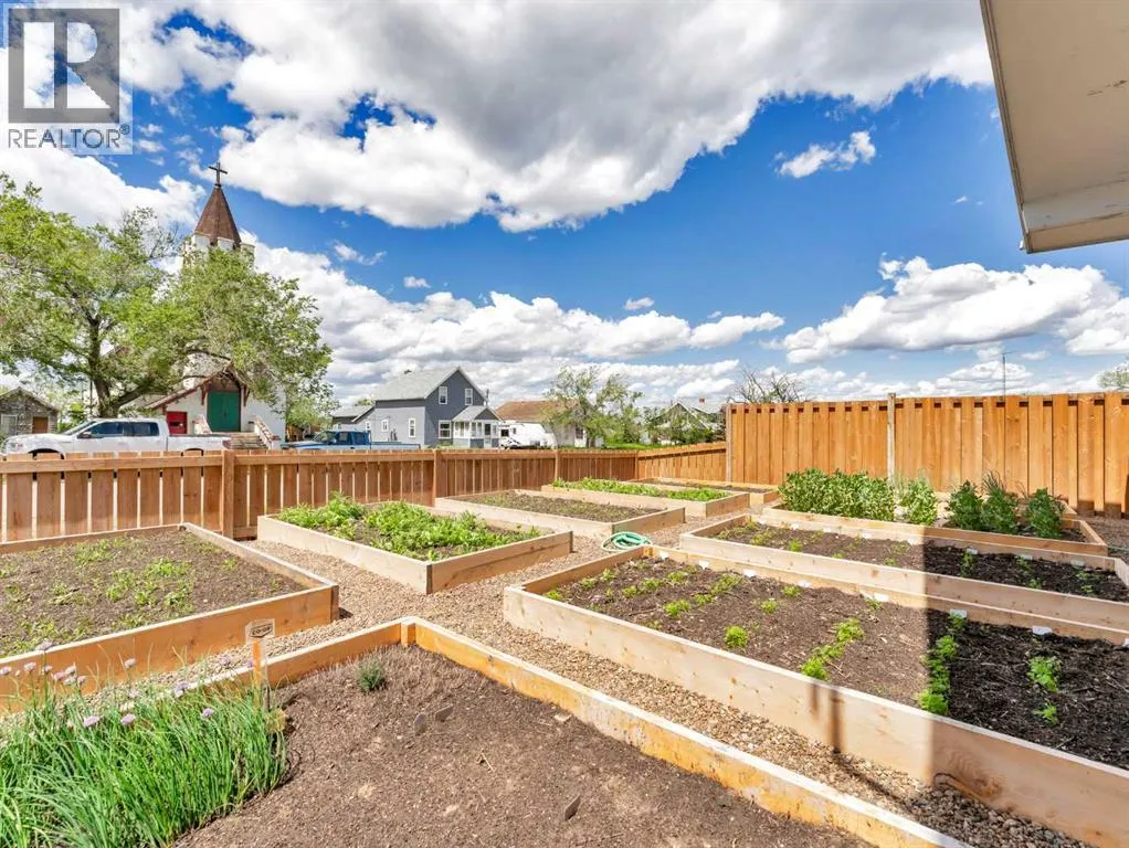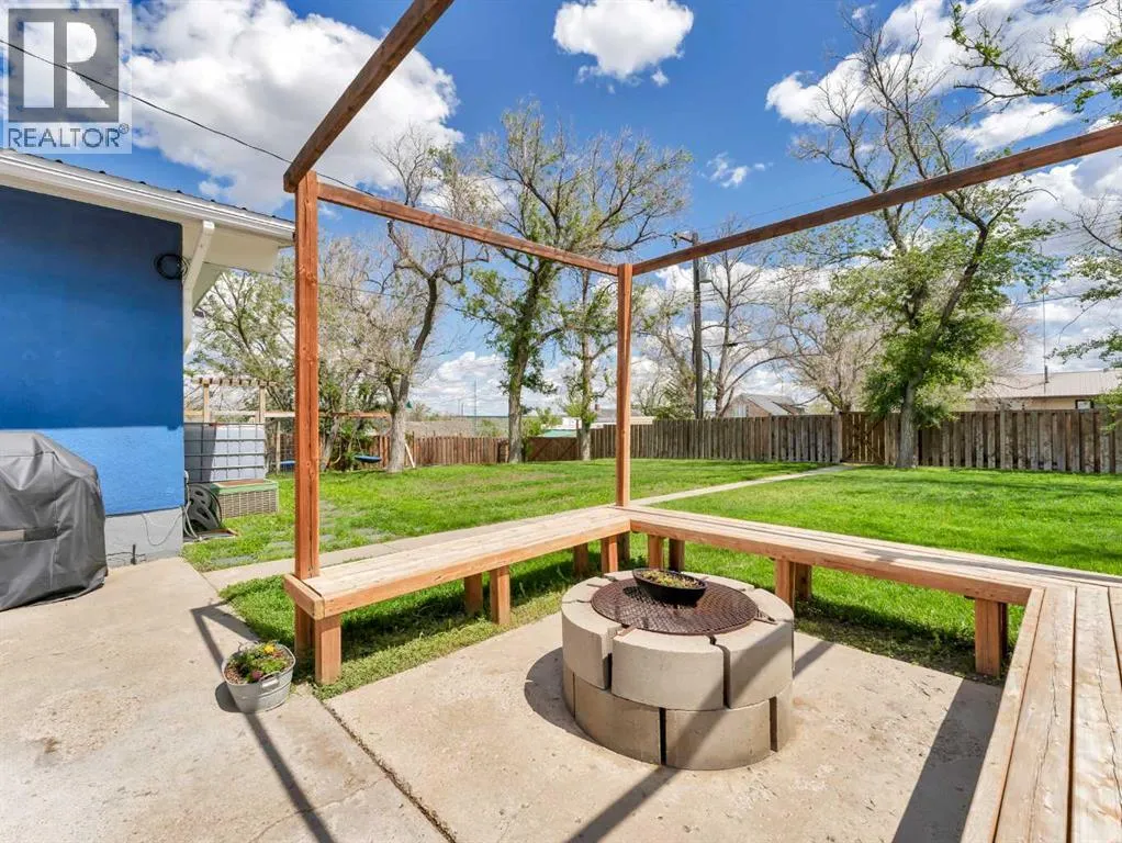 Welcome to 436 3 Street W in the adorable village of Empress, Alberta, situated just 40 minutes from Oyen. This well appointed bungalow, with a total of over 2000 sq ft living space, is situated on a massive lot which is already landscaped/treed and has a large gate accessed from the back alley. The yard is utilized for gardening and entertaining alike, with multi areas including a fire-pit with built in seating, cement pad with gas line for BBQ, play area with swings and protected pool area. You need room for parking? No sweat, the parking pad adjacent to the house can host a family of vehicles, bikes and even an RV. Let's talk about the inside of the house...5 bedrooms (3 on main floor), 3 baths, huge living room on the main floor with vaulted and beamed ceilings lending to that mid century modern feel. Adjacent to the living room is the large kitchen and dining area, both having large windows to keep things bright! Toward the back of the house you will find 2 bedrooms and a 4 pc bathroom and finally the master bedroom with its own 2 pc ensuite. Head downstairs to find a cozy family room with workout/study area that includes a wood stove to keep everyone cozy during the fall and winter. A very large storage room will accommodate all the extras, 2 well sized bedrooms with new vinyl windows, a 2 pc bath and large laundry area. This is a fabulous home for the growing family (with a Splash Park just steps away) or spacious home for the couple who wants a piece of land but desire the amenities of town life. Empress has a cute gift shop/groceteria, hairdresser, a mechanic, gas and towing services, a diner and homecare services as well as a driving range located 1 block from this home. For the days of greater need, Oyen is a 40 min drive and includes a hospital with emergency department, hardware supplies, and a high school. Acadia Valley is a mere 25 minutes away and is where you will send your kiddos K- grade 9. Don't miss this great opportunity to live in a welcom ing community...call your favourite agent to book a showing today! (id:27476)