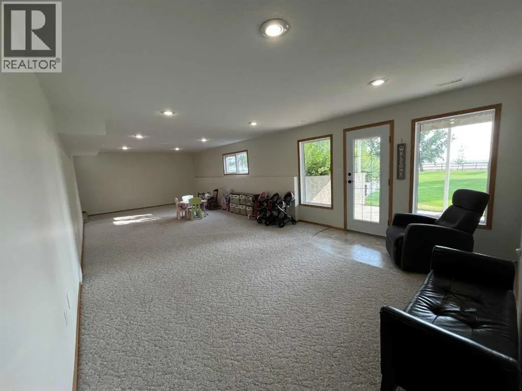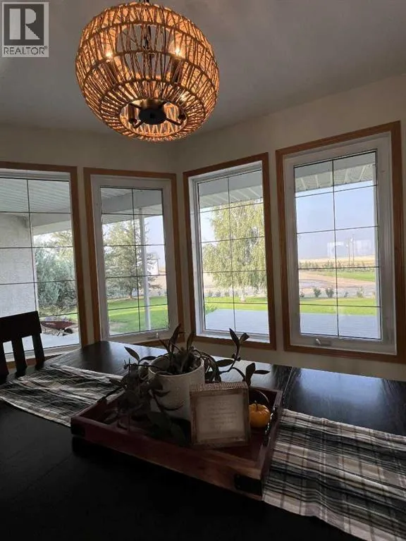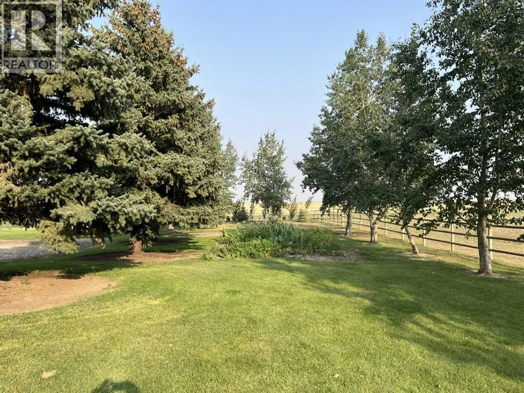 So here is an amazing acreage that has all the bells and whistles, and is truly a "Move In" ready home. Sitting on 7.07 acres, the home is 1633 SQFt, 4 bed, 4 bath, with tons of natural light and open floorplan that includes a large kitchen, island, dining room, and a beautiful deck off the kitchen to enjoy those beautiful sunsets. Living room boasts a fireplace for the fall evenings coming soon, main floor laundry, and another two bedrooms. The basement has a huge rec room complete with a walk-out basement to enjoy ! So many upgrades to talk about with this one. There are large windows downstairs so you don't have that "basement" feel to it, another two large bedrooms, large bathroom, cold storage and another large storage room. Attached 25x25 garage with radiant heat that's a year old, AC, UG sprinklers , 12x16 metal Garden shed with a roll up door and a concrete pad, a treed park-like yard that many dream of. Everything has been so well taken care of, including the newly built 40x60 shop. Concrete floor with a drain, plumbed and ready to go for a bathroom in there if you would want, gas line, set up for an up-top exhaust fan, and 20x14 door. The yard, the home, the views, the shop and the animals... It's all here for you ~ (id:27476)