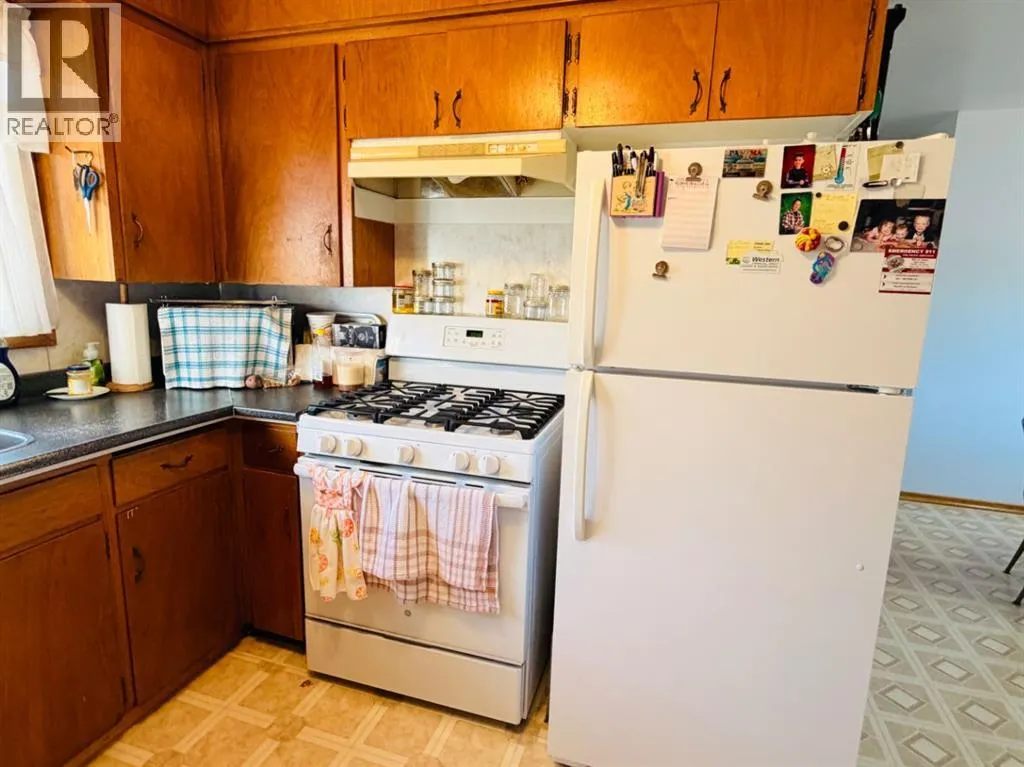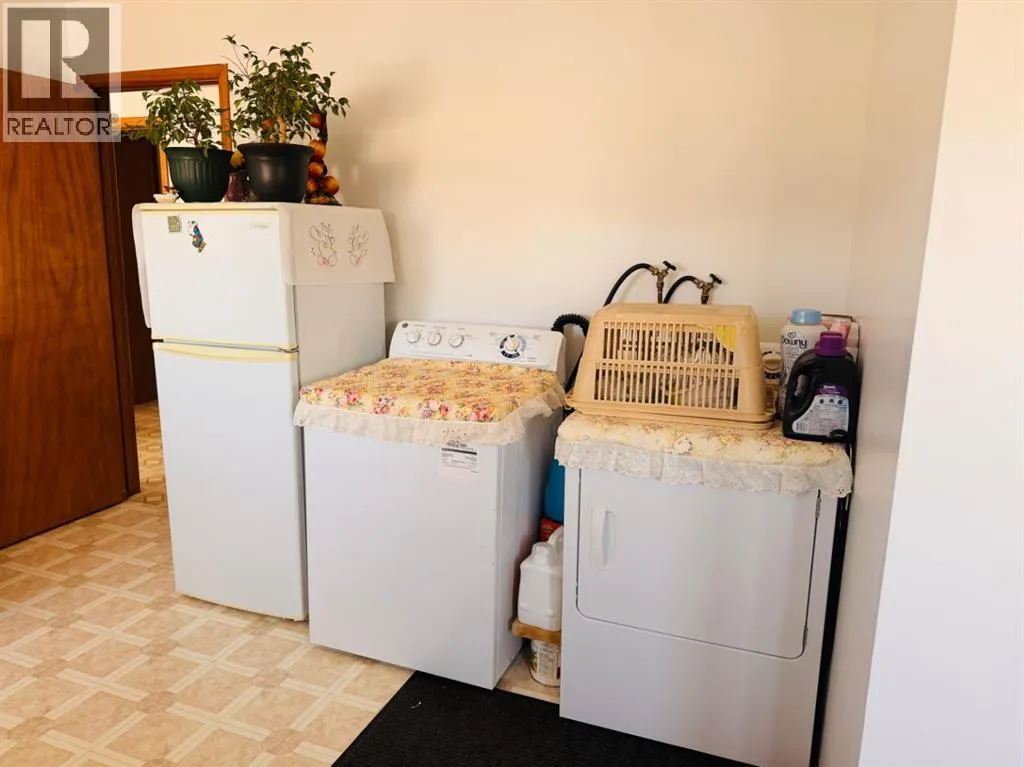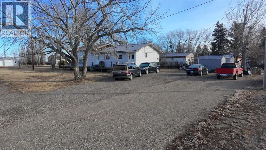 Welcome to the charming hamlet of Enchant Alberta. Located between Lomond and Vauxhall, it offers a school, library, bank, restaurant, camp ground and a golf course to name just a few. Here you'll find a bungalow with over 1,500 sq ft and a full basement, room for the whole family! Enter into a large foyer with laundry, room for freezers and a conveniently placed 2pc bathroom. From there you'll head into the kitchen passing a bedroom and 4pc bathroom. The dining and kitchen are open to each other making dinner time more enjoyable. Relax in the expansive living room that features A/C to keep you cool in the summer. Off the living room are 3 more bedrooms and the basement has a large 4th one ready. Complete the rest of the basement to your liking by adding in more bedrooms are carpeting the large open family room with 2pc bathroom started for you. Enjoy the sunsets on the front deck that runs the whole length of the home with no neighbour to the west of this corner lot. A metal roof has been installed, a brand new water tank as well and the furnaces have recently been checked and approved. If you're looking for a quiet place to raise a family, look no further! (id:27476)