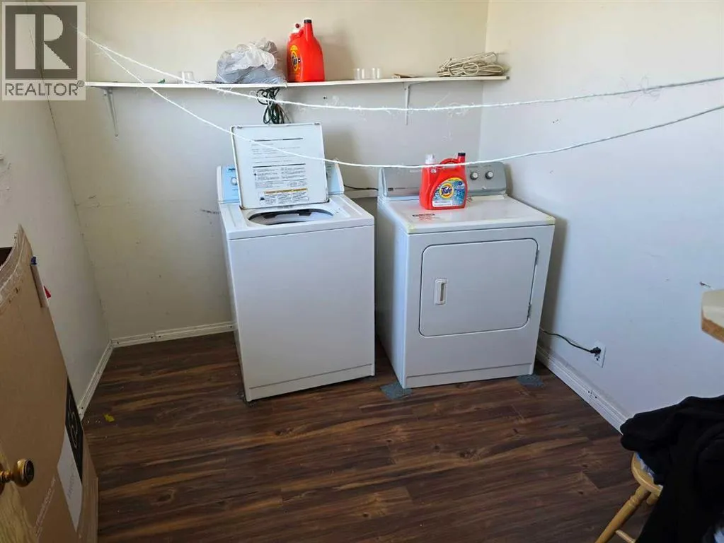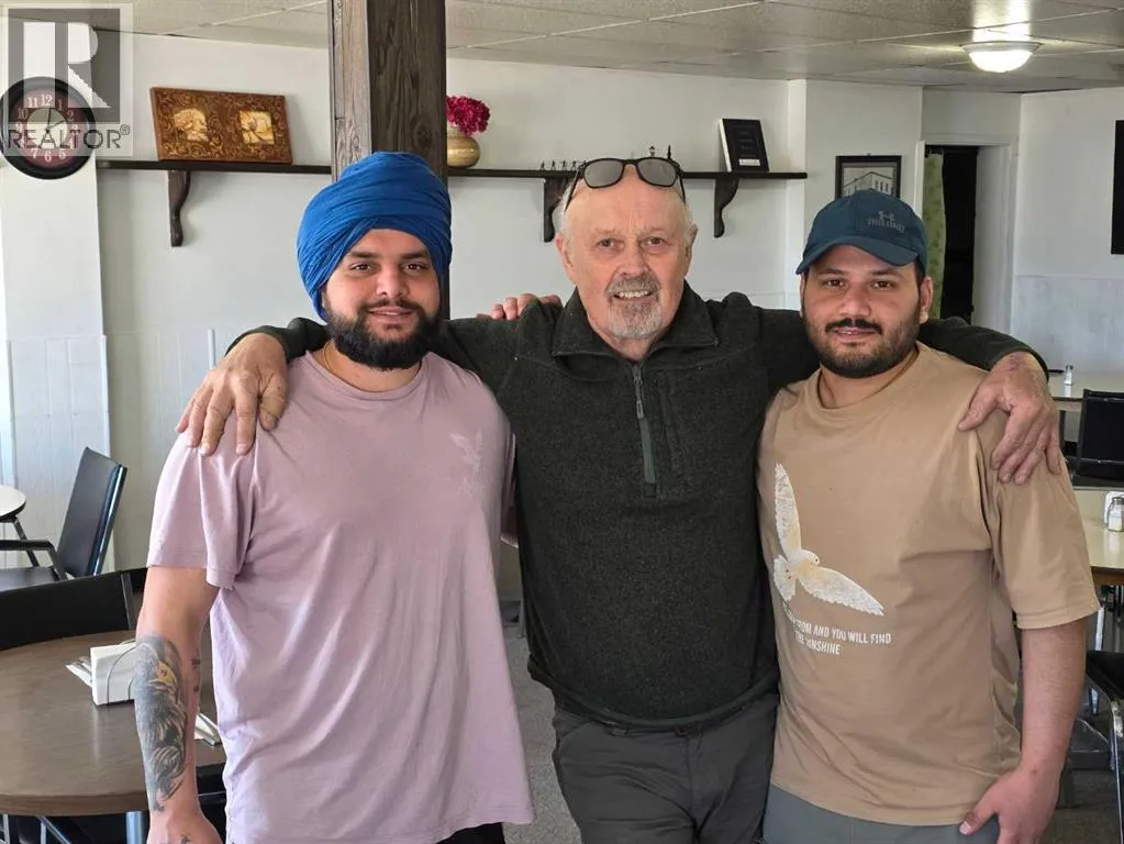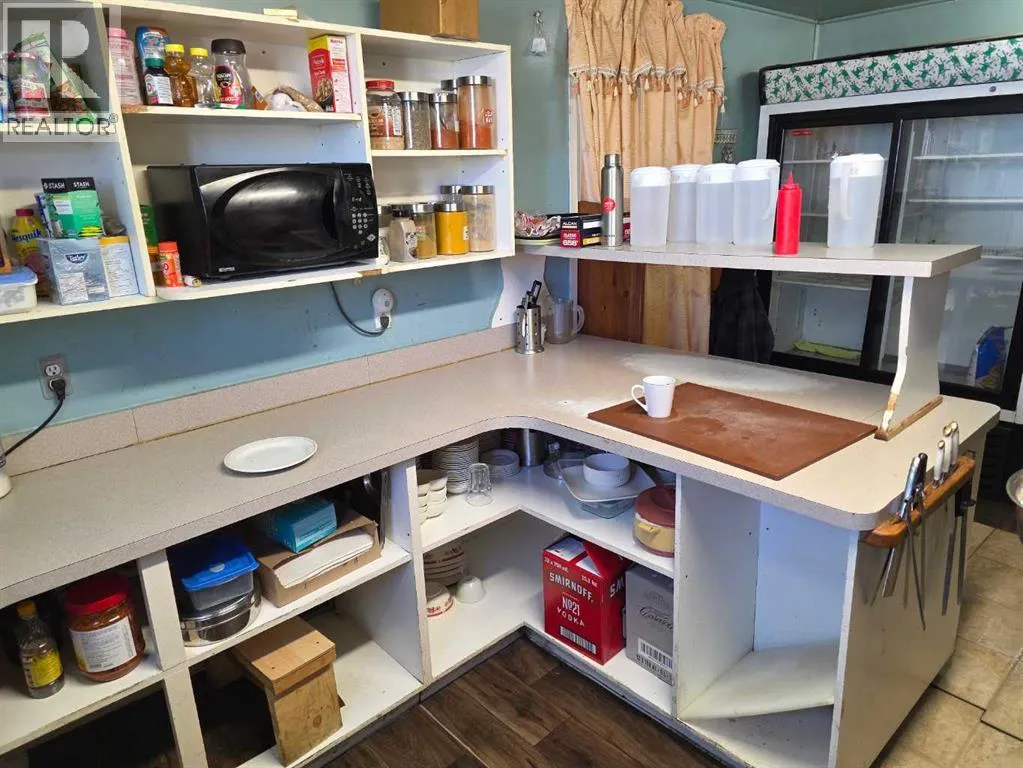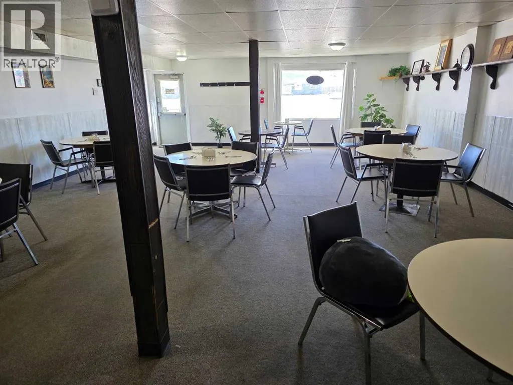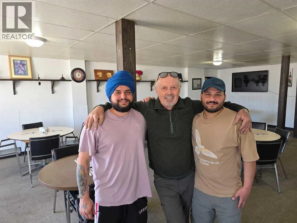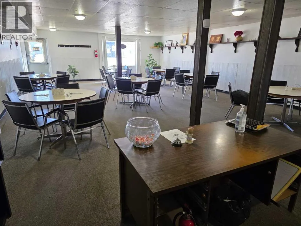 Commercial business opportunity located in the hamlet of Enchant, AB. Currently and previously used as a restaurant, this property has a large dining area and commercial kitchen on the main level with a bar room addition and lots of storage. The upper level as living quarters with 4 large bedrooms, laundry, kitchen, dining and living rooms. A large double car garage and 2 sheds are all on this property that consists of 3 lots in total. (id:27476)