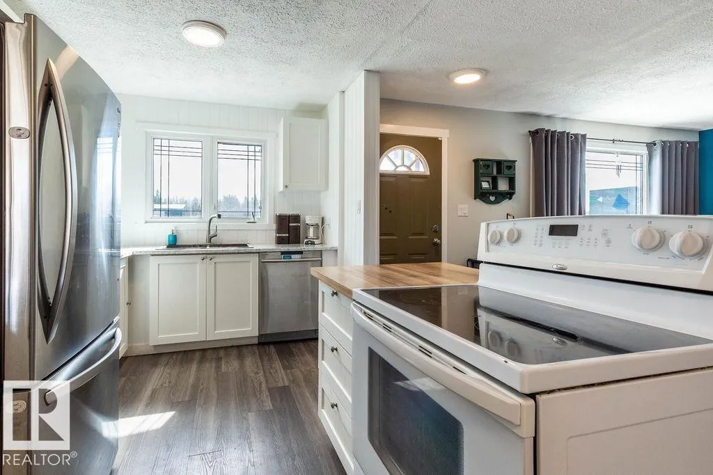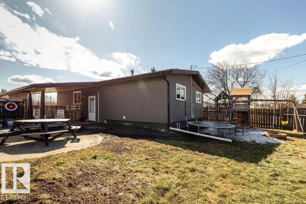 Here we have a bright open concept 4 bedroom family home with double carport. The kitchen and dining area are open with bright white cupboards. The living room has a large window which lets a lot of natural light in. Also upstairs, there's the primary bedroom, 2 more bedrooms and the main 4pc bathroom with a jetted tub. Downstairs there's another bedroom, laundry, rec room, storage room and a 3pc bathroom. As you go outside, you have a front south facing deck to enjoy the sun and your morning coffee on. The attached carport has a cement pad, there's RV parking, a privacy fenced back yard and a large firepit area. This charming home is conveniently located right in Evansburg, across from the school, close to parks, shopping, and just minutes from the Pembina River Provincial Park. (id:27476)