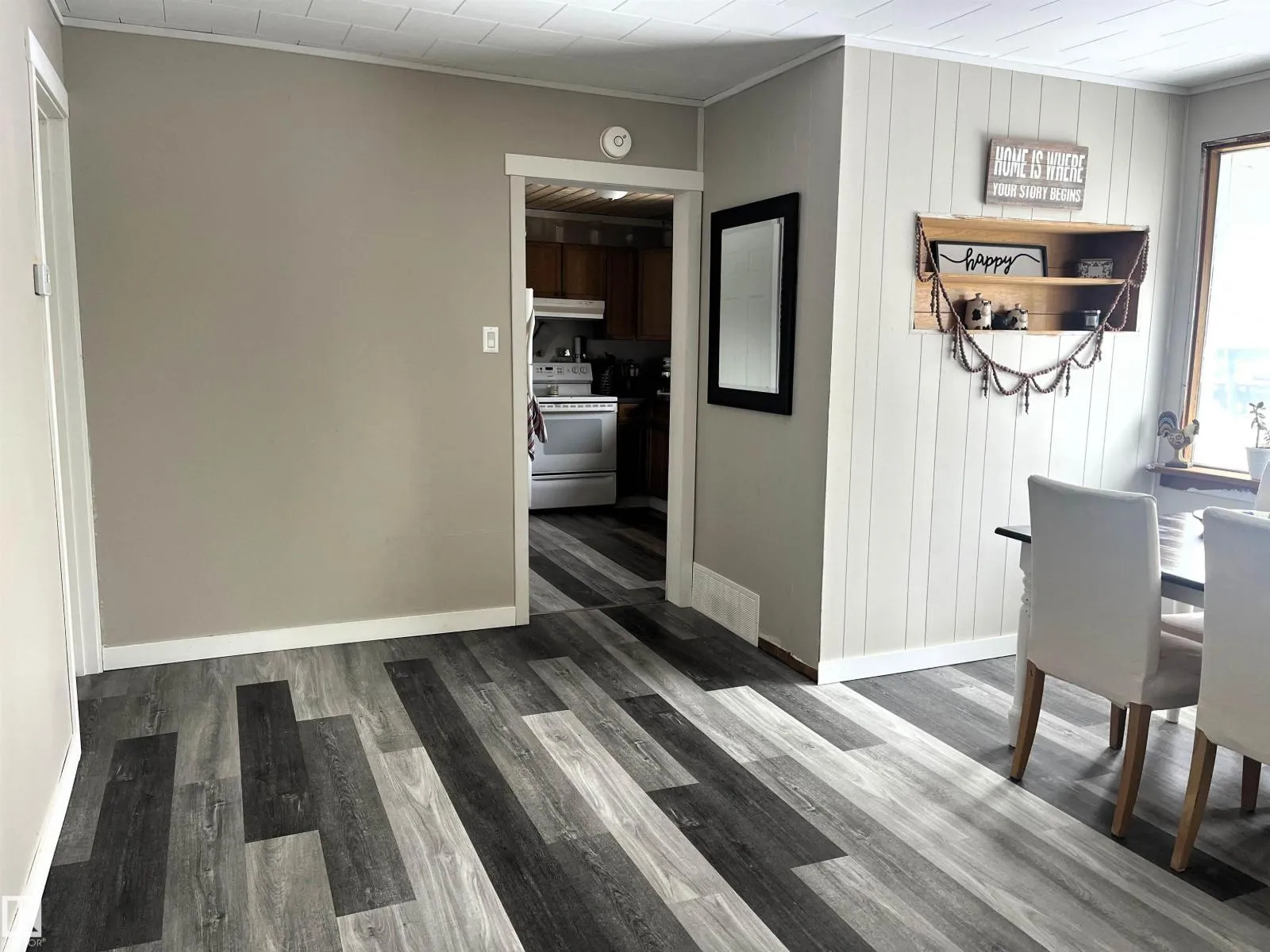 This charming home is conveniently located right in a quiet residential neighborhood in Evansburg, close to schools, parks, shopping, and just minutes from the Pembina River Provincial Park. The home has 2 bedrooms (possibly 3), a 4pc bathroom with laundry and has been upgraded with a new front porch, new entry doors, new flooring throughout and much more. It has an open kitchen/dining area and a bright living room. Property also has a single garage with carport and a lovely treed yard! (id:27476)