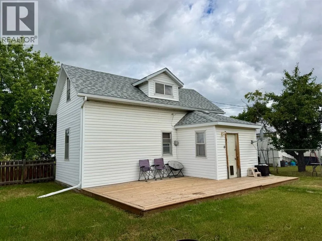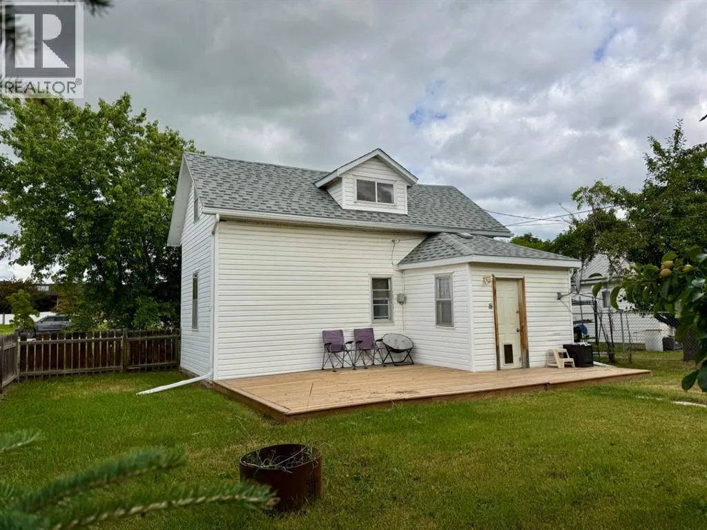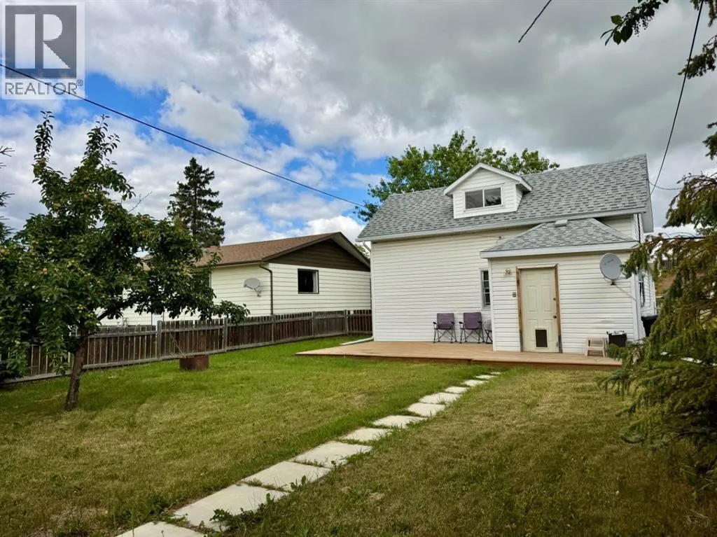 Charming and Cozy Home Across from the Elementary School!Welcome to this delightful 1.5-storey home located in a prime spot directly across from the elementary school in Fairview. Offering 3 bedrooms and 1 bathroom, this home is perfect for first-time buyers, young families, or those looking to downsize. Two of the bedrooms are tucked away upstairs, while the third bedroom and the full bathroom are conveniently located on the main floor. The spacious kitchen flows seamlessly into a large, inviting living roomâideal for hosting friends and family. Outside, enjoy a generous, fully fenced backyard with an apple tree for your picking, and ample space for kids, pets, or summer campfires. With both street parking and rear alley access, youâll have plenty of room for vehicles and toys. Donât miss this well-located gem with endless potential! Have peace of mind knowing HWT was replaced in 2020, roof was replaced in 2022 and a brand new deck in 2023. (id:27476)