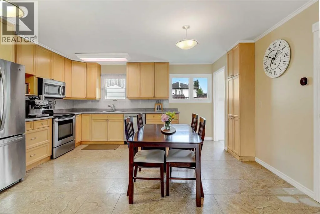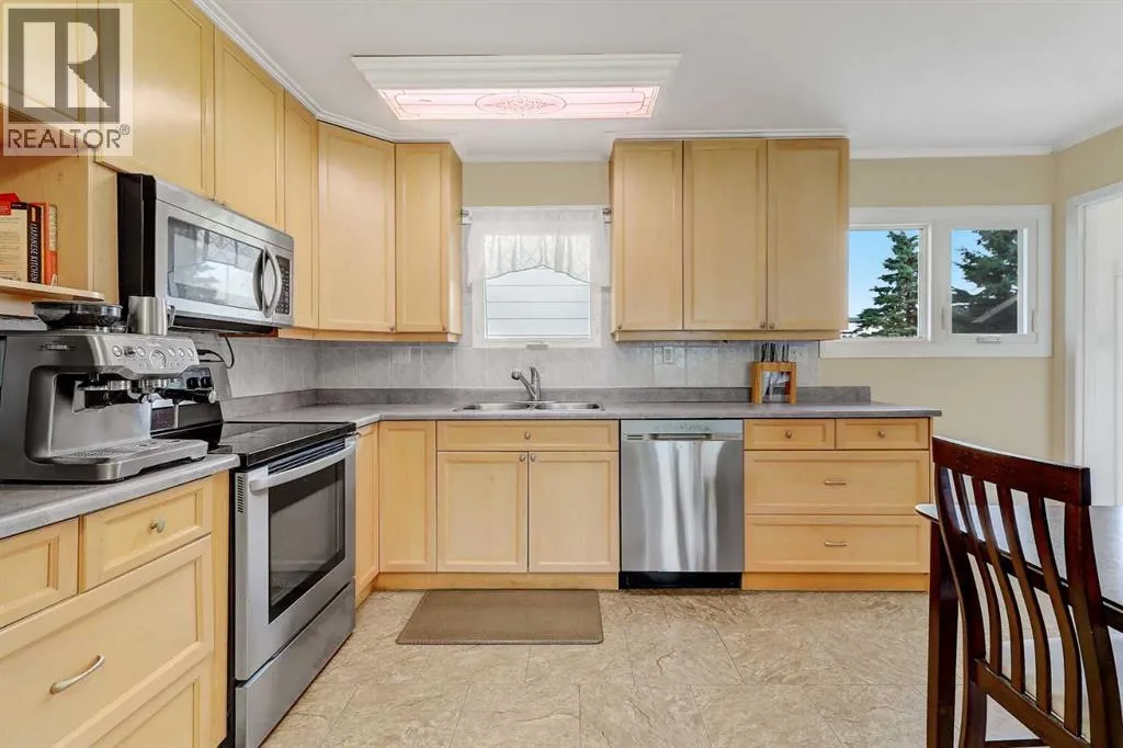 This charming corner-lot bungalow is full of character and ready to welcome its new owners! Step inside to a spacious foyer that opens into a bright, kitchen featuring maple cabinets, oversize pantry, and stainless steel appliances. The open layout makes it the perfect space for gathering with family and friends. The main floor has been updated with beautiful sculpted hardwood throughout the living room, hallway, bedrooms, and office/dining space, along with built-in features like an entertainment center for added function and style. Youâll also appreciate the top-of-the-line new windows on the main level, additional insulation in the atticâenergy-efficient and ready to keep you cozy through the winter. Major upgrades such as the furnace, shingles, and hot water tank add even more value and peace of mind. The fully finished basement offers a large family/rec room, two additional bedrooms, another full bathroom, and plenty of storage. Outside, the large landscaped yard is fenced and includes a block patio, and play center, shed, and a single-car garage. Whether youâre searching for a family home or a solid investment property, this one is a must-see! Book your showing today. (id:27476)