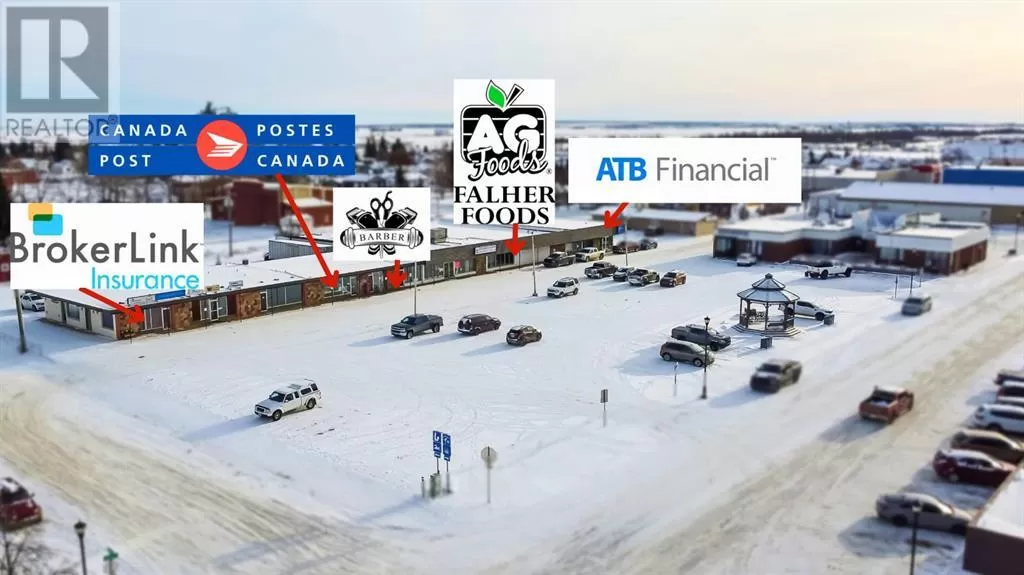 Exceptional Multi-Tenant Commercial Investment located in Falher, AB. This is an outstanding opportunity to acquire a well-established commercial property in the heart of Falher. This ±21,506 sq. ft. multi-tenant building is prominently located on Main Street, offering excellent visibility, steady foot traffic, and convenient access for tenants and customers. As a staple asset within the community, this property has a proven track record of stability and long-term occupancy, making it a low-risk, high-reward investment. The building is fully leased to a diverse mix of five long-term tenants, including ATB Financial, Falher Foods, Canada Post, a Barber, and BrokerLink. These well-established businesses contribute to the propertyâs reliability and long-term income security. The leases are structured as triple net agreements, ensuring minimal operational expenses for the owner while providing a stable 9.61% capitalization rate. This asset offers investors a consistent and predictable revenue stream. The property has been well maintained and features a large paved parking area, enhancing accessibility for both tenants and customers. Its prime Main Street location ensures high exposure, further strengthening tenant retention and long-term value appreciation. This is an exceptional opportunity to acquire a turnkey, income-generating commercial property with secure long-term revenue, minimal management responsibilities, and strong financial performance. This asset provides immediate and sustainable returns, whether as a portfolio addition or a stand-alone investment. Book your showing today! (id:27476)
