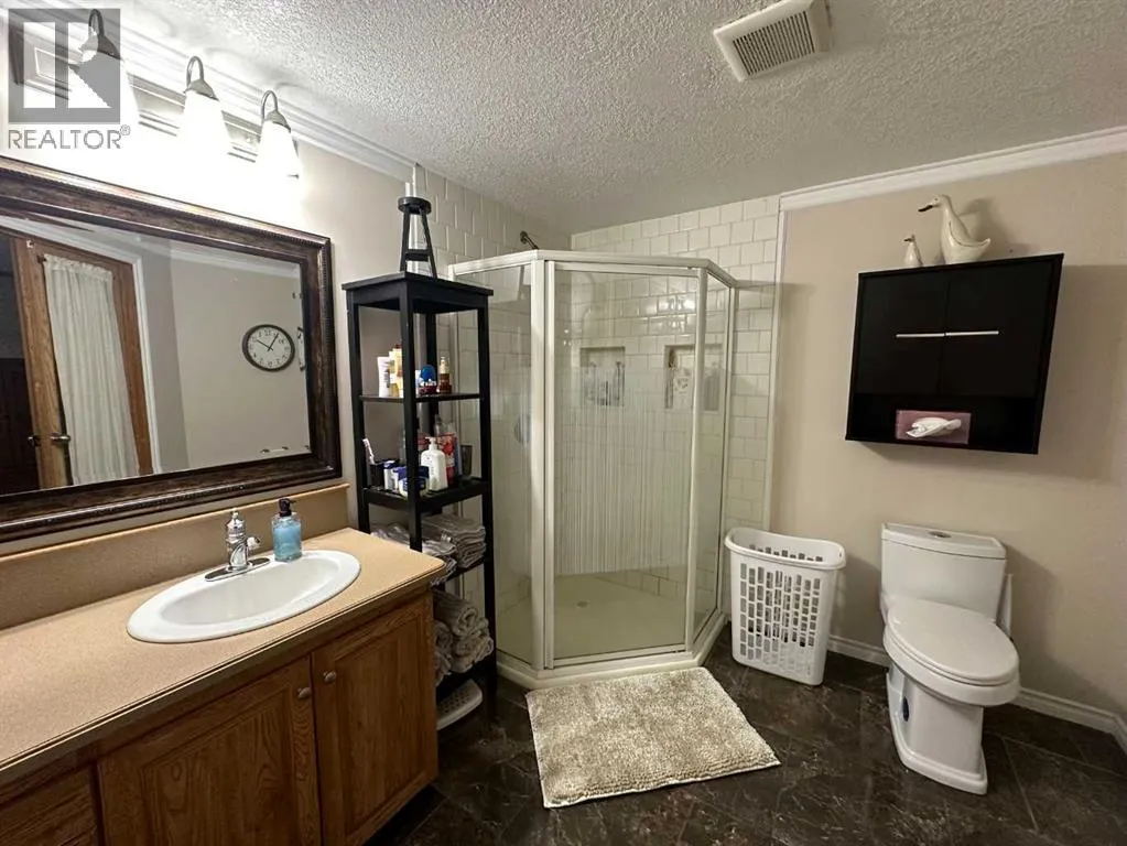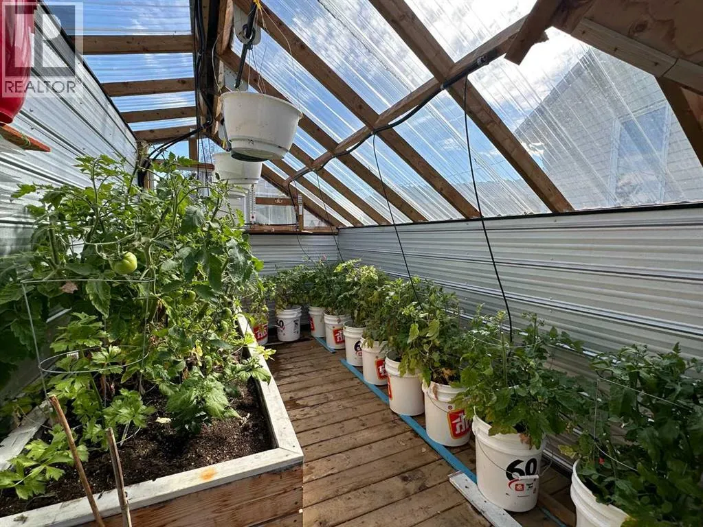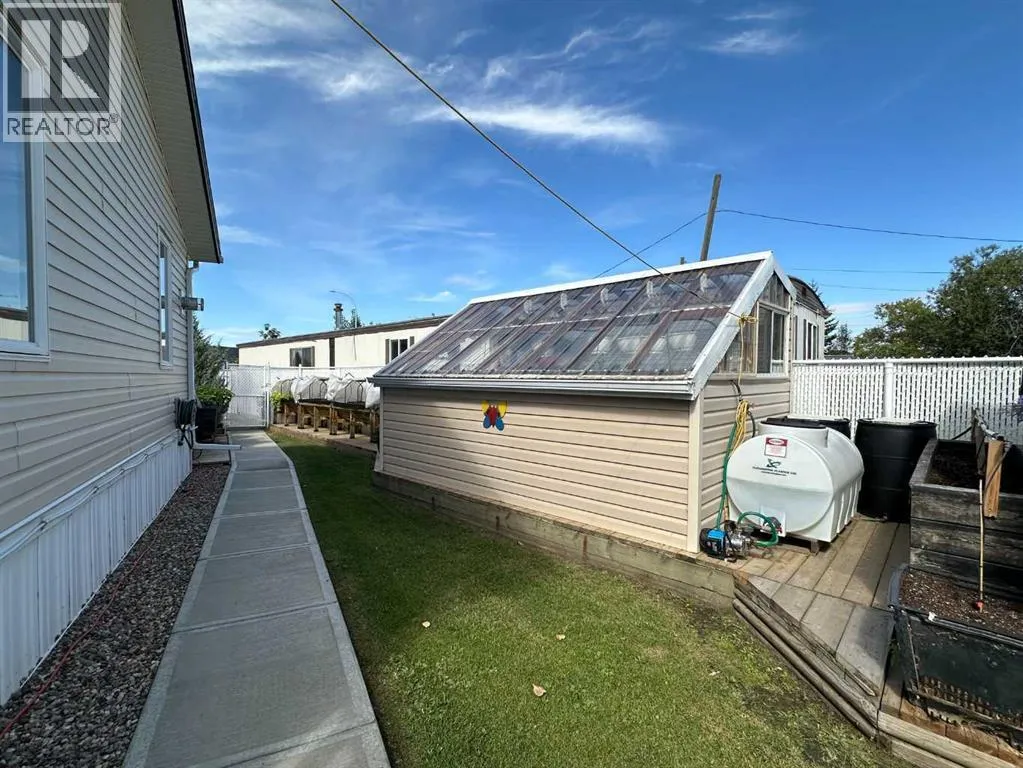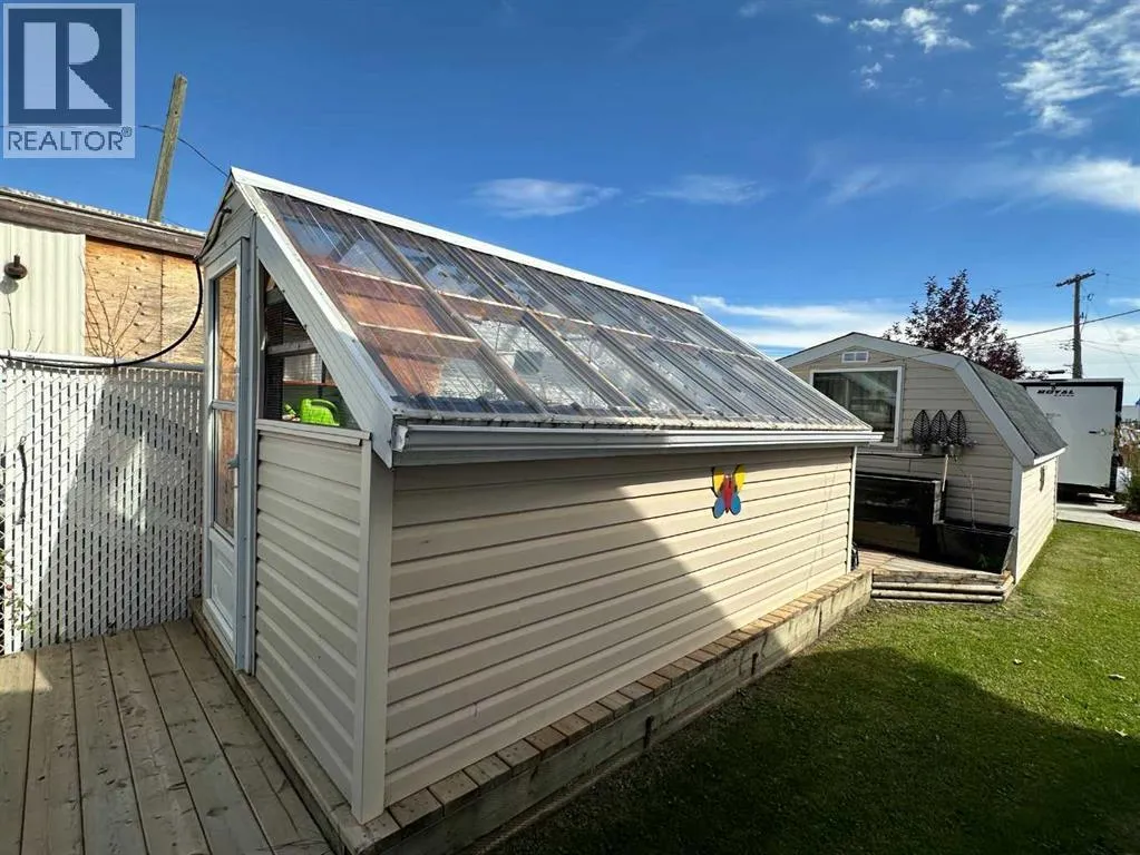 One level living on a large fully fenced pie shaped lot in the Town of Falher. No detail was overlooked when this property was set up. The beautiful yard is set up with sheds for storage (finished in tin on the interior), a productive greenhouse and newly built raised gardens. There is back alley access to the oversized double garage which is complete with 1/2 bath and washing machine. There is also a large generator tied into the house so if the power goes out all you need to do is flip a switch and power can be used as usual. As an added bonus there is detailed cement work which is aesthetically pleasing and also serves in reducing the amount of dirt brought inside. On the front there is a large deck accessed by stairs and a ramp for easy accessibility. Whether entering this home which boast over 2,000 square feet of living space from the front or the back you will immediately notice how spacious the entry is. It's set up with lots of closet space and a cozy gas stove for heat. There is an additional room just off the entrance which is currently used as a bedroom but is also set up with all the connections required for an indoor hot tub. When you enter the heart of the home you will find a nicely appointed kitchen (complete with large island, and pantry) which is open to the dining room and living room, great for entertaining! On the back side of the home you will find a spacious master bedroom with 3 piece ensuite bathroom. On the other end of the home there are two additional bedrooms with a 4 piece bathroom. If you have been looking for a well cared for home with a large garage and plenty of storage this may be the perfect place for you! 360 virtual tour now available in the media section, floor plans area available in the photos section! (id:27476)