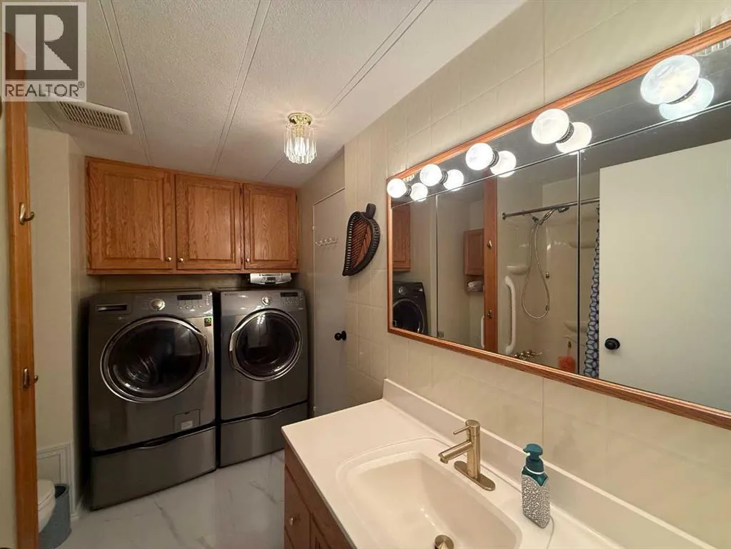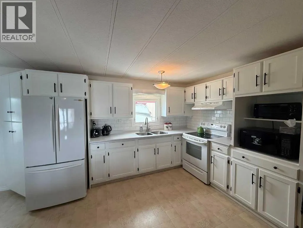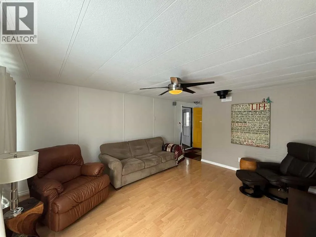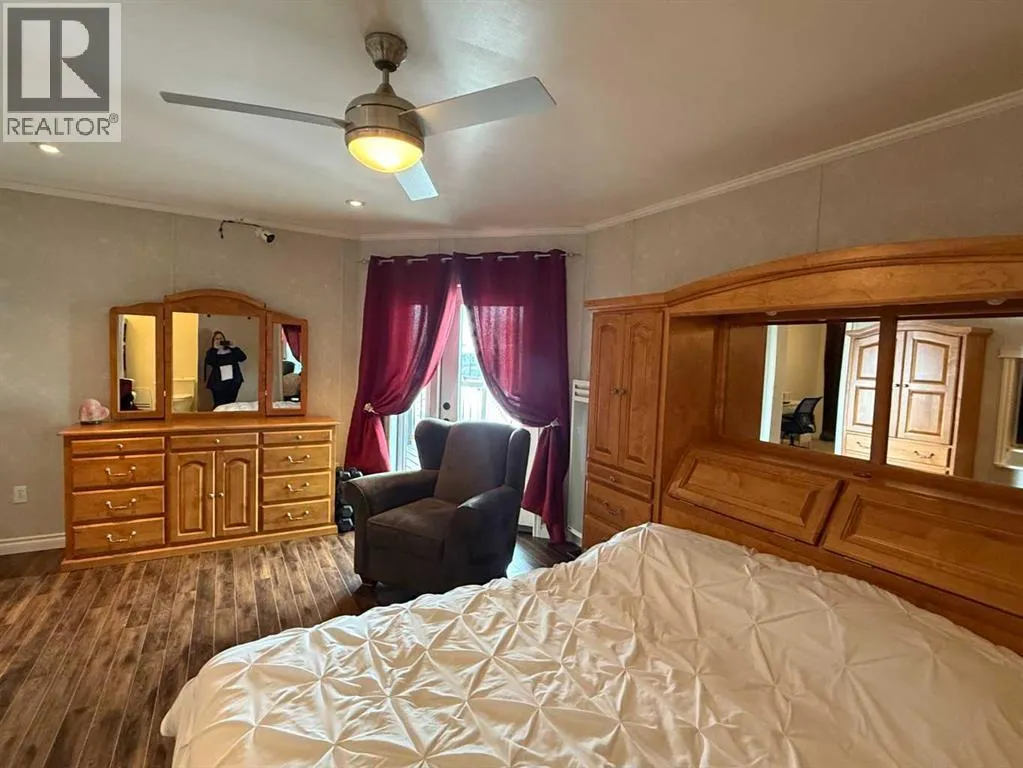 This move in ready 3 bedroom, 2 bath home sits on two lots on a quiet street, just around the corner from the arena and spray park, and within walking distance to shopping, schools, and the outdoor pool. It features a private 3 piece ensuite, a second 4 piece bathroom, and a laundry room accessible from both the hall and a bedroom. Offering a great mix of comfort, functionality, and tasteful updates, this well cared for property includes a large fenced yard, plenty of parking (with standard and RV power hook ups), and multiple outdoor storage options. In addition to three backyard sheds, thereâs a larger fully insulated and heated workshop with a functional loft. The spacious entryway doubles as a flexible space with direct access to a covered deck, privately tucked away from the street. Updates over the years include new windows and doors, added insulation to exterior walls, updated siding, a peaked metal roof, metal skirting, central air, and a generator for power outages. A 360 virtual tour is available in the media section, with floor plans coming soon. (id:27476)