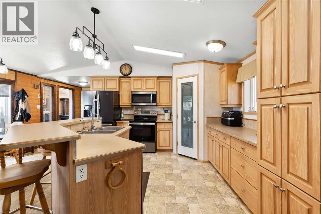 Welcome to this 2007 custom-built modular home showcasing true pride of ownership and is maintained in amazing condition. This one-owner property offers 3 bedrooms and 2 full bathrooms, including a spacious primary suite complete with a full ensuite and a walk in closets. Your second bedroom is also equipped with a walk in closet.The bright open-concept layout is enhanced by vaulted ceilings, creating an airy and inviting atmosphere perfect for both everyday living and entertaining. The kitchen features a stunning new Whirlpool black stainless steel appliance package, blending modern style with high performance.Thoughtful upgrades provide comfort and peace of mind, including a new on demand HWT tank and a durable new tin roof. Custom woodworking details throughout the home add warmth and character you wonât find in standard builds.Situated on two owned lots, this property offers exceptional privacy with only two neighboring homes. Enjoy the fully fenced yard and private deckâperfect for relaxing or hosting guests. A cozy wood-burning stove in the porch adds charm and comfort during cooler months.This is a rare opportunity to own a thoughtfully cared-for home that combines quality craftsmanship, modern updates, and peaceful surroundings. (id:27476)