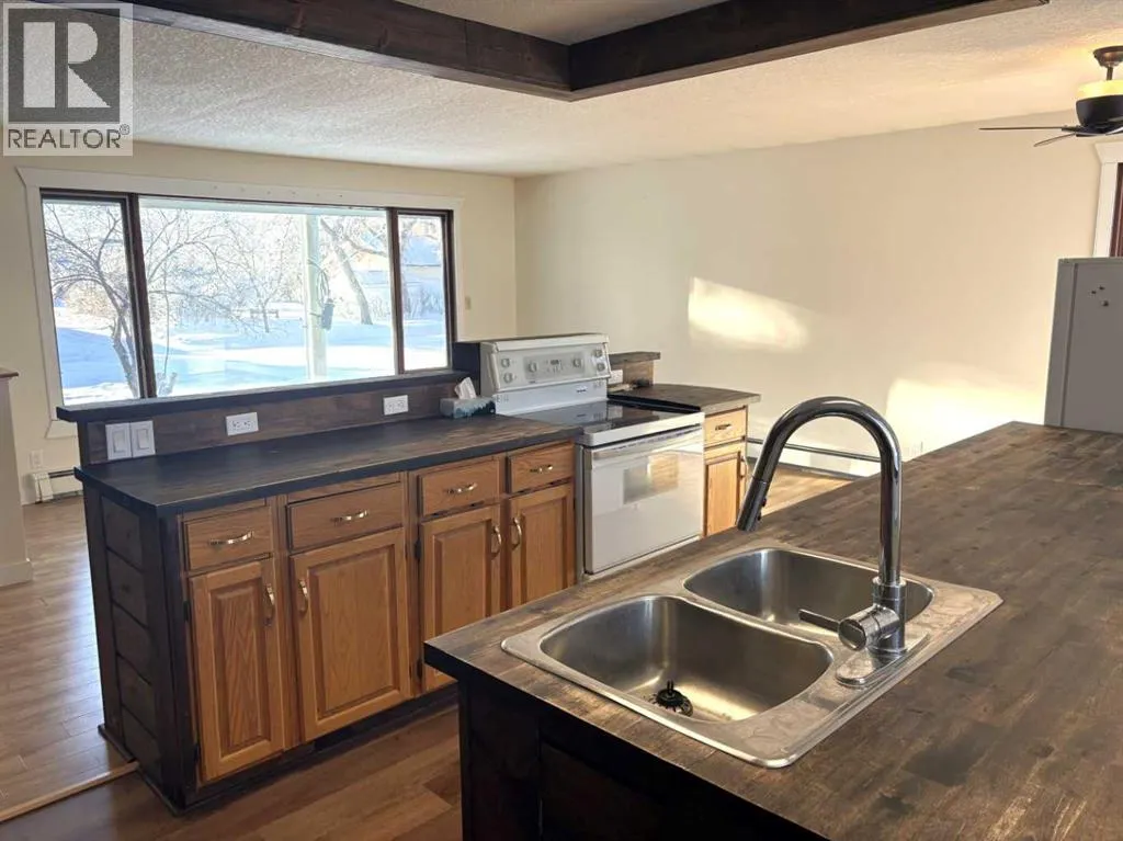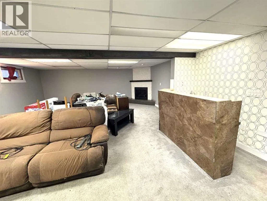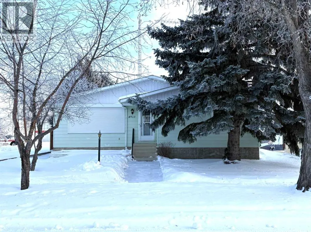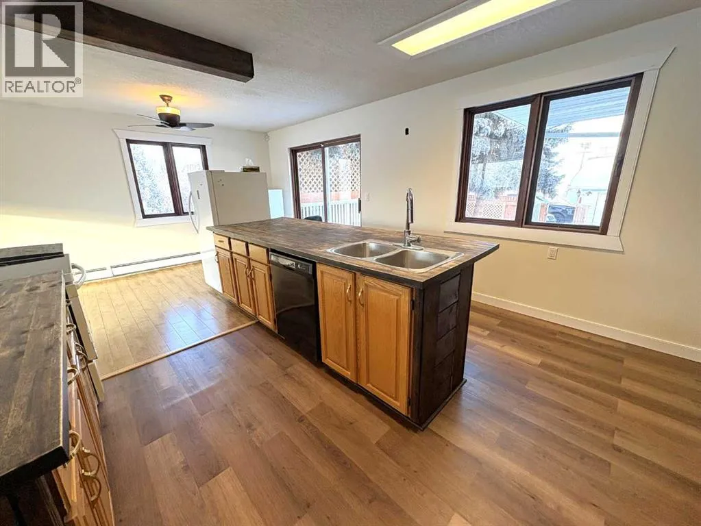 Check out this great family home. 1300 square foot bungalow. Four bedrooms, two full bathrooms, two 1/2 baths. You will love the open floor plan, perfect for entertaining family and friends. The spacious kitchen has two large islands which flow into the dining area. There are sliding doors to back deck. The bright living room has an outside powered roll down storm blind. The primary bedroom has a two piece en suite and walk-in closet, one more bedroom and a newer four piece bathroom. Main floor laundry for your convenience with another two piece bathroom. The finished basement features a large family room with a cozy gas fireplace and wet bar. There are two more bedrooms, another newer three-piece bathroom and two storage rooms. You will love your private fence backyard and maintenance free deck to enjoy your morning coffee. The detached 24â x 28â insulated garage gives you plenty of room to park and still have room for work area . Enjoy small town living in the vibrant community of Forestburg. (id:27476)
