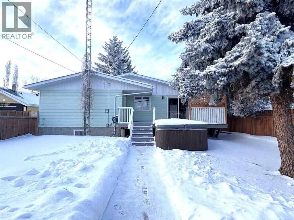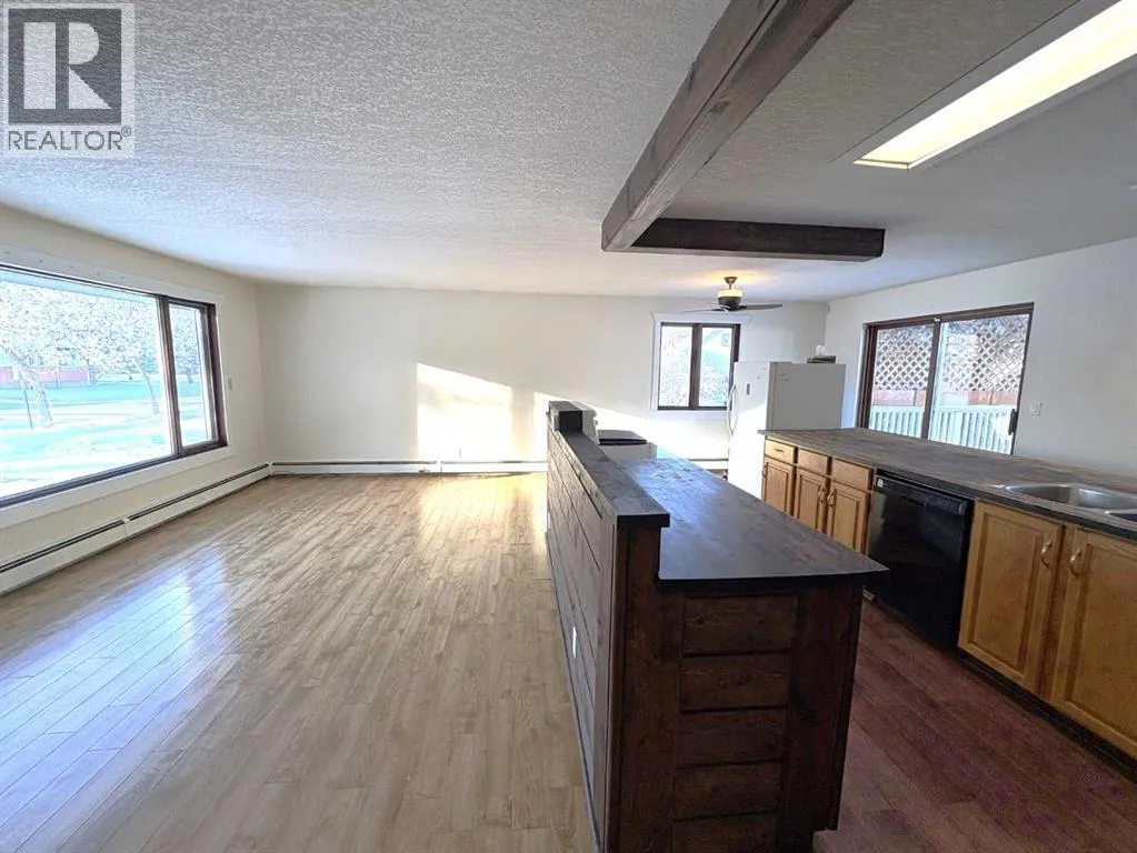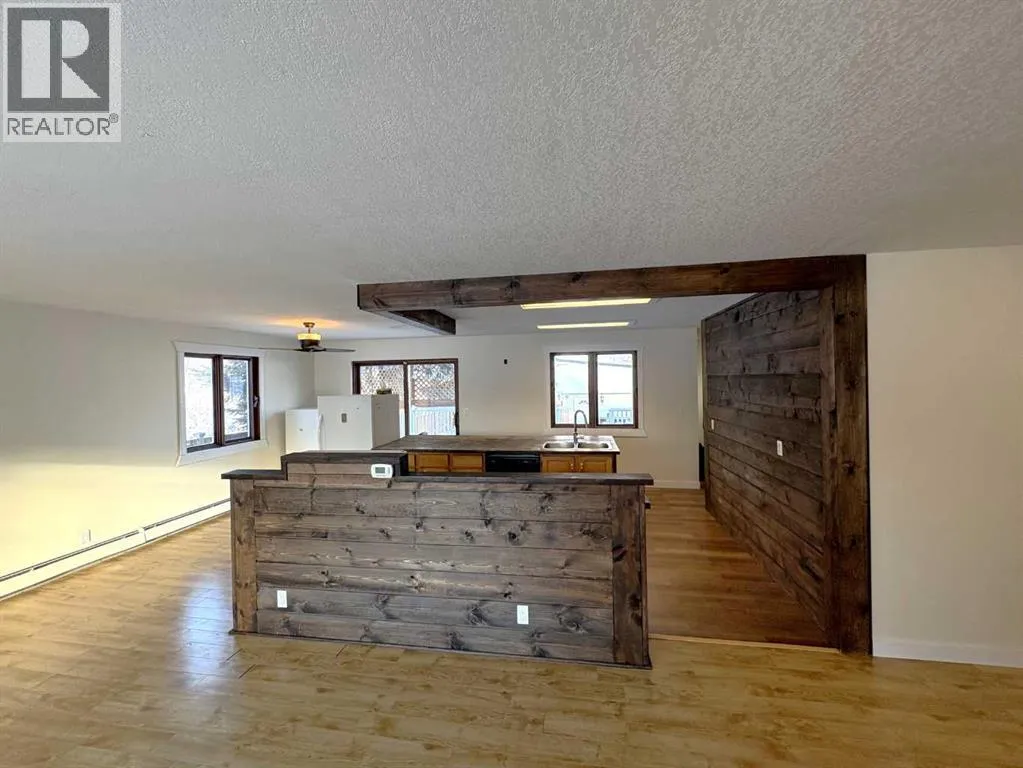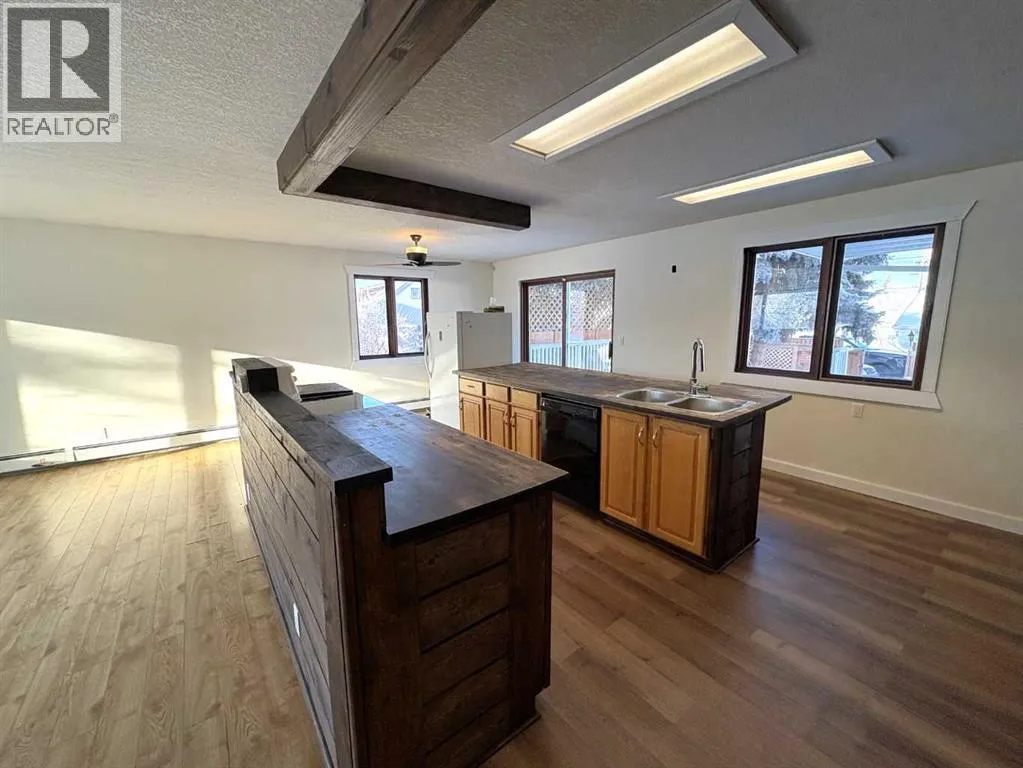 Check out this great family home. 1300 square foot bungalow. Four bedrooms, two full bathrooms, two 1/2 baths. You will love the open floor plan, perfect for entertaining family and friends. The spacious kitchen has two large islands which flow into the dining area. There are sliding doors to back deck. The bright living room has an outside powered roll down storm blind. The primary bedroom has a two piece en suite and walk-in closet, one more bedroom and a newer four piece bathroom. Main floor laundry for your convenience with another two piece bathroom. The finished basement features a large family room with a cozy gas fireplace and wet bar. There are two more bedrooms, another newer three-piece bathroom and two storage rooms. You will love your private fence backyard and maintenance free deck to enjoy your morning coffee. The detached 24â x 28â insulated garage gives you plenty of room to park and still have room for work area . Enjoy small town living in the vibrant community of Forestburg. (id:27476)