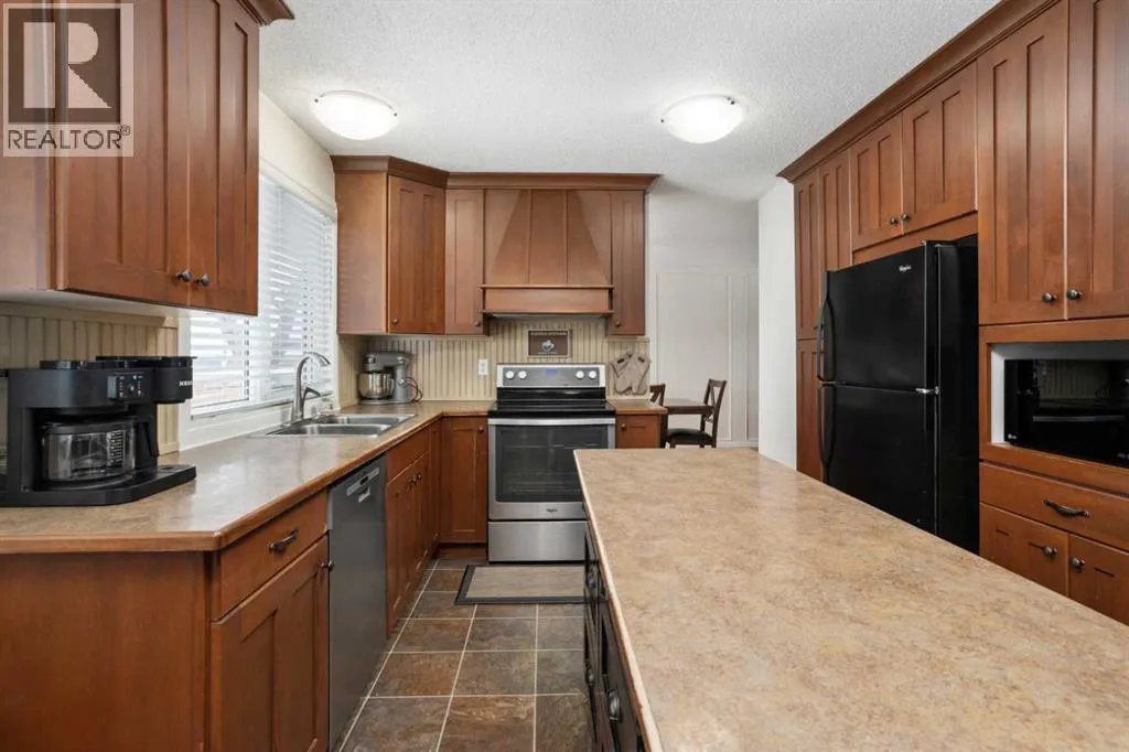 Stepping into this home feels like stepping into the lifestyle so many families dream of. Warm hardwood floors guide you through an inviting front entrance and into a bright, spacious living and dining area designed for gathering, celebrating, and everyday comfort. The beautifully updated kitchen features modern cabinetry, a generous island with extra storage, and a welcoming breakfast bar, an ideal hub for busy mornings and family conversations. The second level offers a standout family room with an electric fireplace insert and patio doors leading to the back deck, creating a perfect space for movie nights or relaxed weekends. This level also includes a convenient 2 piece bathroom, a laundry room, and direct access to the double attached garage. Upstairs, four spacious bedrooms provide room for everyone, along with a 4 piece main bathroom and a 3 piece ensuite in the primary suite, complete with a walk-in closet. Itâs a layout that truly supports a growing family. The fourth level expands your possibilities even further with another family room, an additional bedroom or office, a large utility room, and exceptional storage. Outside, the fully fenced and landscaped yard offers a safe, private place for kids and pets to play. Set on a quiet street just steps from the park, this home delivers the comfort, space, and community feel that make it an exceptional place to raise a family. (id:27476)