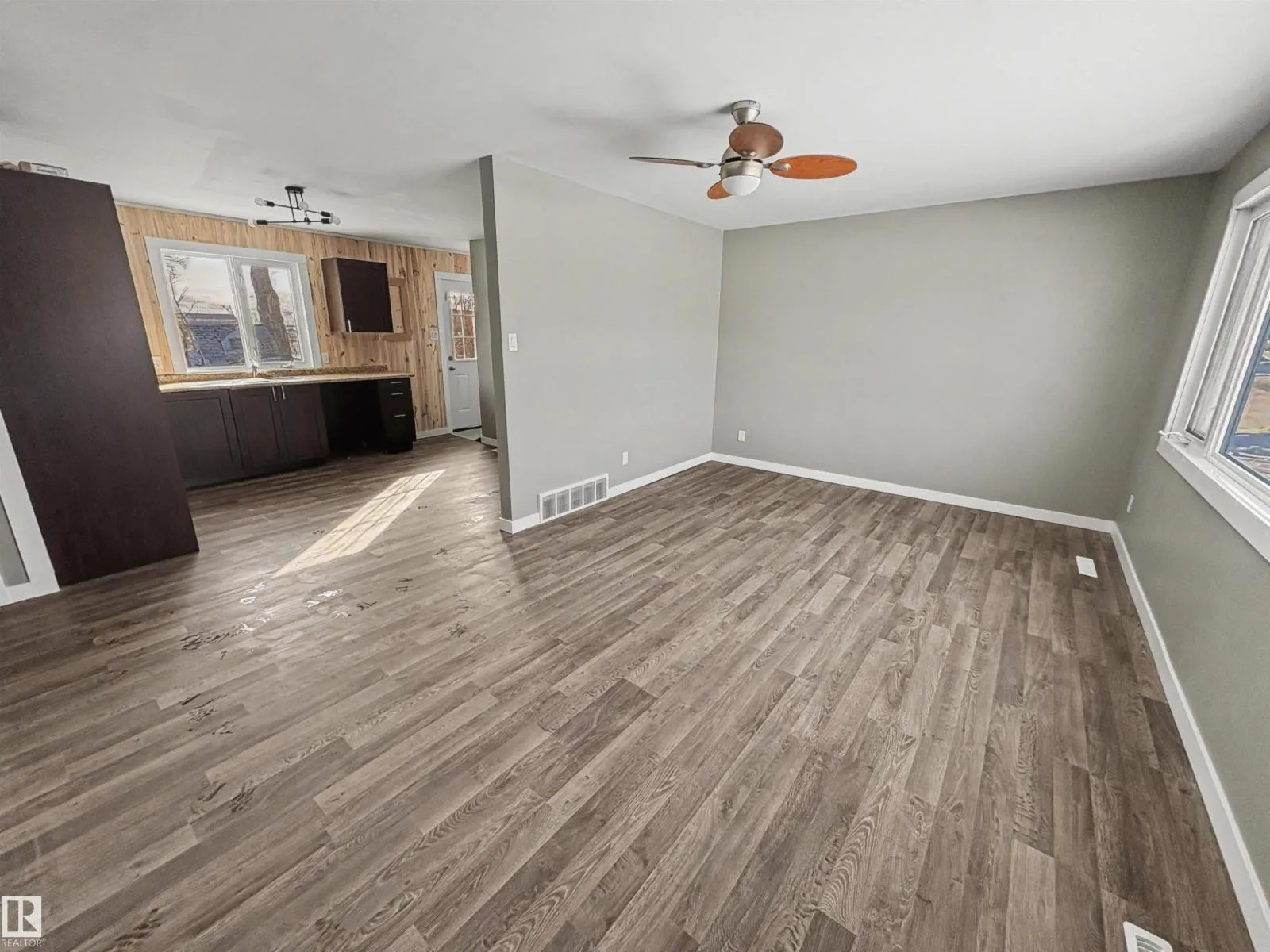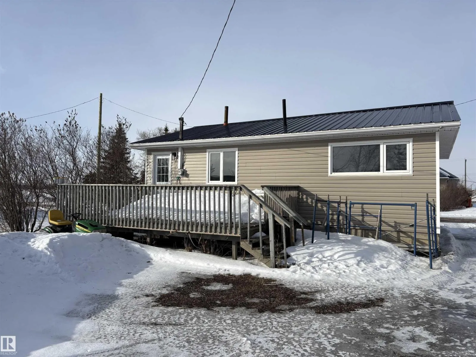 A place to call your own! This charming bungalow offers a bright main living space with cozy living room. Newer kitchen features modern dark cabinetry and a dining nook. 2 bedrooms and a 4-piece bath. Updates include metal roofing, paint, trim, bathroom and vinyl plank flooring. The full basement is undeveloped and provides laundry hookups and plenty of storage space. Outside youâll find a landscaped yard with gravelled driveway and large back deck. Located in Fort Kent close to playground, ball diamonds and ice rink. Walking distance to a trout stocked fishing pond! Only 10 minutes to Bonnyville with municipal services. Start Here! (id:27476)