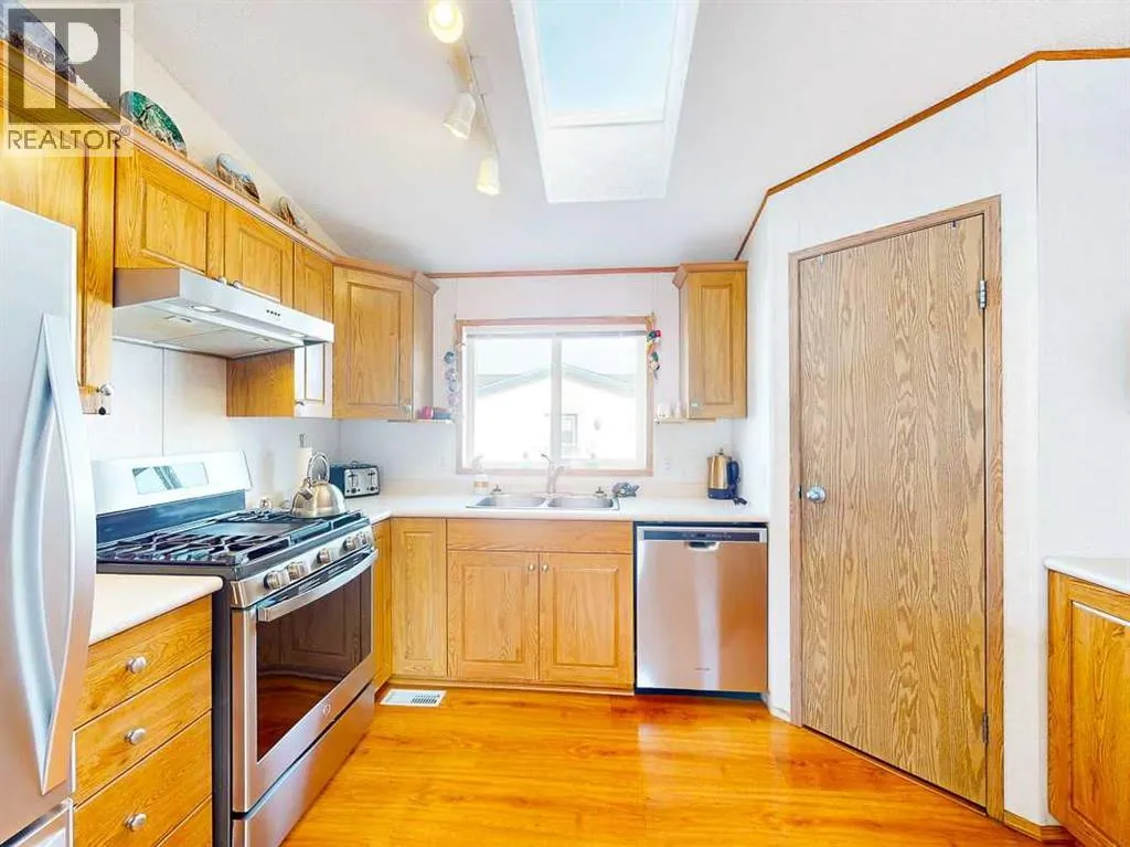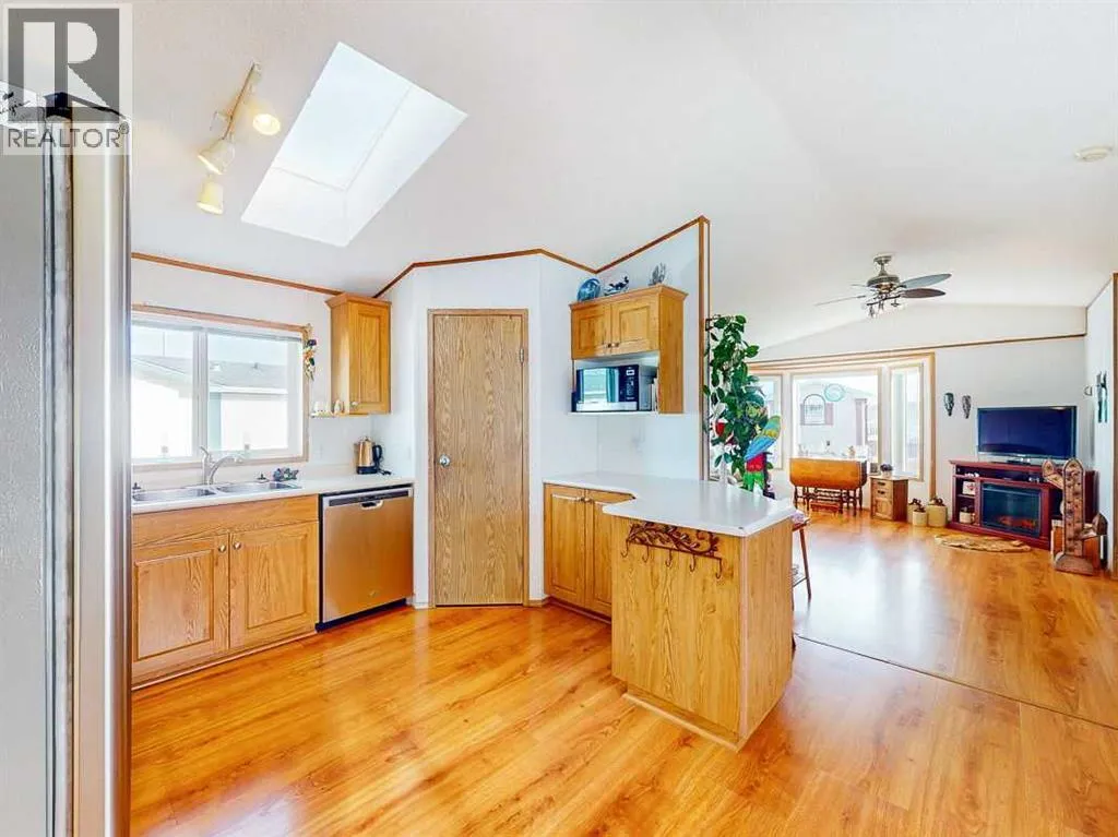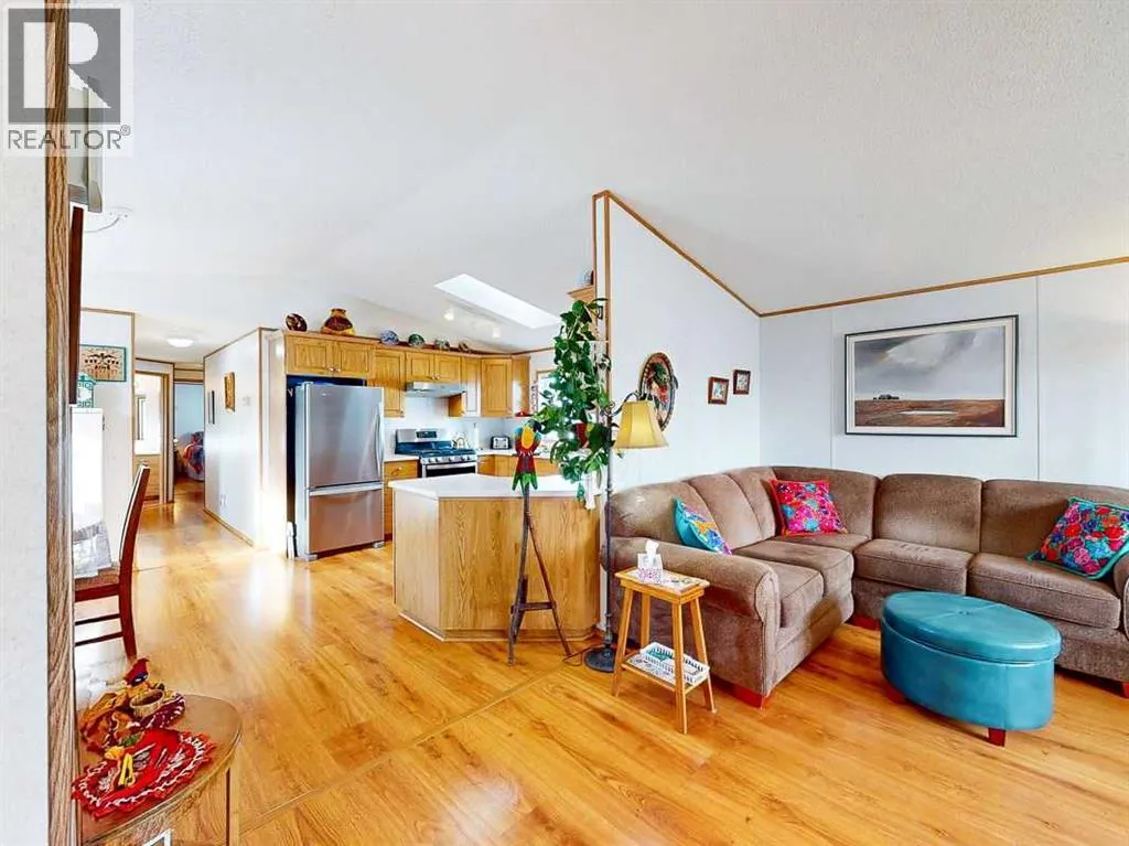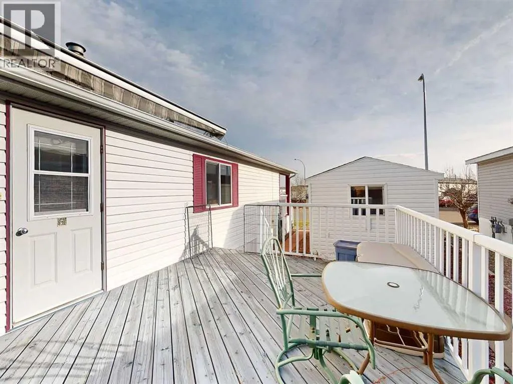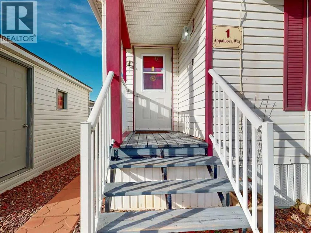Ready to downsize but donât want to give up your outdoor oasis? Welcome to 1 Appaloosa Way in the sought after community of Macleod Meadows! This perfectly maintained, two bedroom, two full bathroom, 1200sf home with a 12 x 16 insulated, wired workshop might be just what youâve been dreaming of! Enjoy one level living at its finest in your spacious, open concept living, dining and kitchen area, with ample space to hang out with your family members or entertain guests. Thereâs even room for your dining room table and six or so chairs - without having to rearrange the whole house to seat everyone! The large U-shaped kitchen is made for real-life chefs, with counters, cupboard and pantry space galore, as well as a skylight overhead for lots of natural light while you whip up your gourmet creations in your high-tech gas oven. Down the hall, youâll find your laundry room with easy access to your private deck and yard, as well as a bedroom and three-piece bathroom. At the end of the hall, waits your ownerâs sanctuary, complete a large ensuite bathroom, an XL soaker tub and huge walk-in closet. Outside, the yard features low maintenance landscaping with just enough grass out front to keep that green lawn A+ ranking youâve prided yourself on over the years. In the back yard, enjoy all of your favourite seasonal flowers on your large south facing deck - complete with an electric awning for a bit of shade during the dog days of summer. Plus, there are two sheds behind the home to store all the outdoor extras youâve accumulated. This home is located in Macleod Meadows Manufactured Home Community, close to shopping, the Health Centre, the Oldman River and all that vibrant town of Fort Macleod has to offer. Lot rent is affordable at $450 per month, including sewer, garbage and recycling pick up. Water is approximately $50 per month. Pets are welcome, but require Park approval. Call your favourite REALTOR® to view this property today! (id:27476)