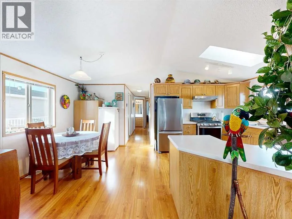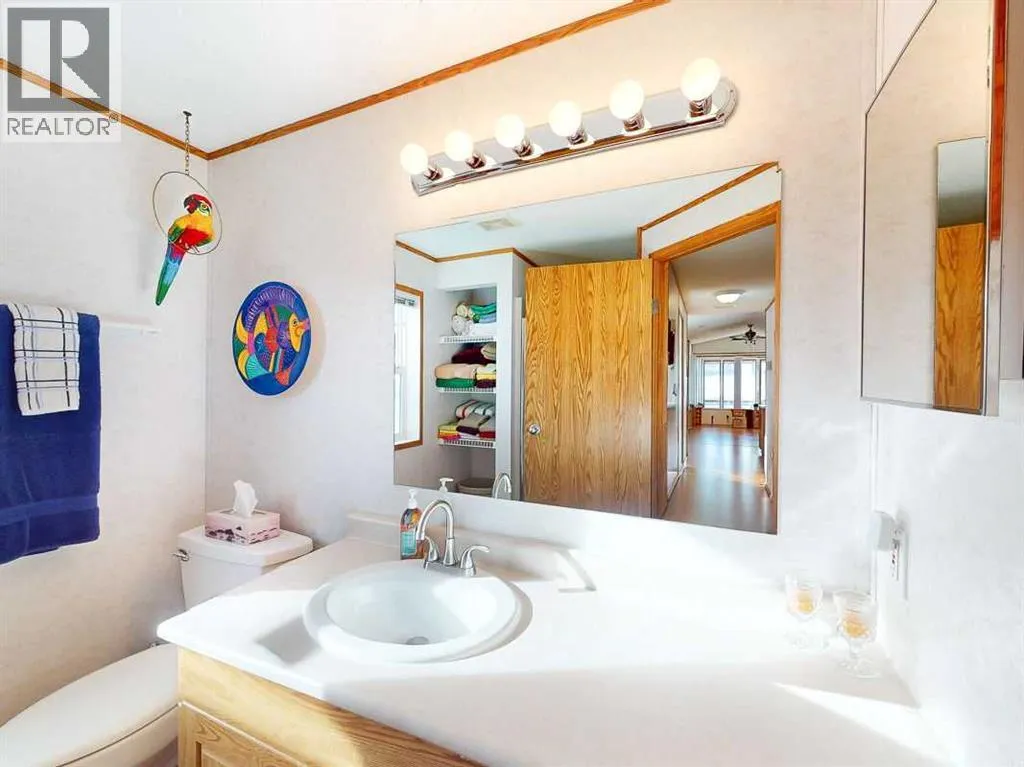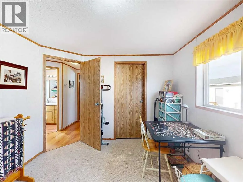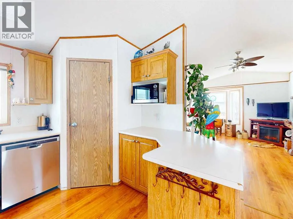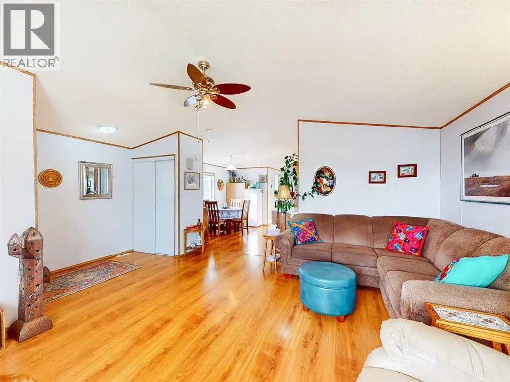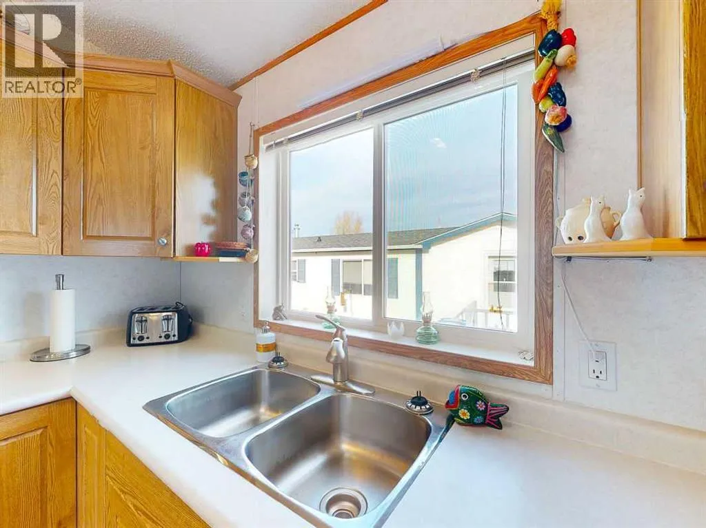 Ready to downsize but donât want to give up your outdoor oasis? Welcome to 1 Appaloosa Way in the sought after community of Macleod Meadows! This perfectly maintained, two bedroom, two full bathroom, 1200sf home with a 12 x 16 insulated, wired workshop might be just what youâve been dreaming of! Enjoy one level living at its finest in your spacious, open concept living, dining and kitchen area, with ample space to hang out with your family members or entertain guests. Thereâs even room for your dining room table and six or so chairs - without having to rearrange the whole house to seat everyone! The large U-shaped kitchen is made for real-life chefs, with counters, cupboard and pantry space galore, as well as a skylight overhead for lots of natural light while you whip up your gourmet creations in your high-tech gas oven. Down the hall, youâll find your laundry room with easy access to your private deck and yard, as well as a bedroom and three-piece bathroom. At the end of the hall, waits your ownerâs sanctuary, complete a large ensuite bathroom, an XL soaker tub and huge walk-in closet. Outside, the yard features low maintenance landscaping with just enough grass out front to keep that green lawn A+ ranking youâve prided yourself on over the years. In the back yard, enjoy all of your favourite seasonal flowers on your large south facing deck - complete with an electric awning for a bit of shade during the dog days of summer. Plus, there are two sheds behind the home to store all the outdoor extras youâve accumulated. This home is located in Macleod Meadows Manufactured Home Community, close to shopping, the Health Centre, the Oldman River and all that vibrant town of Fort Macleod has to offer. Lot rent is affordable at $450 per month, including sewer, garbage and recycling pick up. Water is approximately $50 per month. Pets are welcome, but require Park approval. Call your favourite REALTOR® to view this property today! (id:27476)