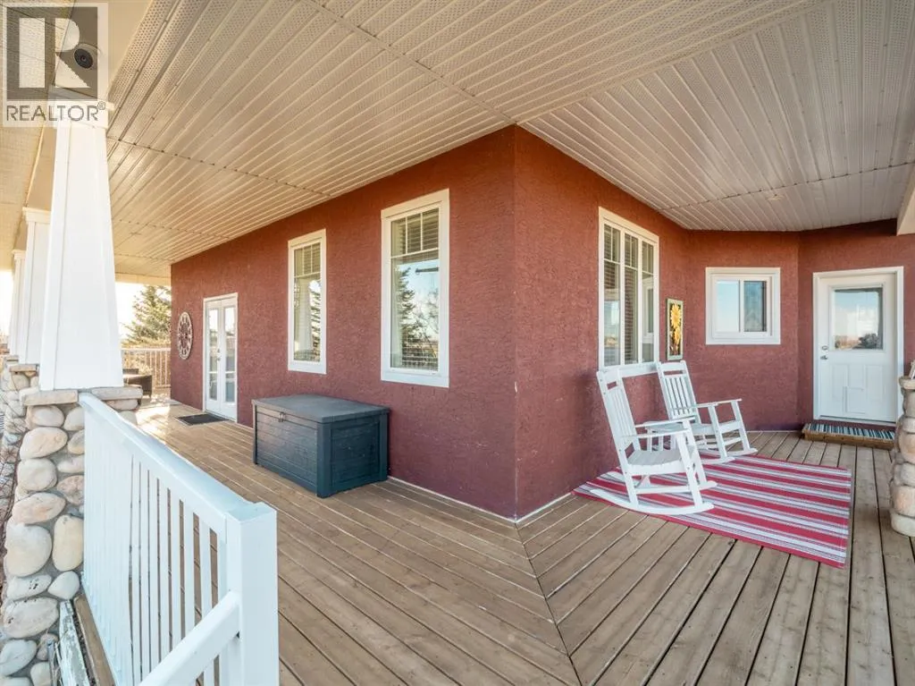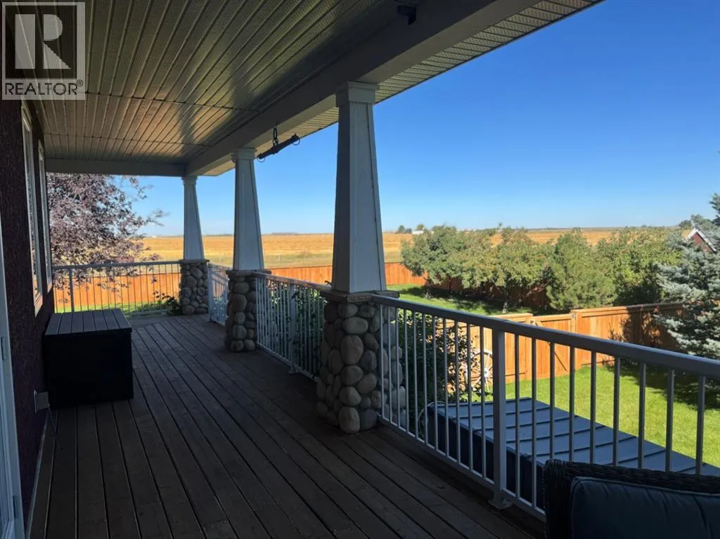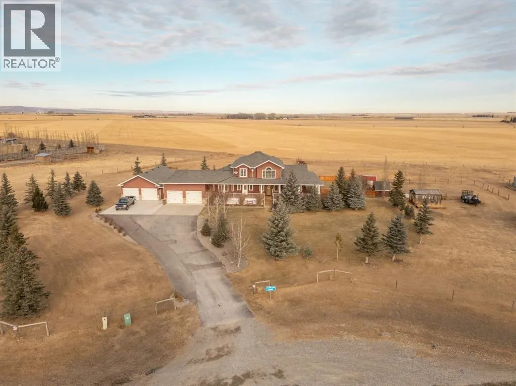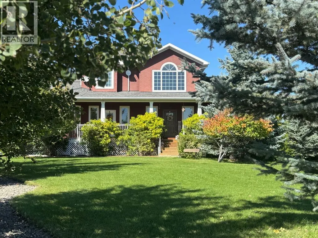 Welcome to a beautifully maintained acreage within Fort Macleod town limits.This impressive property sits on 4.19 acres and offers the perfect blend of space, privacy, and functionality, all just minutes from town amenities.Featuring 5,250 sq. ft. of developed living space, this home provides room for the entire family with six generously sized bedrooms. The primary bedroom is located on the main floor, with three bedrooms upstairs and two exceptionally large bedrooms in the fully developed basement.The open-concept main level showcases a stunning kitchen with high-end granite countertops, quality appliances, custom cabinetry, and beautiful hardwood flooring throughout. The layout is ideal for everyday living and entertaining.Outside, enjoy a wraparound deck, fully fenced backyard, and a charming greenhouse. The yard is perfectly set up for children, pets, and outdoor enjoyment. A hot tub is included for year-round relaxation.For those who value garage space, this property truly stands out. There is a double attached garage off the house, connected by an enclosed covered breezeway to an additional oversized double attached garage, providing excellent space for vehicles, storage, or hobbies.Additional features include: Bright, spacious laundry room, Cistern with water co-op, Underground sprinklers, Mature tree landscaping, Paved driveway,  Open views of surrounding farmland, Ideal setup for horses, chickens, or hobby farming.With the size of the home, quality of construction, multiple garages, and established landscaping, it would be extremely difficult to recreate this property at todayâs building costs.Donât miss out! Book your showing with your favourite REALTOR® today. (id:27476)