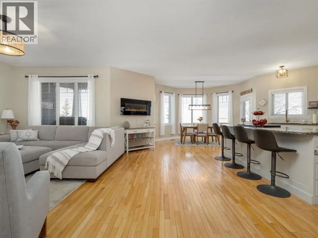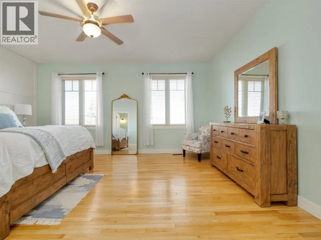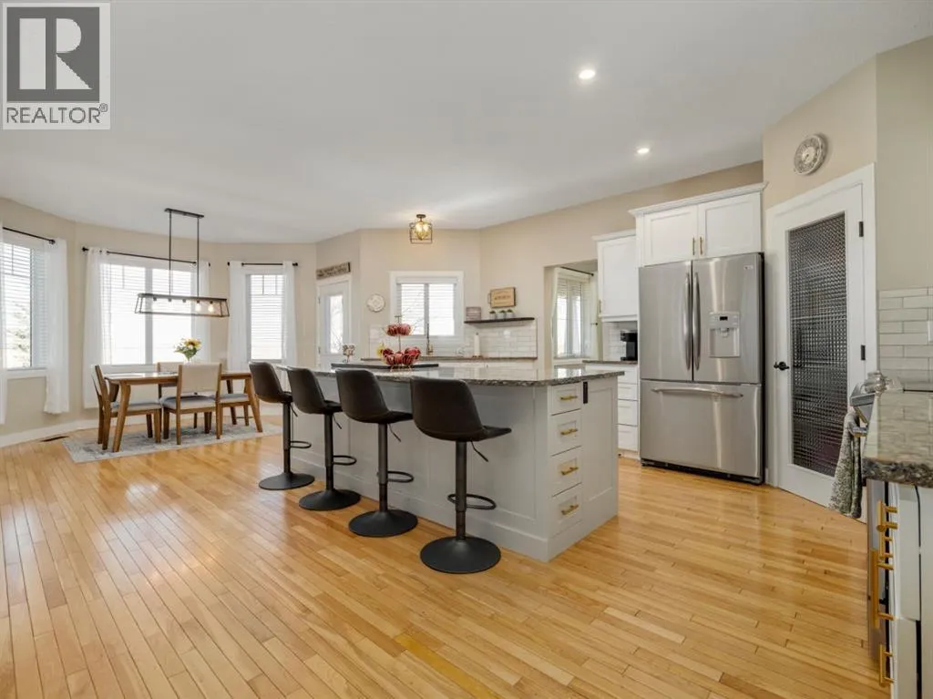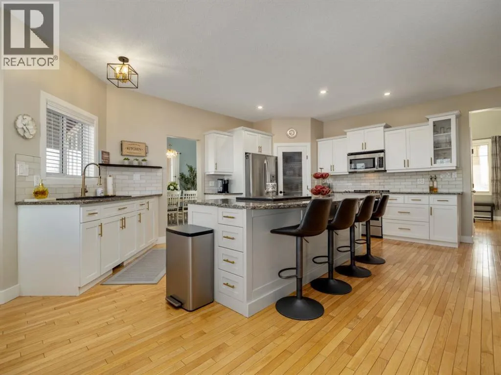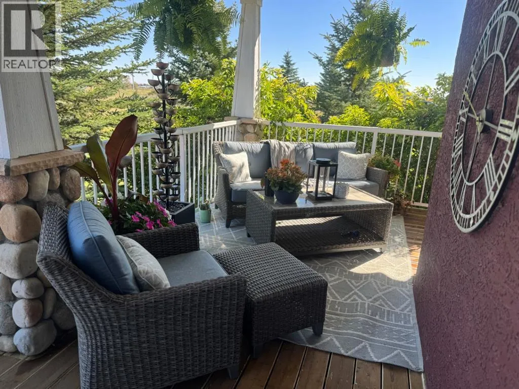Welcome to a beautifully maintained acreage within Fort Macleod town limits.This impressive property sits on 4.19 acres and offers the perfect blend of space, privacy, and functionality, all just minutes from town amenities.Featuring 5,250 sq. ft. of developed living space, this home provides room for the entire family with six generously sized bedrooms. The primary bedroom is located on the main floor, with three bedrooms upstairs and two exceptionally large bedrooms in the fully developed basement.The open-concept main level showcases a stunning kitchen with high-end granite countertops, quality appliances, custom cabinetry, and beautiful hardwood flooring throughout. The layout is ideal for everyday living and entertaining.Outside, enjoy a wraparound deck, fully fenced backyard, and a charming greenhouse. The yard is perfectly set up for children, pets, and outdoor enjoyment. A hot tub is included for year-round relaxation.For those who value garage space, this property truly stands out. There is a double attached garage off the house, connected by an enclosed covered breezeway to an additional oversized double attached garage, providing excellent space for vehicles, storage, or hobbies.Additional features include: Bright, spacious laundry room, Cistern with water co-op, Underground sprinklers, Mature tree landscaping, Paved driveway,  Open views of surrounding farmland, Ideal setup for horses, chickens, or hobby farming.With the size of the home, quality of construction, multiple garages, and established landscaping, it would be extremely difficult to recreate this property at todayâs building costs.Donât miss out! Book your showing with your favourite REALTOR® today. (id:27476)