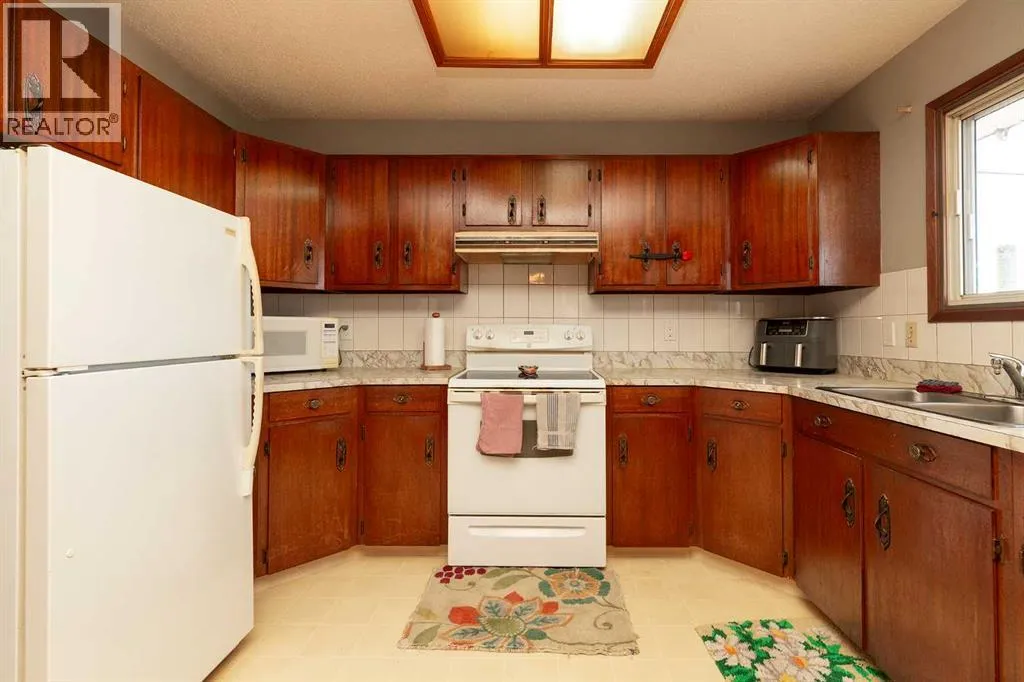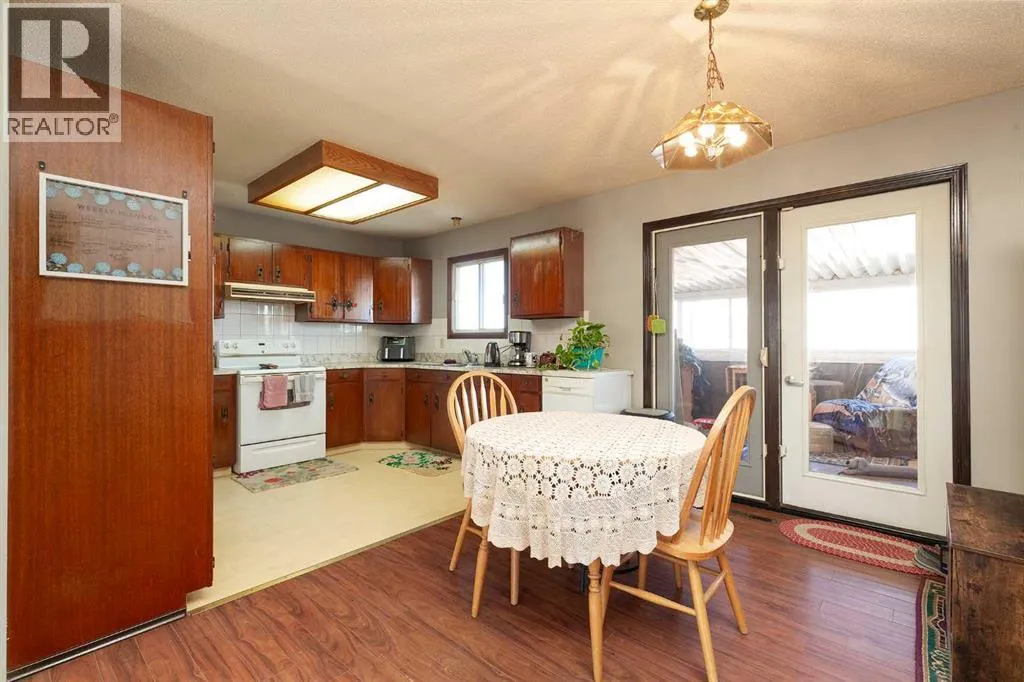 Well-kept 921 sq. ft. bi-level located on a quiet street in Fort Macleod. This fully finished home offers 3 bedrooms and 2 bathrooms with a functional and open layout on the main floor connecting the living room, dining area, and kitchen. Also on the main floor are 2 large bedrooms and the main 4-piece bathroom. Off the dining room youâll find a covered and enclosed patio overlooking the backyard â a great space to enjoy fresh air in any weather. The basement is fully developed, adding additional living space along with another bedroom and the second full bathroom. The standout feature of this property is the impressive 22' x 40' heated garage with overhead doors on both the front and back, offering excellent access and flexibility for parking, storage, or projects. A great opportunity to own a solid home on a quiet street in Fort Macleod. (id:27476)