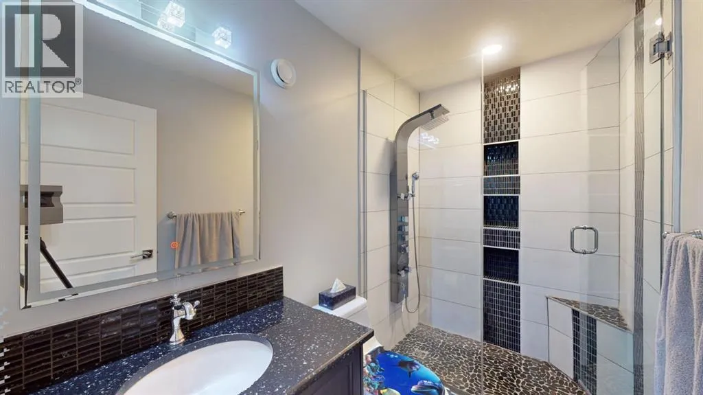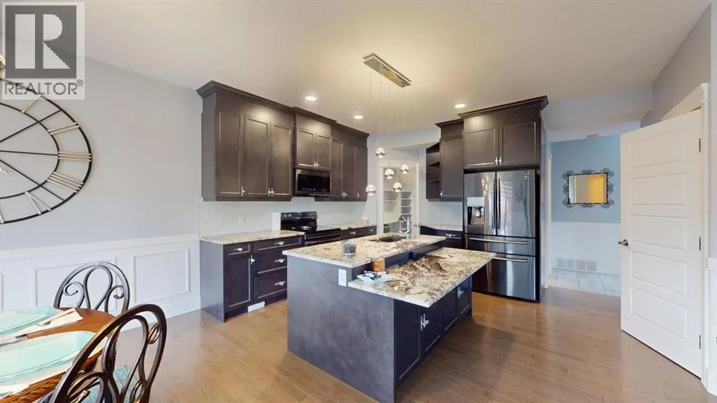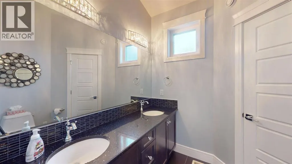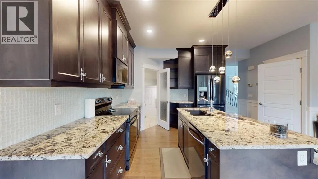 Unique gems are hard to find - The lucky buyer of this home will have found it. Designed with professional couple in mind ths home can easily accommodate a small family. From it's solid oak flooring, a penny stairwell, 3 stone fireplaces 2 with BC log hearth and mantles.Unique light fixtures, 9' ceilings. Basement has an extra bedroom plus a one bedroom LEGAL suite. Extra income or add space to existing living space.Open concept mainfloor features ceiling height extra deep cupboards, upgraded granite , 1st stone fireplace in the sitting room and walk through pantry to double attached heated garage with epoxy floor. (Easy access to powder room from garage)Open foyer with crystal chandelier fills the home with rainbows every sunny afternoon. Main staircase is 12" tred for an easy rise. Halfway up the stairs you will find the spa style master with WIC, ensuite, spa tub, 2nd stone fireplace and vaulted ceiling.Upper floor features laundryroom, bathroom with oversized shower, office overlooking foyer, another bedroom and the spacious main livingroom with the 3rd full stone fireplace .So many wonderful features - hot water on demand, water softener, central A/C, central vac, and 2 person hot tub, All plantings chosen for fire resistantance, inc trees (3 cherry one chestnut) Additional bonuses - A quiet cul-de-sac located close to schools and amenities. Your new home has been immaculately kept and the pride shows through! This UNIQUE GEM is definitely worth checking out... Start the car! (id:27476)