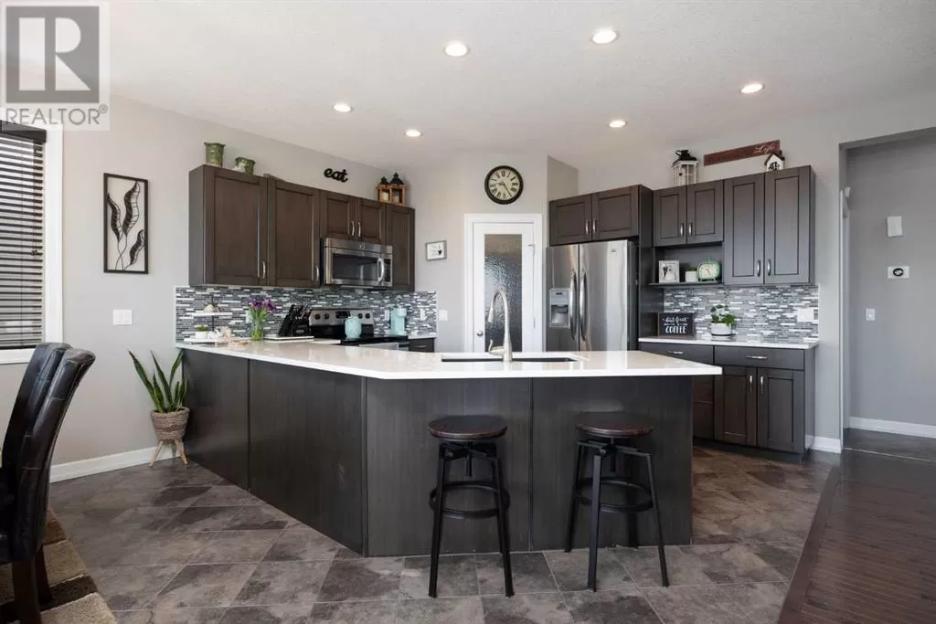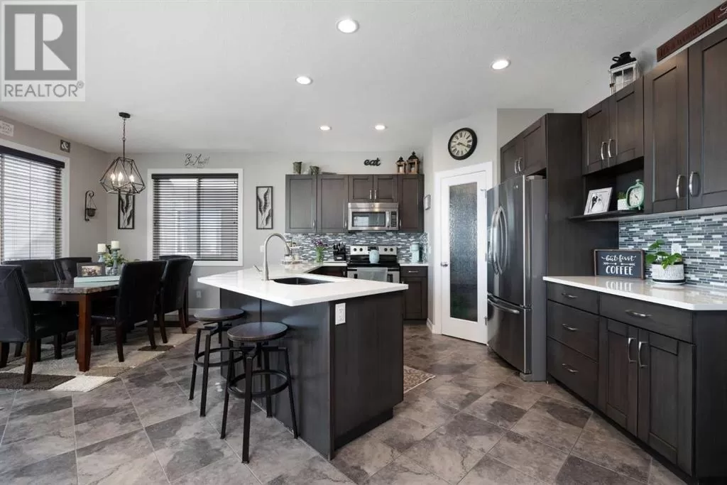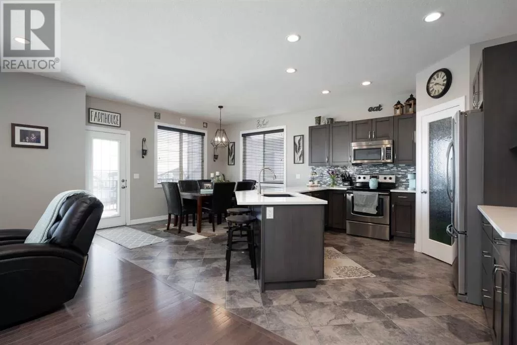 Welcome to 195 Killdeer Way, Fort McMurray â Your Perfect Family Home Awaits!This bright and inviting 4-bedroom, 3.5-bathroom home offers the perfect blend of style, space, and an unbeatable location in the heart of Eagle Ridge in Fort McMurray.Step inside to discover a warm and welcoming open-concept main floor, highlighted by rich dark hardwood floors, a sun-filled living room, and a modern kitchen featuring dark cabinetry, crisp white quartz countertops, a tile backsplash, stainless steel appliances, and a spacious walk-thru pantry leading to your large laundry/mudroom with access to the garage - making unloading groceries a breeze. Adjacent to the kitchen, the dining area leads directly to the back deckâperfect for BBQs, morning coffees, or summer gatherings. The spacious living room offers large windows and plenty of space to gather. A 2-piece powder room completes the main level.Upstairs, youâll find a generous primary suite complete with a vaulted ceiling, a large walk-in closet, and 4-piece ensuite. Two additional well-sized bedrooms and another full 4-piece bathroom offer comfort and convenience for the whole family.The fully developed, WALK-OUT basement provides fantastic flexibility, featuring a nook at the base of the stairs which creates potential for a perfect office space, a fourth bedroom, and a bright rec room with large windows, backyard access, and a custom bar outfitted with a fridge, sink, and space for a Keg-eratorâperfect for entertaining guests or game nights. A third full 4-piece bathroom with a tub/shower combo is also located downstairs. Plus, the basement includes a rough-in for future in-floor heat for added comfort during the winter months. A new hot water tank was installed in 2024 for added peace of mind.Outside, enjoy a large, fully fenced backyard, a heated double attached garage, and thoughtful finishes throughout the property. Best of all, this home is ideally situated across from direct access to the Birchwood Trailsâgi ving you quick access to year-round outdoor adventures right at your doorstep.Located close to incredible schools, parks, shopping, restaurants, movie theatre, bowling alley, and more; this home is a fantastic opportunity to own in one of Fort McMurrayâs most sought-after family neighborhoods.Donât miss your chanceâbook your private showing today and see why 195 Killdeer Way is the perfect place to call home! (id:27476)