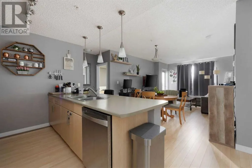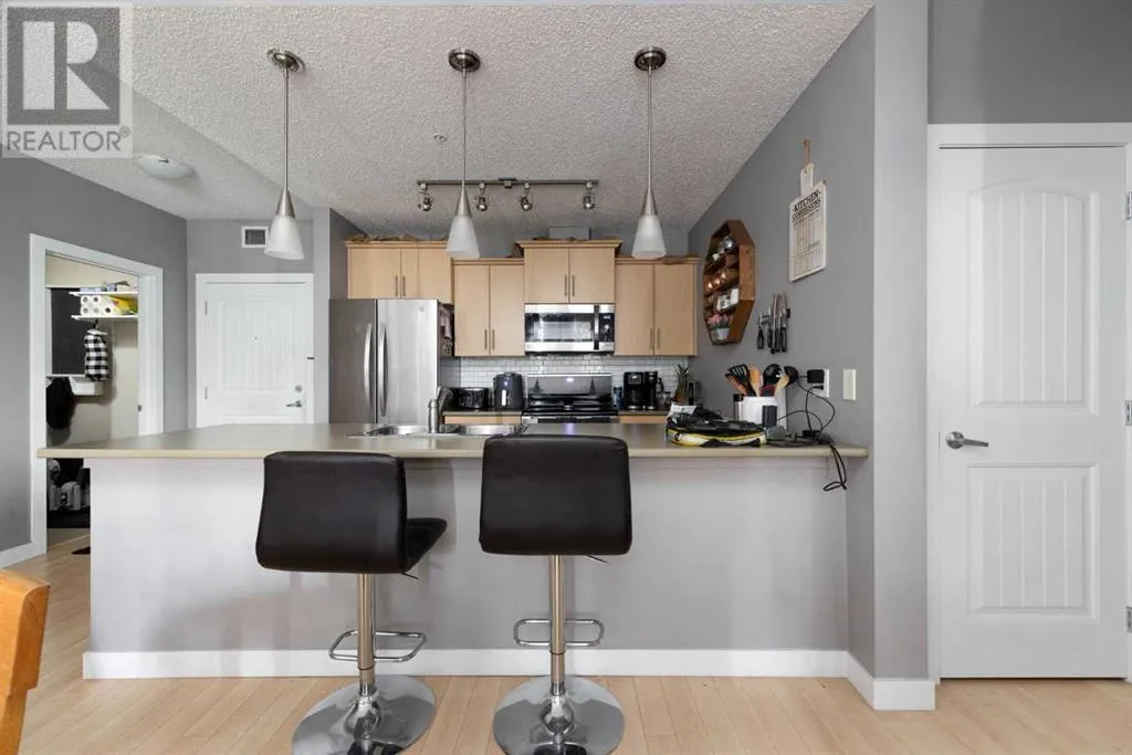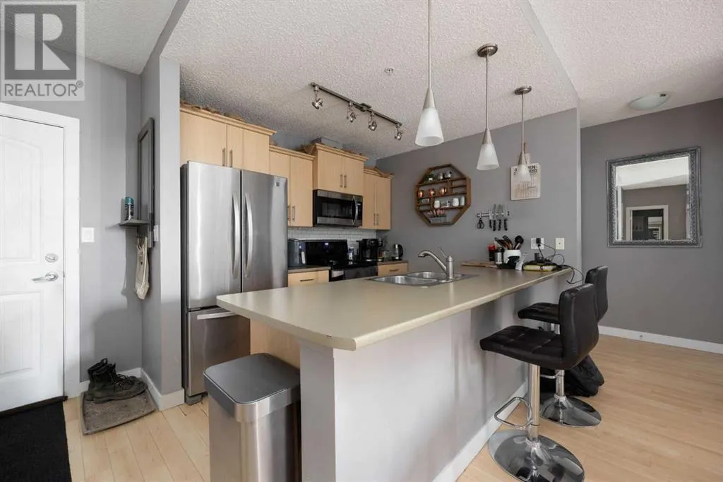 Top-floor living in the Summits of Eagle Ridge! This bright and spacious unit offers low-maintenance comfort in one of Fort McMurrayâs most desirable, concrete-built, communities. Inside, you'll find a modern open-concept layout featuring a well-appointed kitchen with ample cabinetry, a large island with breakfast bar, and a private balcony complete with a built-in natural gas BBQ hookup; perfect for entertaining or relaxing outdoors. Large windows fill the space with natural light, enhancing the appeal of the two generously sized bedrooms and two full bathrooms. The primary suite includes a walk-through closet leading to a 4-piece ensuite, while the second bedroom has its own full bath, offering ideal convenience for guests, roommates, or family. Additional features include in-suite laundry, a tandem heated underground parking stall with a storage locker located just steps from the elevator, and access to building amenities such as a fully equipped fitness facility and on-site playground. Whether youâre a first-time homebuyer, investor, or looking to downsize without compromise, this home is a perfect fit. Call today to schedule your private showing and experience everything this fantastic property has to offer. (id:27476)