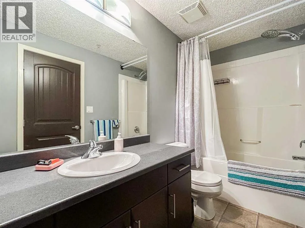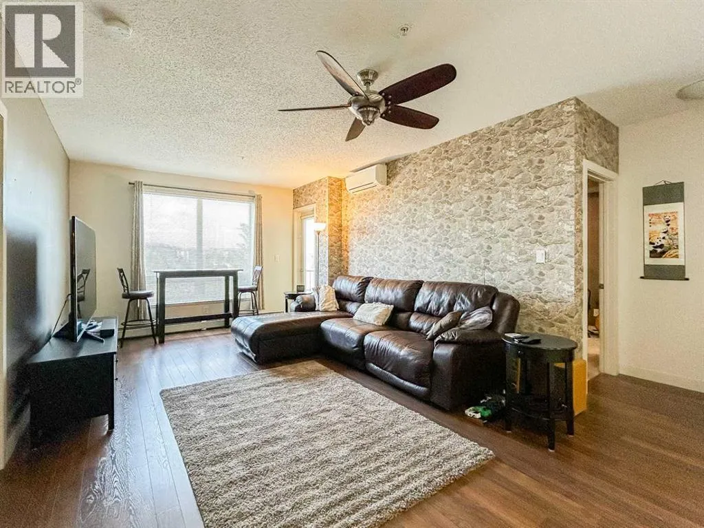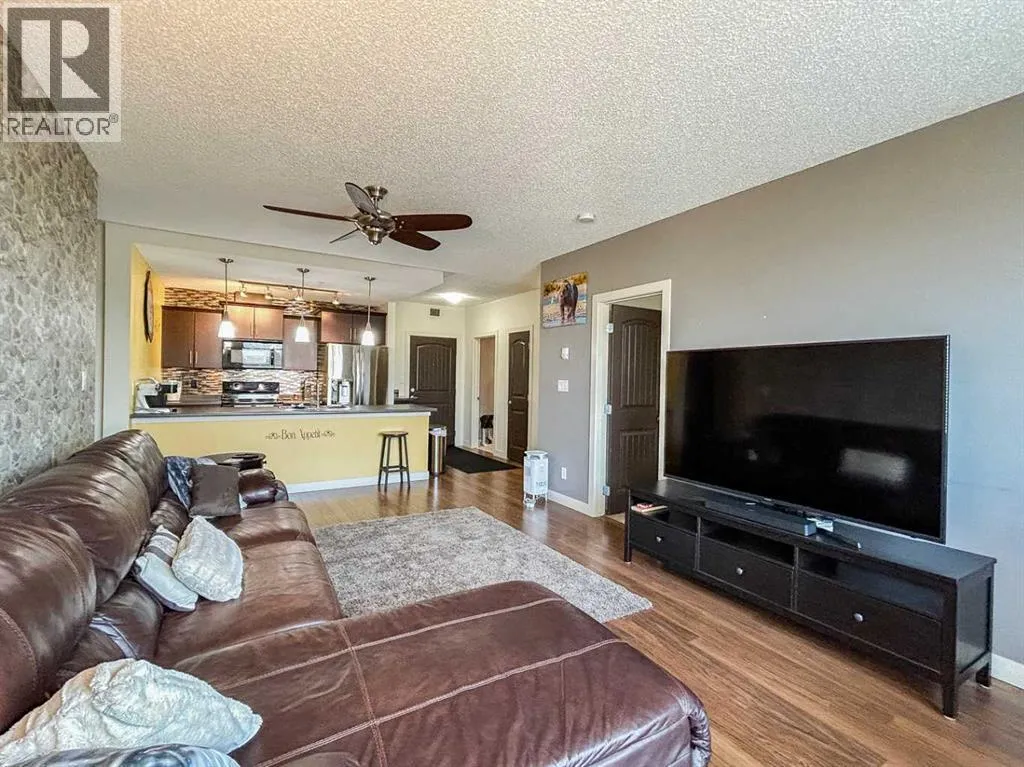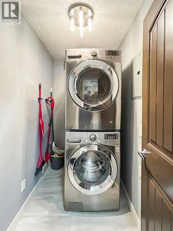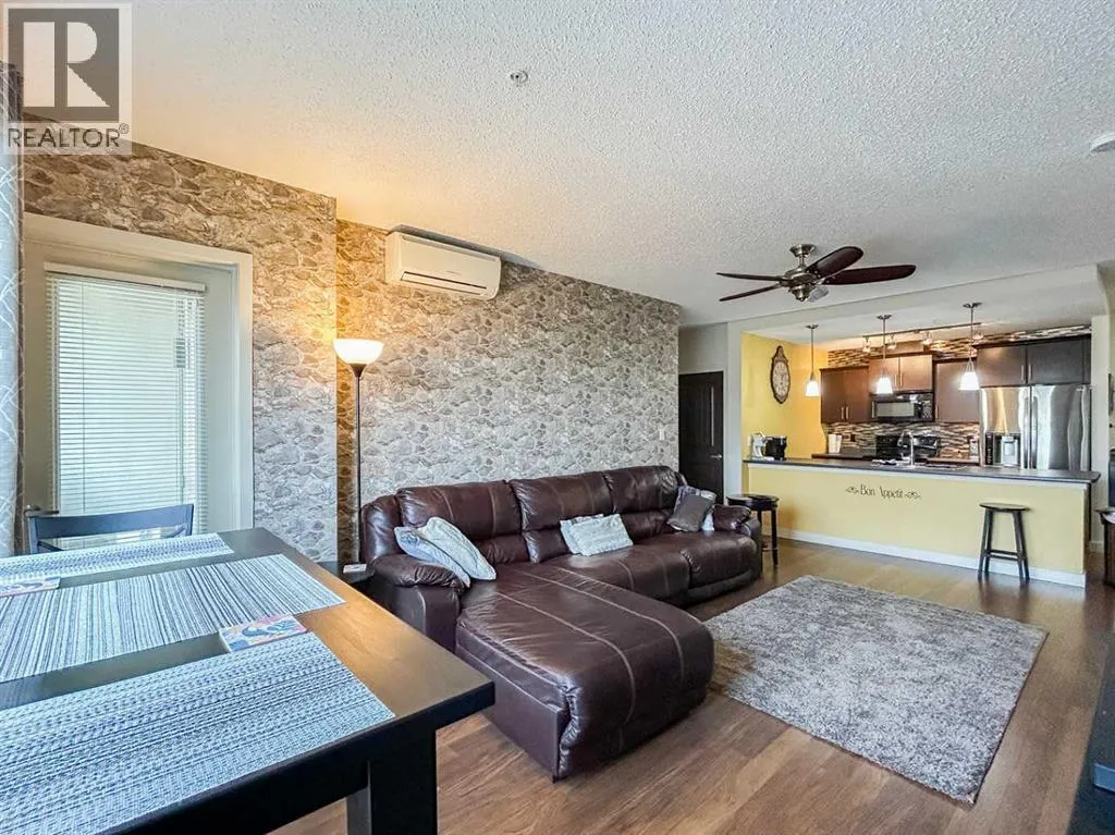 Pack your personal belongings and move right into this 4 th floor turnkey condo that has it all and a few extras. The property comes fully furnished right down to the dishes. Picture perfectly clean and tastefully decorated describes this home. As you enter the unit you will notice the spacious bright and sunny open concept kitchen and living room. The kitchen boasts breakfast bar, Stainless steel and glass backsplash in the kitchen, upgraded appliances. I love the paint and theâ bon appetit âscribing on the wall in this kitchen speaks gourmet cooking. This Open concept floor plan is perfect for any lifestyle. The Living room offers a cozy space with big windows to let in all the natural light and direct access to your private balconey with gas BBQ hookup and Western exposure. This home comes with 2 good size bedrooms, and the Master bedroom has a walk through 2-sided closet with its own private 4 pc ensuite. Other great features include updated light fixtures, & ceiling fan, central a/c, Full size stackable washer & dryer more than one closet for storage. The under-ground parking for this unit is a 2 car tandem parking stall, it has its own storage locker, and use of the onsite gym. Condo fees include, building insurance, heat, water, sewer. What a great location close to bus routes, grocery store, restaurants and all other amenities. (id:27476)