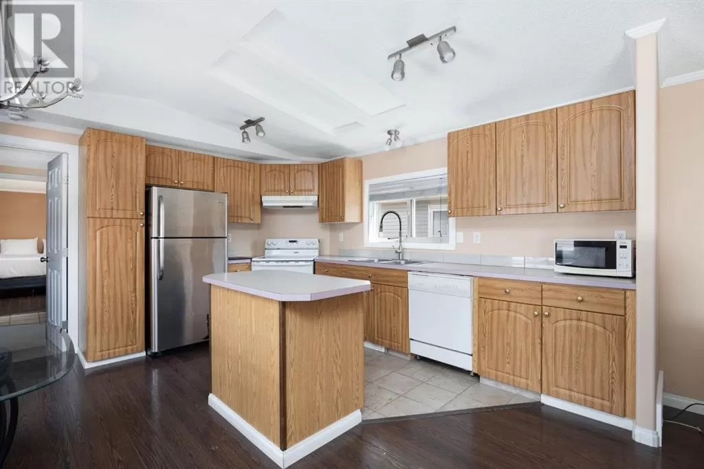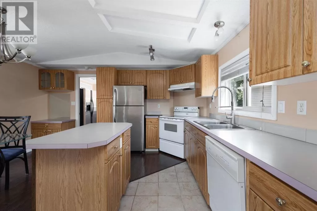 Welcome to 293 Grenfell Crescent, a custom and truly unique home offering nearly 2,300SF of total living space. Built on a solid CONCRETE FOUNDATION with a rare full, finished basement, this property provides the flexibility and room needed for large families or multi generational living. From the moment you arrive, youâll love the charming appeal and comfort. Inside, a front entryway welcomes you into the bright, airy living room, open concept kitchen, and eat in dining area. Vaulted ceilings enhance the sense of space, while upgrades like newer flooring and fresh paint in 2025, make the heart of this home shine. A built in desk/hutch and generous counter space create a true chefâs kitchen. The main floor features three well appointed bedrooms, including a spacious primary suite with a large double closet, full ensuite with soaker tub, and private deck access, your own serene retreat to savour the beauty of early mornings. Main floor laundry and another full bathroom complete this level. Head downstairs to find even more room to grow. The thoughtfully designed lower level offers three additional bedrooms with good sized closets, a full bathroom, and a cozy corner fireplace completing the expansive rec room. This generous space provides endless possibilities, from family movie nights and game days to a hobby area, home gym, or playroom, whatever suits your lifestyle! This fully fenced yard features double gate access from the front, LARGE STORAGE SHED WITH LOFT, space for all your toys and storage needs. Thereâs plenty of room for multiple vehicles, making this property as practical as it is spacious. ENJOY PEACE OF MIND WITH NEW SHINGLES INSTALLED IN 2023, and unlike many manufactured homes, this one is fully drywalled throughout no board walls here, just the solid, comfortable feel of a traditional home. Gregoire Park is all about convenience and connection. Offering plenty of restaurants, pubs, and everyday essentials like gas stations, grocery stores, hotels, an d shops all within easy reach. Parks, green spaces, and walking trails make this neighbourhood perfect for active families and outdoor lovers. Donât miss out, book your private tour today! (id:27476)