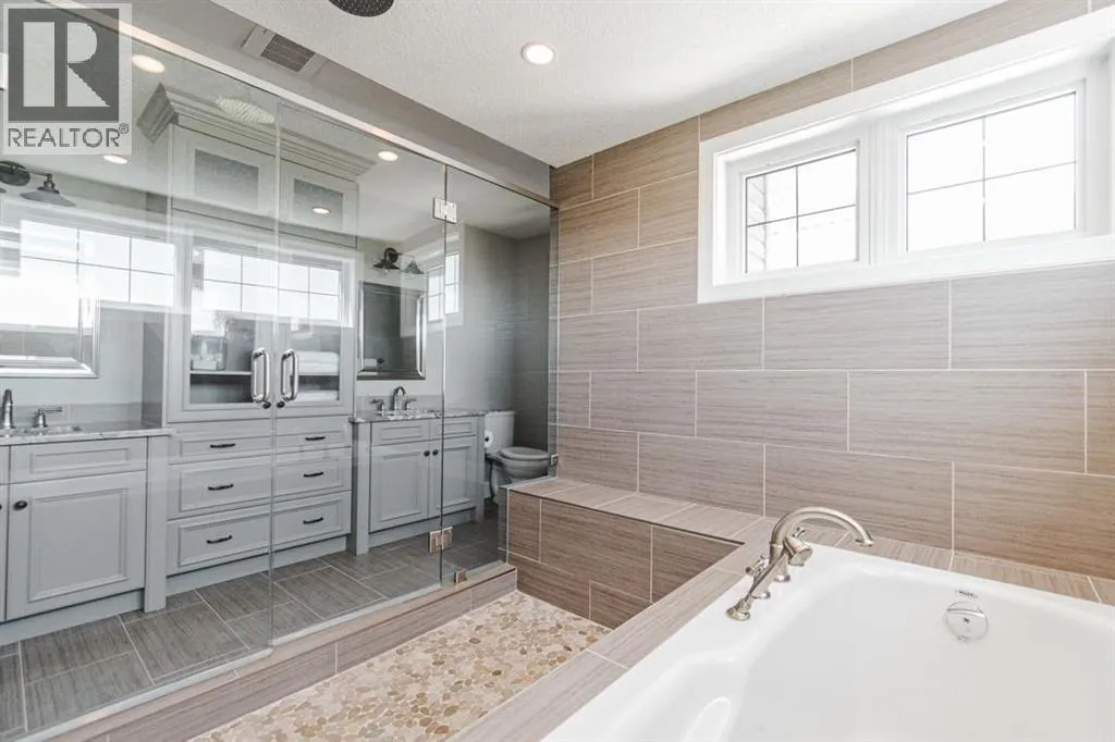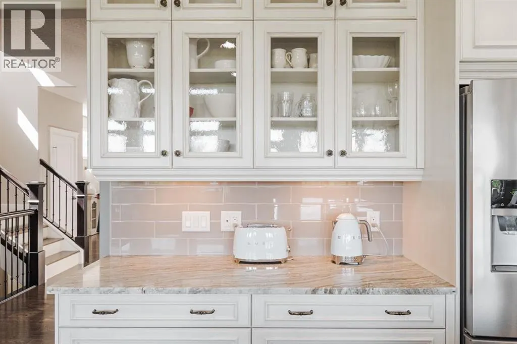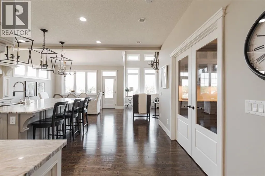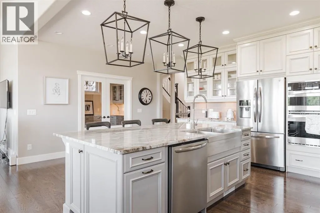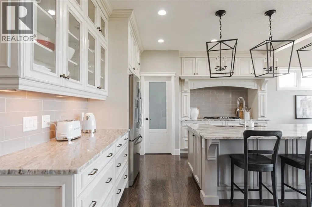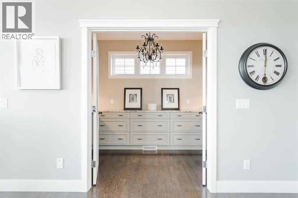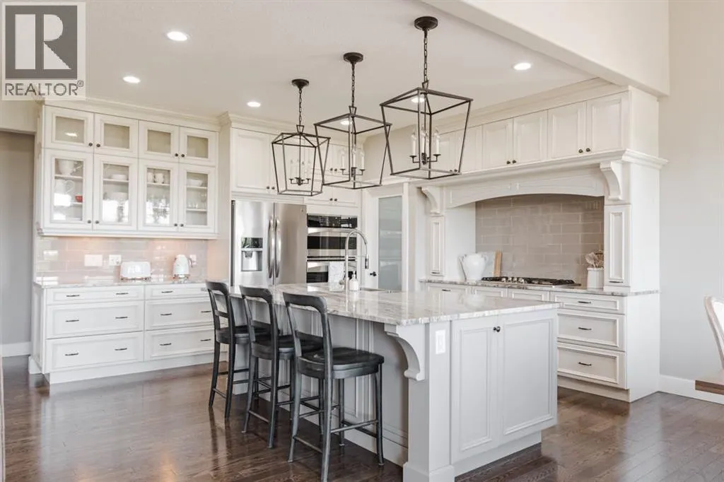 Welcome to 404 Dixon Road: A residence where refined craftsmanship, custom finishes, and timeless design converge. Built by Alves Homes, this exceptional property offers over 3,400 sq/ft of curated living space, showcasing high-end details from top to bottomâincluding Restoration Hardware lighting, ¾ inch solid hardwood floors on all three levels, antiqued glass cabinetry, and expansive windows framing serene tree-lined views. Set on a quiet cul-de-sac in Parsons Creek and in impeccable condition throughout, this is luxury living redefined.From the moment you arrive, the home makes a statement. Rich wood-style garage doors, an 8-foot front door, manicured landscaping, and a welcoming front step all contribute to its elevated curb appeal. Inside, a bright entry leads you into an airy open-concept living space, where tall baseboards, designer finishes, and sun-filled rooms create an atmosphere that feels both sophisticated and serene.At the heart of the home is a show-stopping kitchen featuring soft cream cabinetry with antiqued glass uppers, granite countertops with soft blue-grey veining, under-cabinet lighting, and stainless steel appliances including a five-burner Electrolux gas cooktop and apron sink. A walk-through pantry offers extensive storage, while the adjoining butlerâs pantry with muted grey cabinets and glass doors is ideal for entertaining or showcasing fine dish ware.The dining area and living room both are adorned with a Restoration Hardware chandeliers, and the vaulted ceiling offers space for stacked windows with a stunning 80,000 BTU gas fireplace clad in stone in the centre of the living roomâcreating a cozy, beautiful focal point for gatherings year-round. Completing the main floor is a granite-topped laundry room with upper cabinetry, a stylish two-piece powder room, and a generous walk-in coat closet.Upstairs, the hardwood continues with eight stacked windows illuminating the stairwell and hallway. The primary suite is a luxurious retreat w ith double door entry, space for a king bed, and a spa-inspired ensuite with a glass enclosed splash room that has a freestanding tub and rain shower, dual vanities with a centre tower, and a walk-in closet. Two more spacious bedrooms, a bonus room filled with natural light, and a beautifully appointed four-piece bathroom complete the upper level.The fully finished basement is equally impressive with radiant in-floor heat, continued hardwood flooring, and a large entertainment area featuring a wet bar with wine fridge, custom cabinetry, and island seating. A fourth bedroom with walk-in closet, full bathroom, and additional storage ensure this lower level is as functional as it is stylish.Outdoors, enjoy the peaceful setting of the fully fenced backyard and Duradeck-finished upper deck overlooking the trees. With direct trail access nearby and minimal street traffic, this location offers both privacy and convenience. (id:27476)